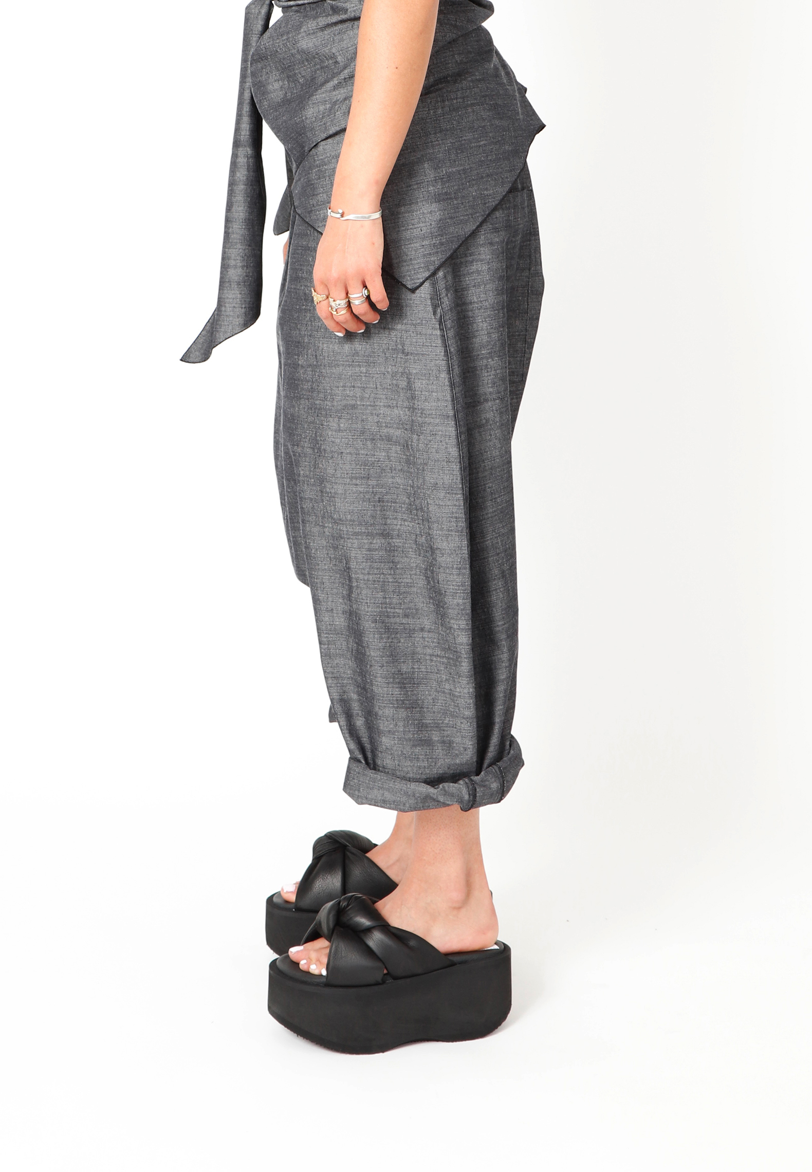 Opgrader din garderobe med disse ekstra baggy bukser, der kombinerer komfort og moderne design. Bukserne har en løs, afslappet pasform med praktiske sidelommer og en diskret lynlås foran. Blandingen af bomuld og viscose giver en behagelig følelse hele dagen. Bukserne kan nemt styles med opsmøg for et mere afslappet look, hvilket gør dem ideelle til både arbejde og fritid.
