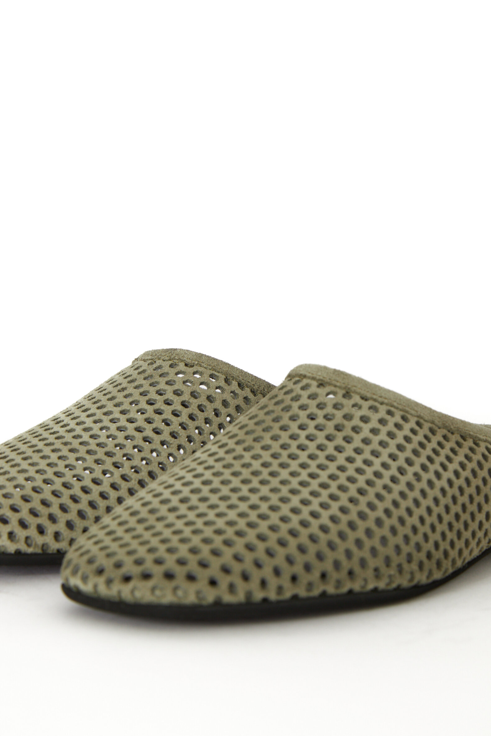 Håndlavet slip on sko fra Sort Aarhus i blødt ruskind af kalveskind. Det perforerede læder giver et grafisk og sofistikeret udtryk, og den åbne hæl gør modellen luftig og komfortabel, perfekt til både hverdagsbrug og særlige begivenheder. Et minimalistisk, men markant design — et valg for den, der tør skille sig ud med kvalitet og attitude. Sålen er fast og let.