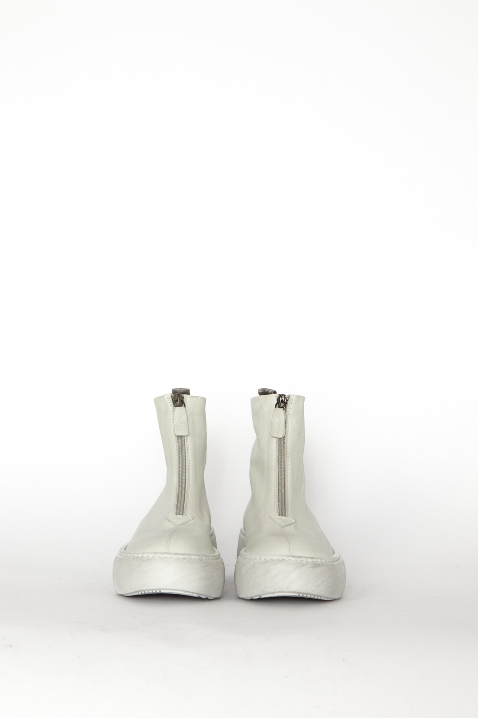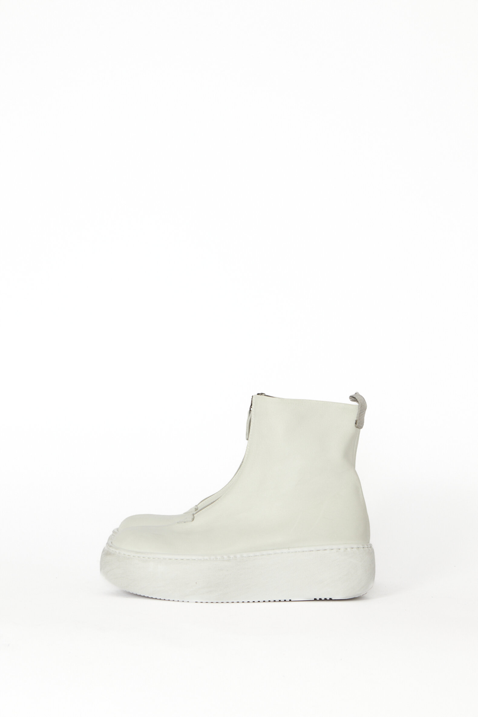 Dette er en kollektionsprøve. Støvle i hvidt kalveskind foret med svineskind med front-lynlås.