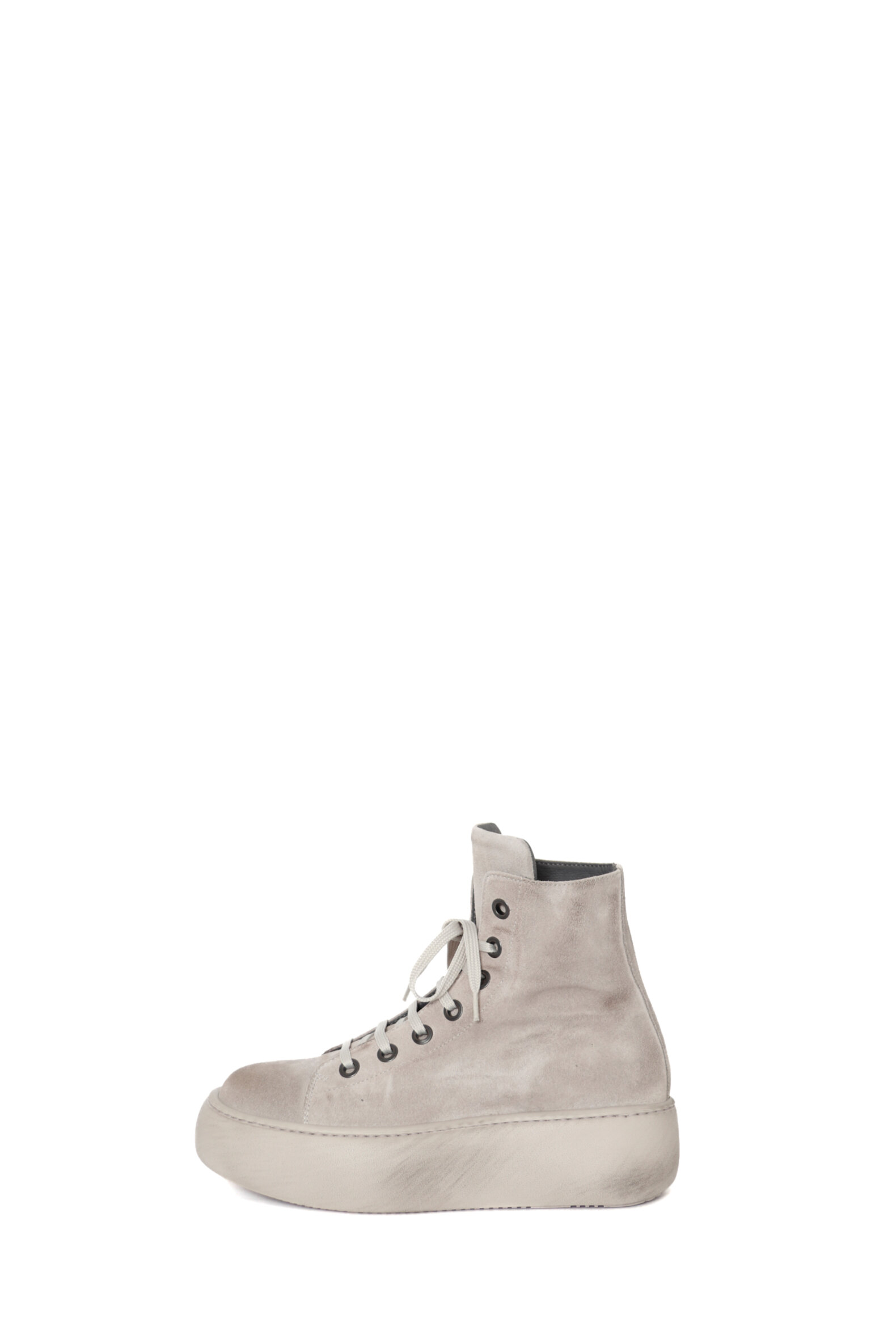Dette er en kollektionsprøve i størrelse 37. Sko i lysegråt ruskind foret med svineskind. Skoen har matchende snøre.