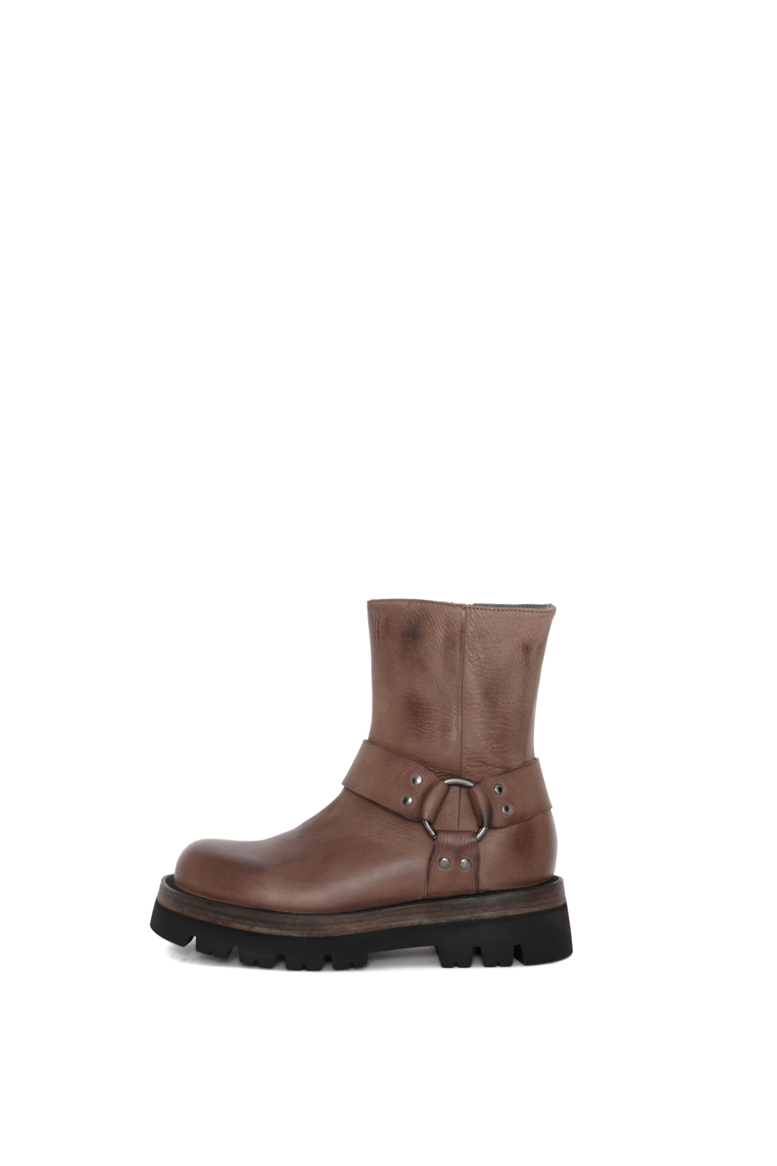 Dette er en kollektionsprøve i størrelse 37. Støvle i grå/brunt glat kalveskind foret med svineskind. Støvlen har lynlås på indersiden.