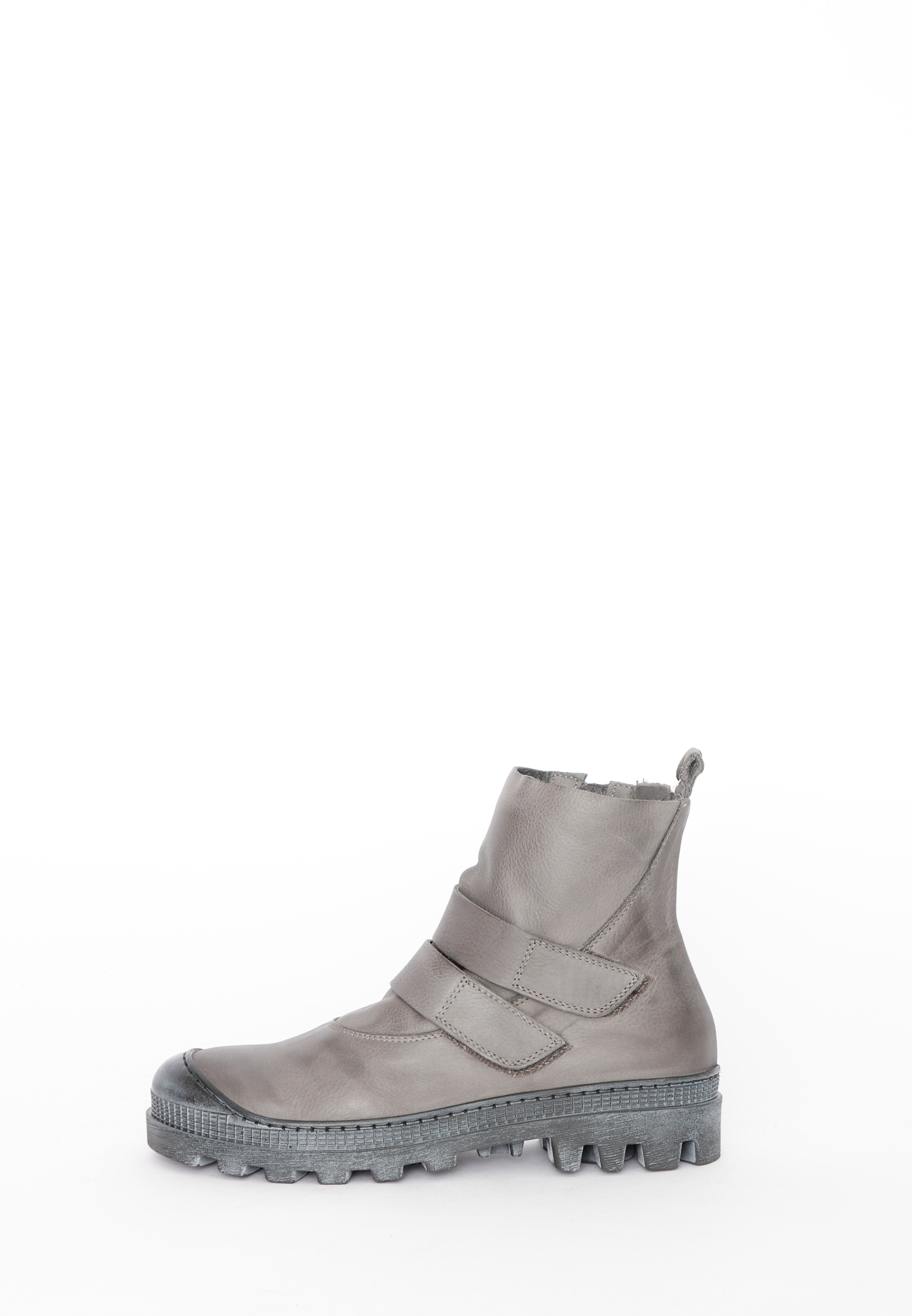 Støvle i grå/blå kalveskind med dobbelt velcrolukning og lynlås for nem adgang. Sålen er lavet af gummi og er derfor meget slidstærk. Den er i øvrigt lavet i en tone-i-tone farve der matcher det flotte overlæder. Her får du en støvle som kan bruges hele dagen lang, igen og igen. Normal i størrelsen.
