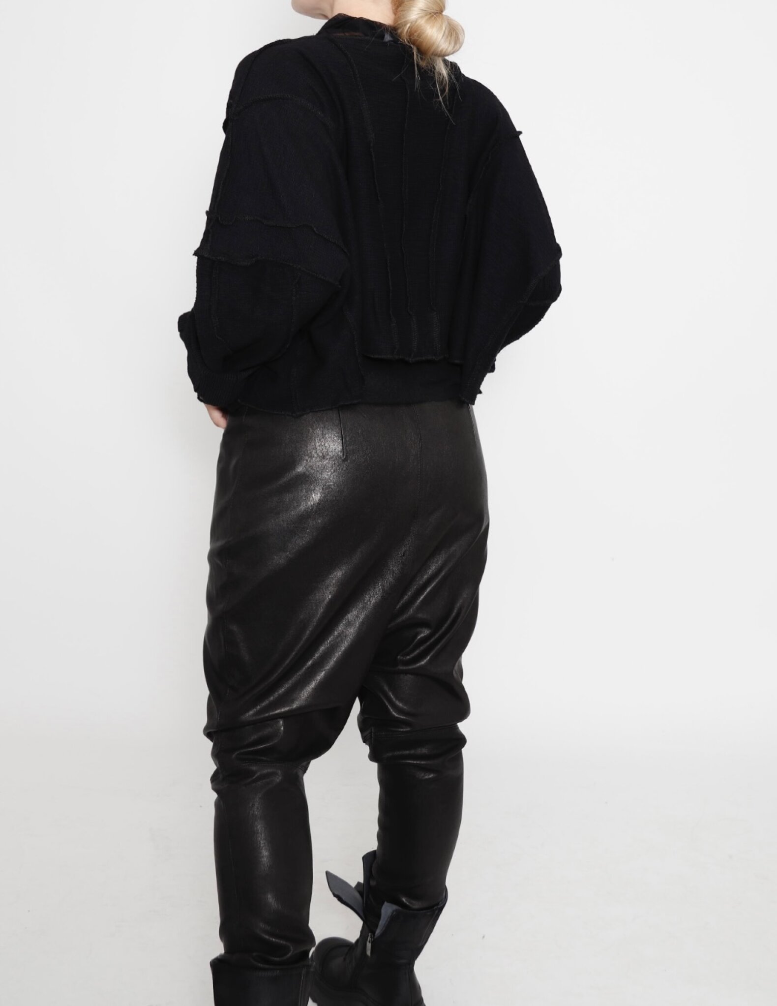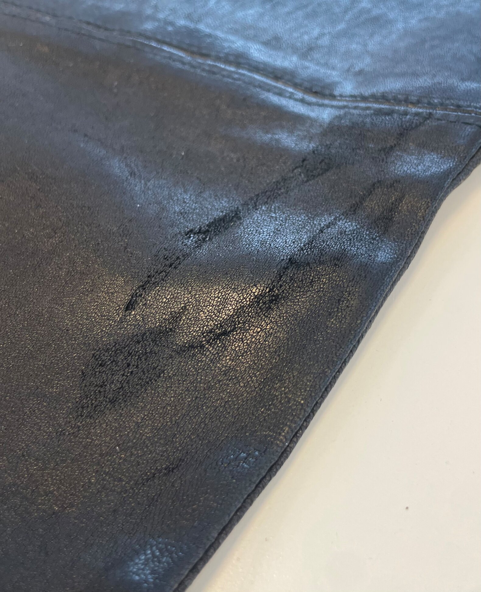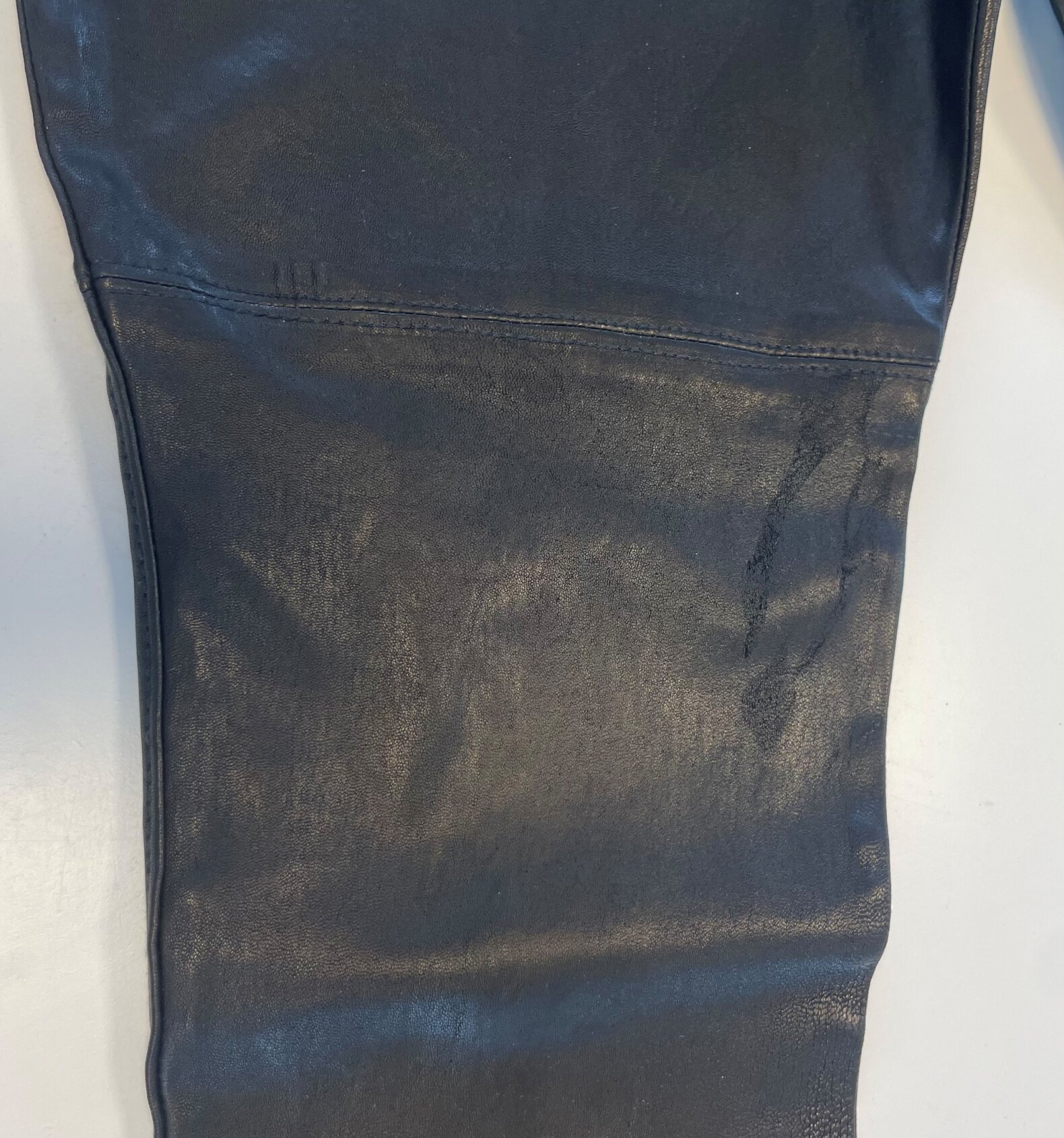 Mid waist stræk skindbukser med lynlås og lommer. Tætsiddende omkring læggen. Skindbuksen er normal i størrelsen.