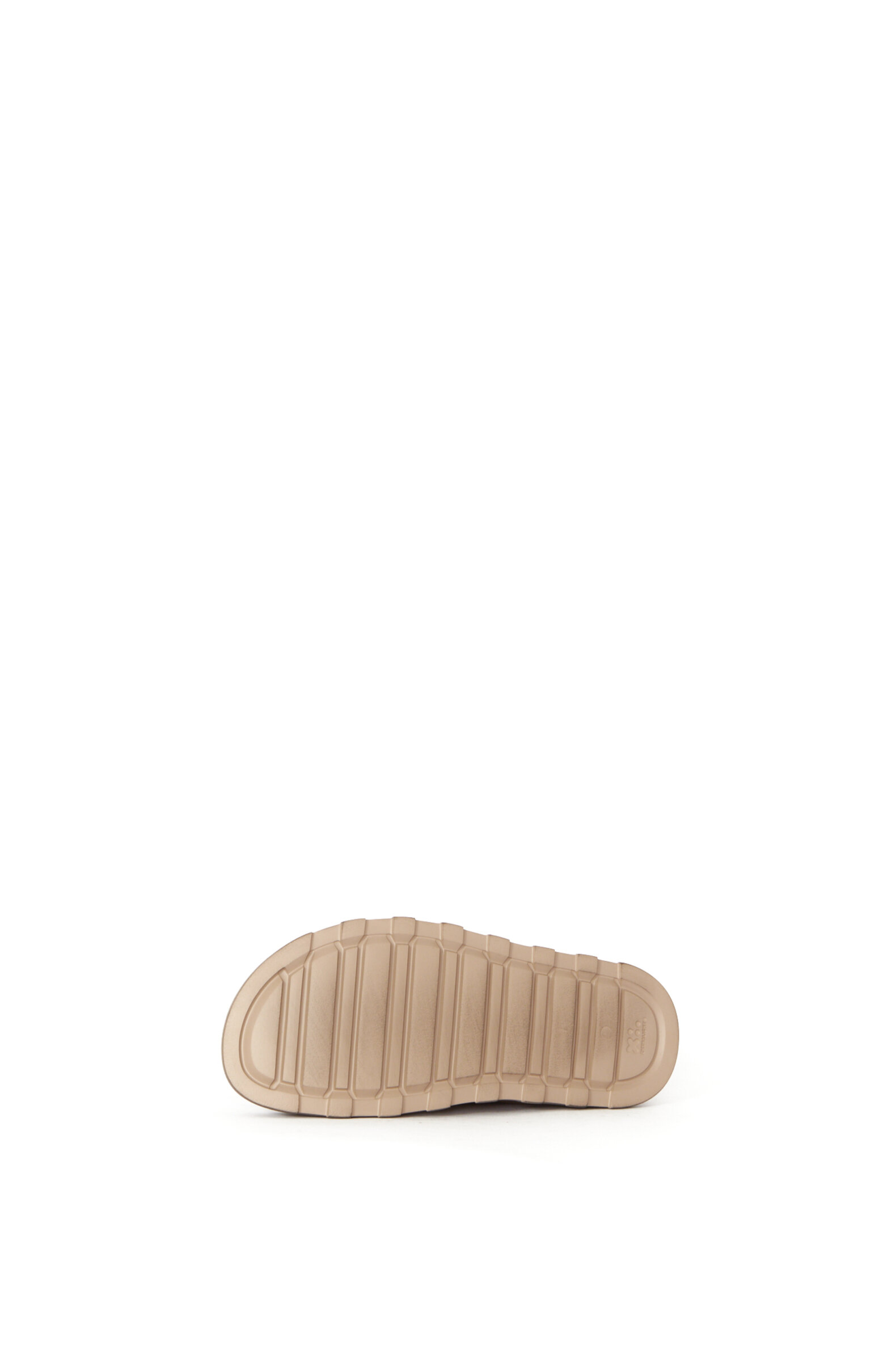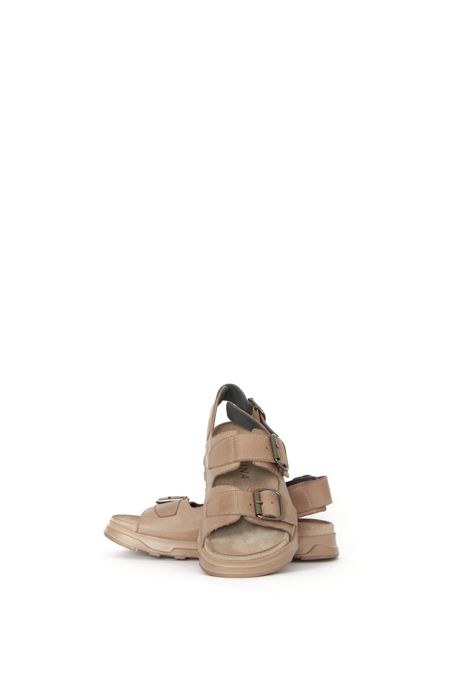 Lofina sandal i sandfarvet kalveskind foret med svineskind for ekstra god åndbarhed og komfort, som fortsætter i form af den bløde fodsengssål. Sandalen er med tre justérbare spænder, så du kan få et helt optimalt fit. Denne sål er en drøm for alle fødder, og er oplagt til både hjemlig hygge, arbejde, en tur til stranden eller andet.