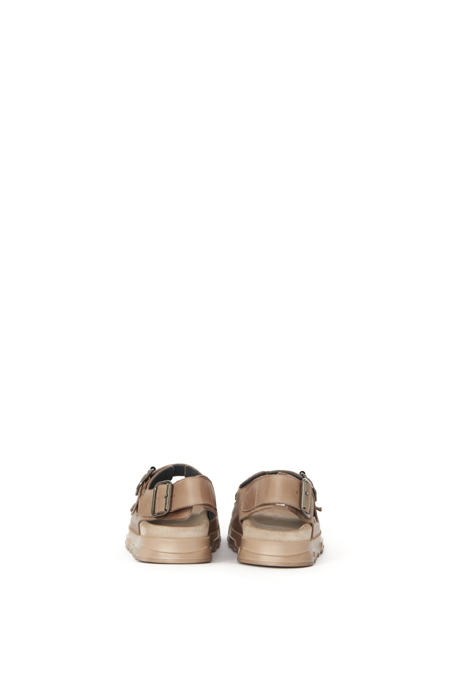 Sandalen er lavet i kalveskind foret med svineskind. Sålen er lavet i blandingsmaterialer af syntetisk gummi.