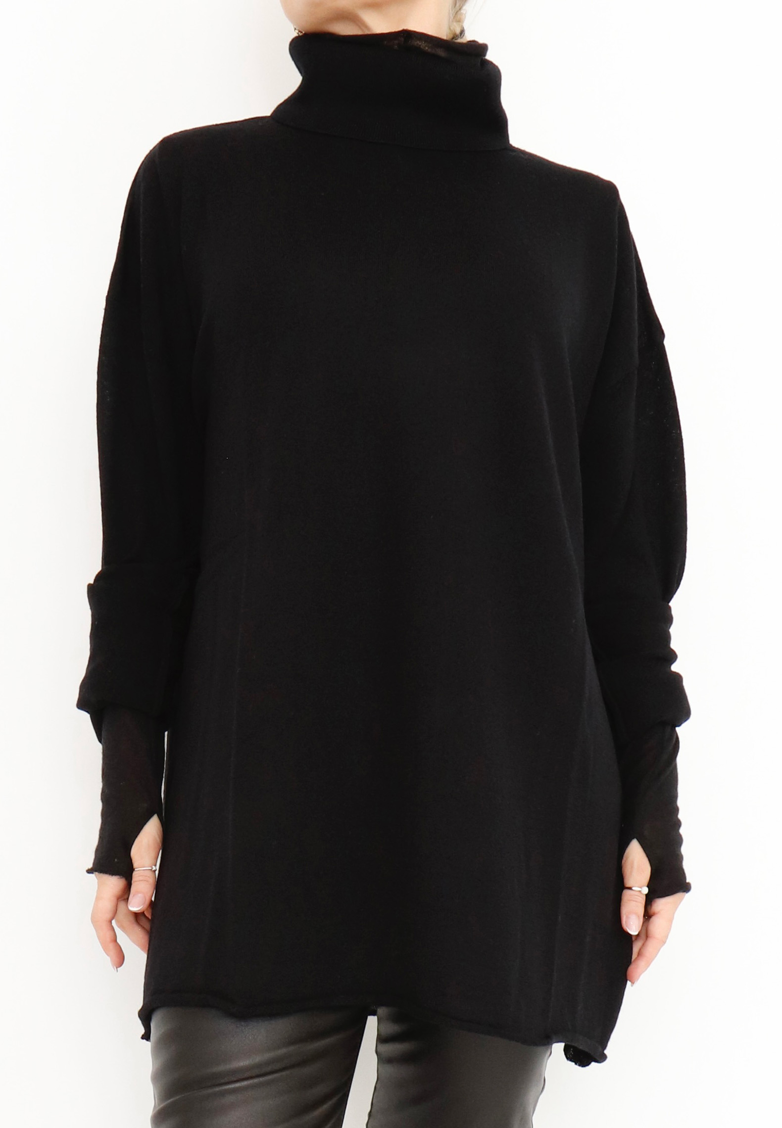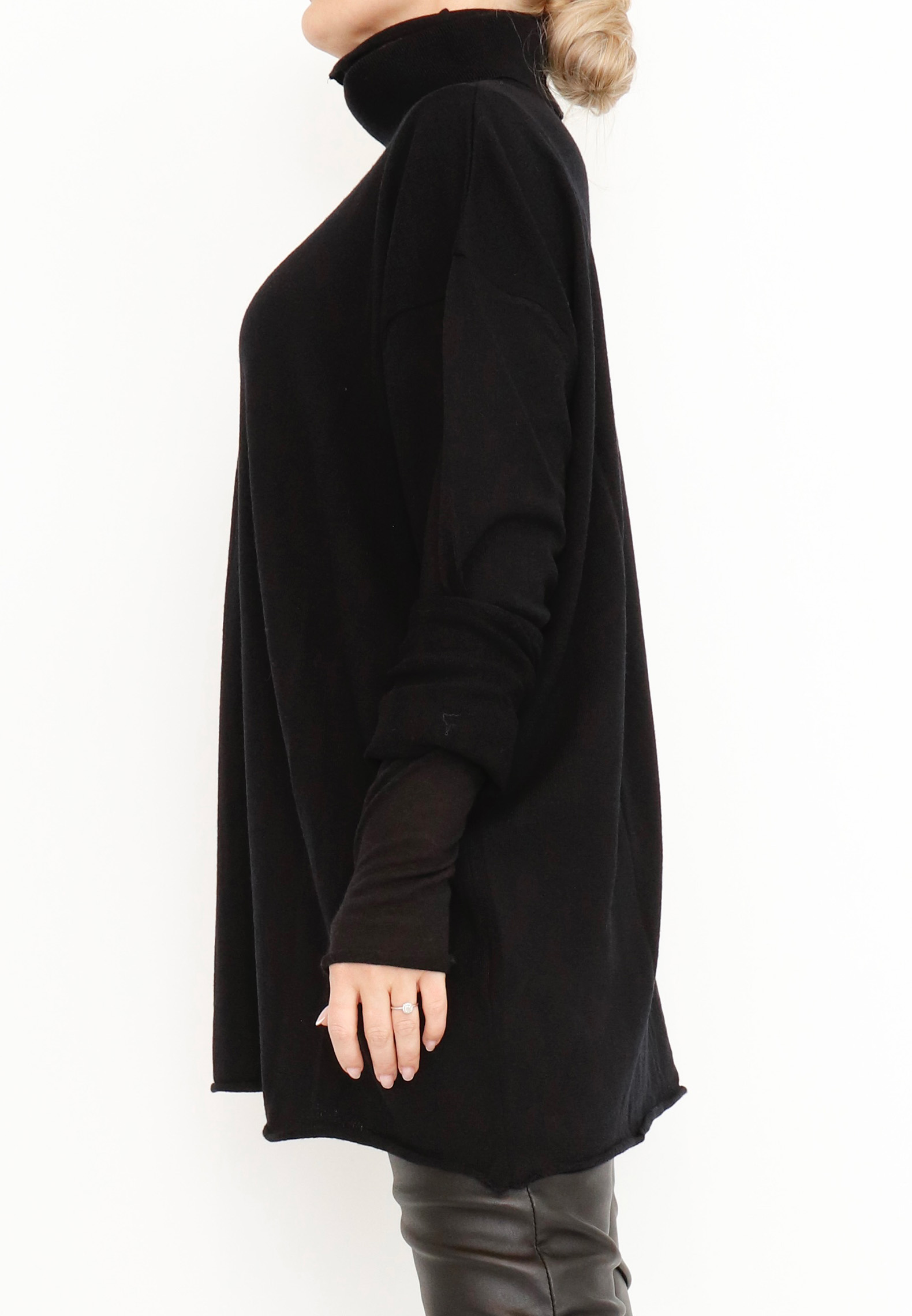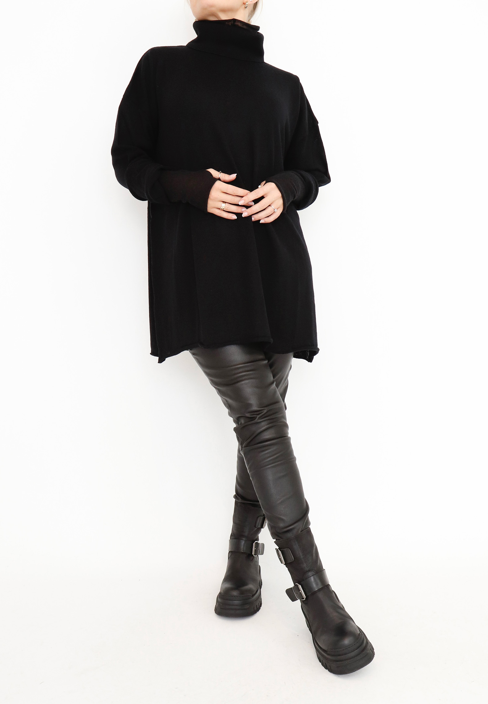 Sort Aarhus knitted blouse in soft merino wool. The blouse has a roll neck and long sleeves. A luxurious jumper that works with both loose fit pants and tight fit leggings. Oversize fit and perfect for styling over a dress. The blouse is normal in sizeMaterial