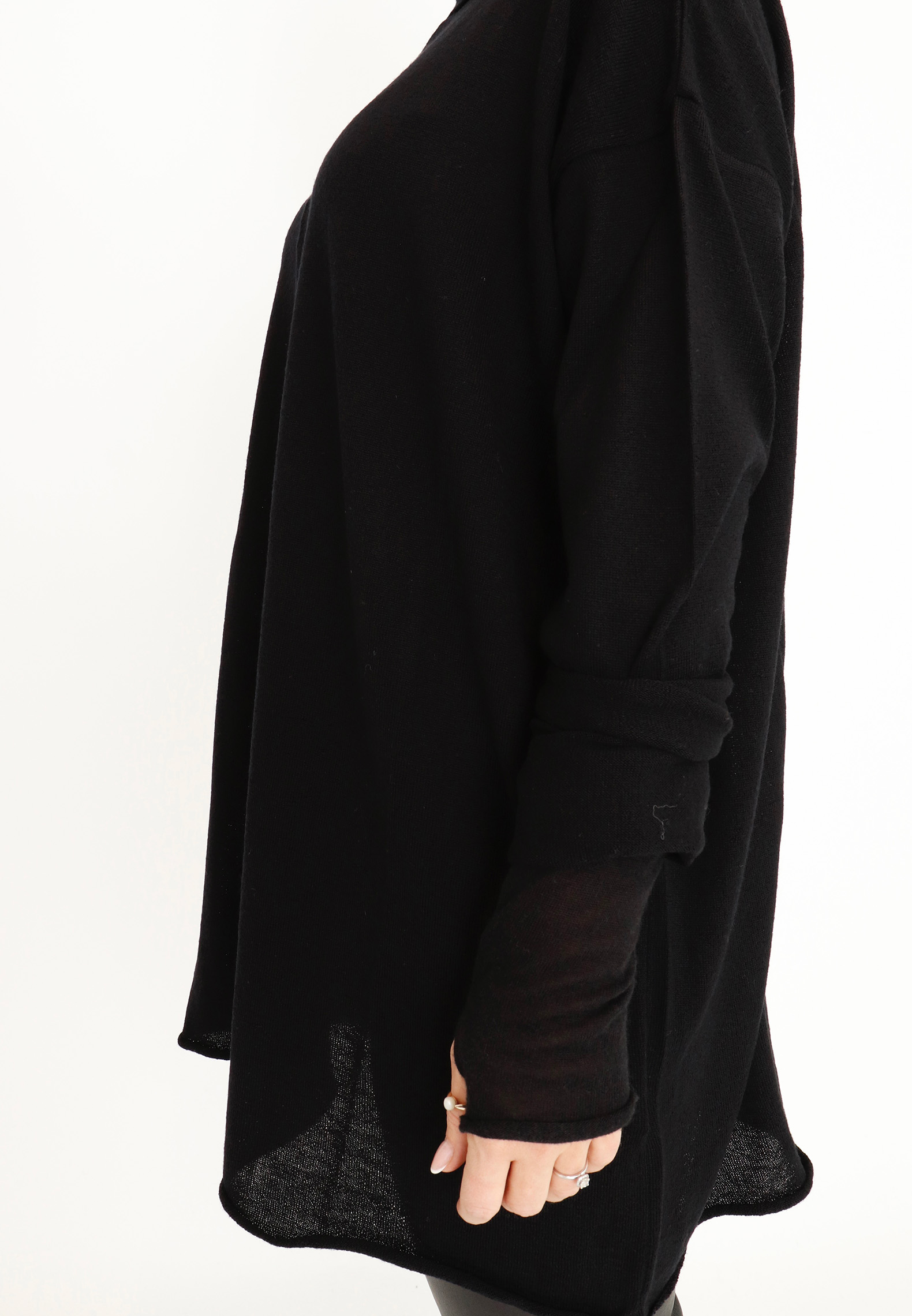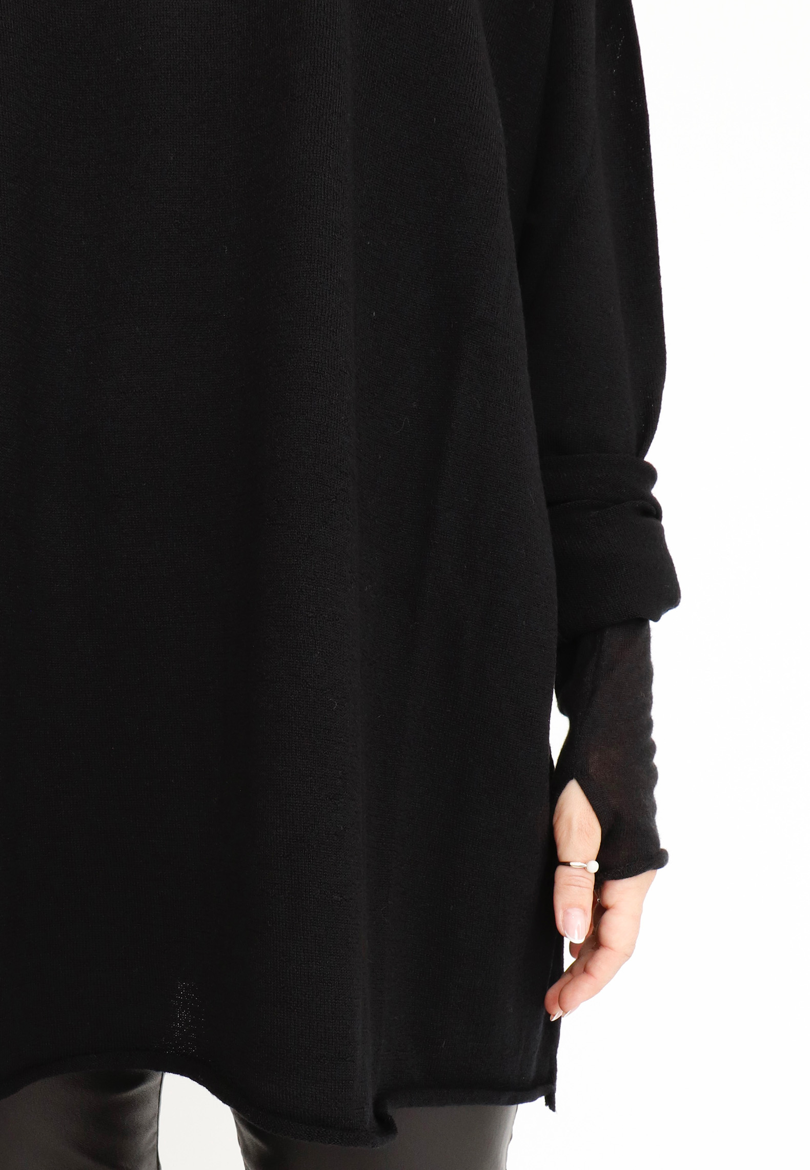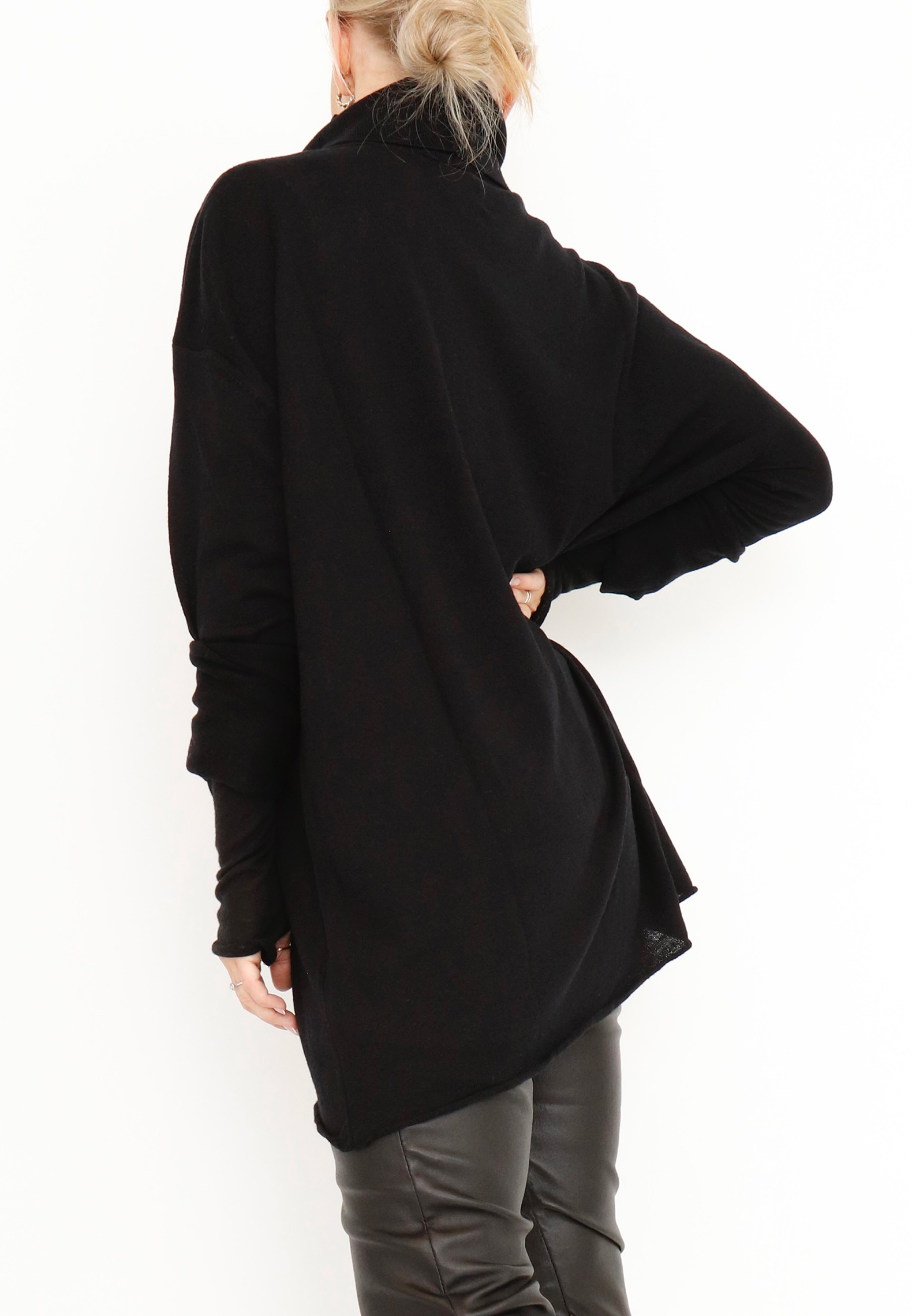 Sort Aarhus knitted blouse in soft merino wool. The blouse has a roll neck and long sleeves. A luxurious jumper that works with both loose fit pants and tight fit leggings. Oversize fit and perfect for styling over a dress. The blouse is normal in sizeMaterial