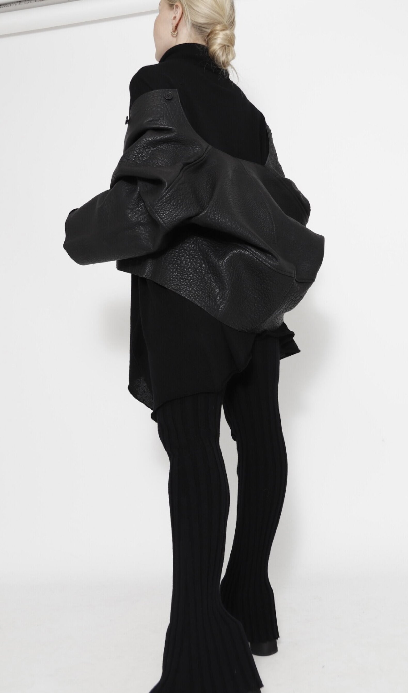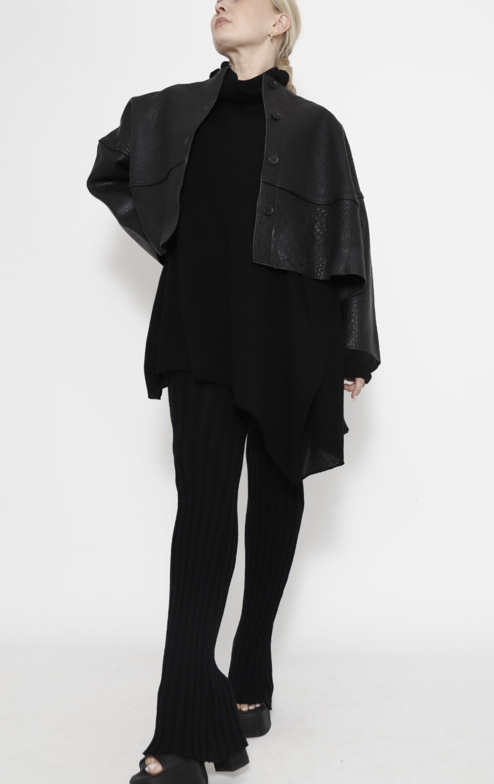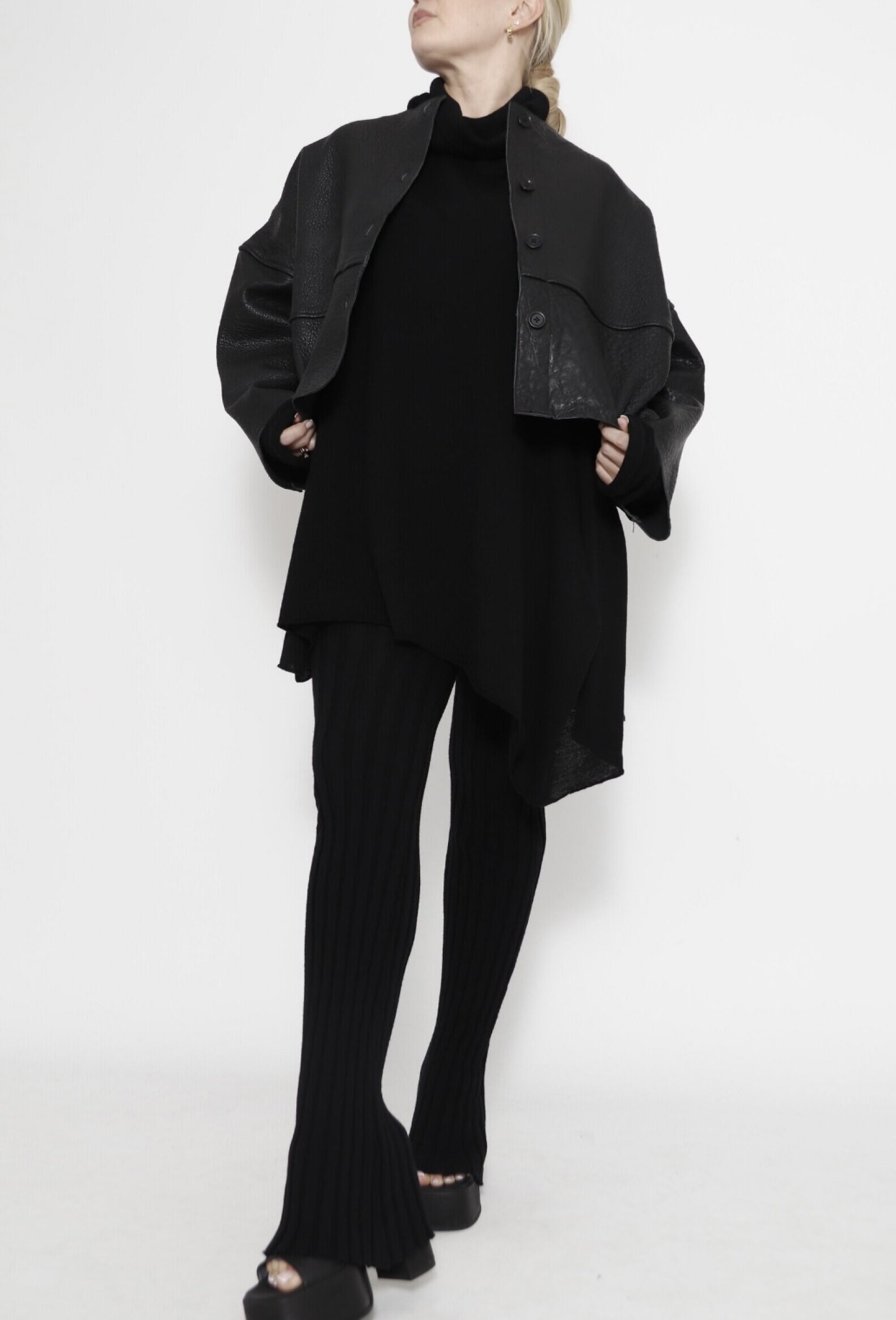 Shrunked leather jacket with front buttons