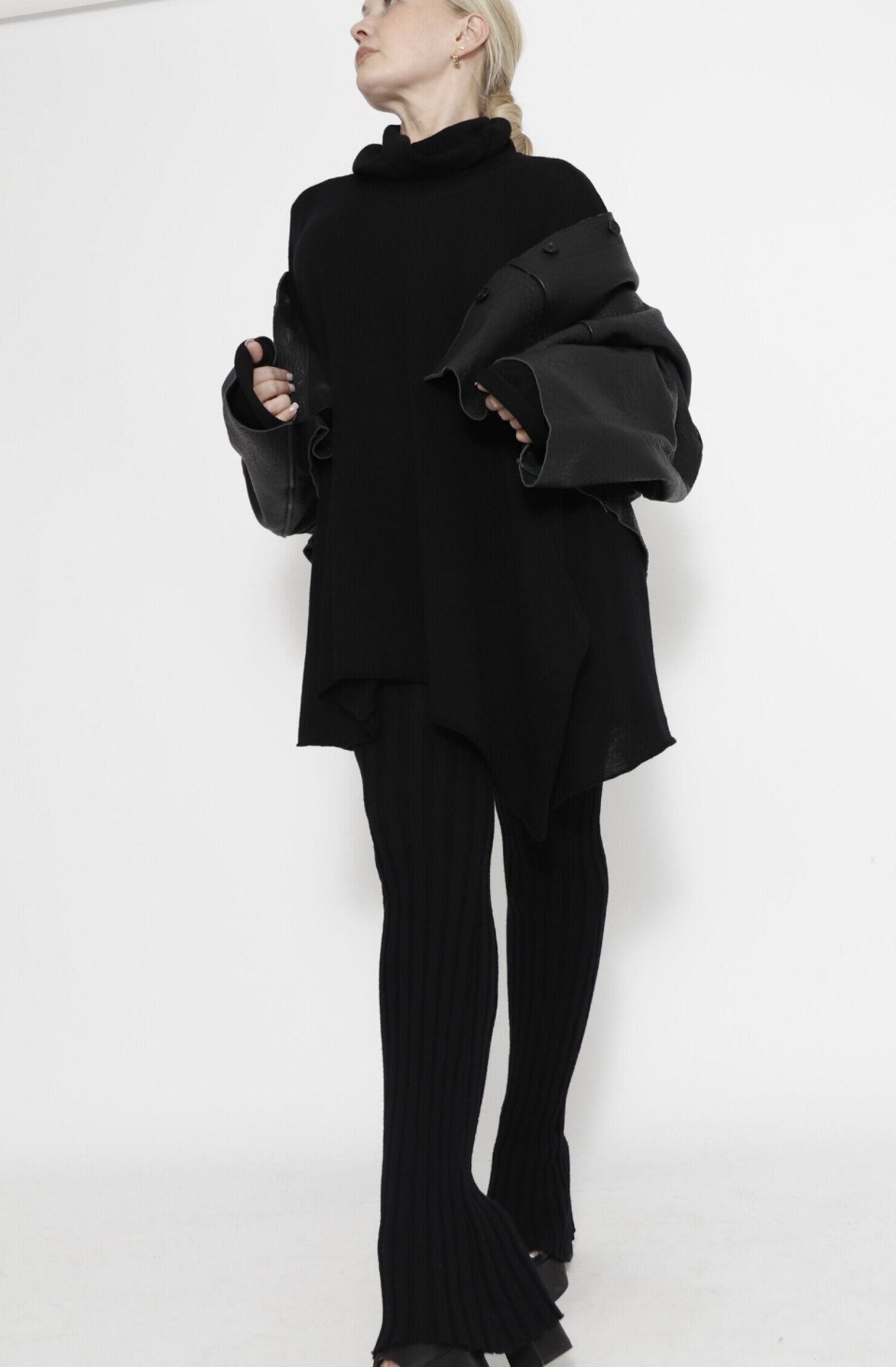 Sort Aarhus shrunked leather jacket. This jacket has front buttons. With clear lines. Style with matching shorts or a dress. The jacket is normal in size
