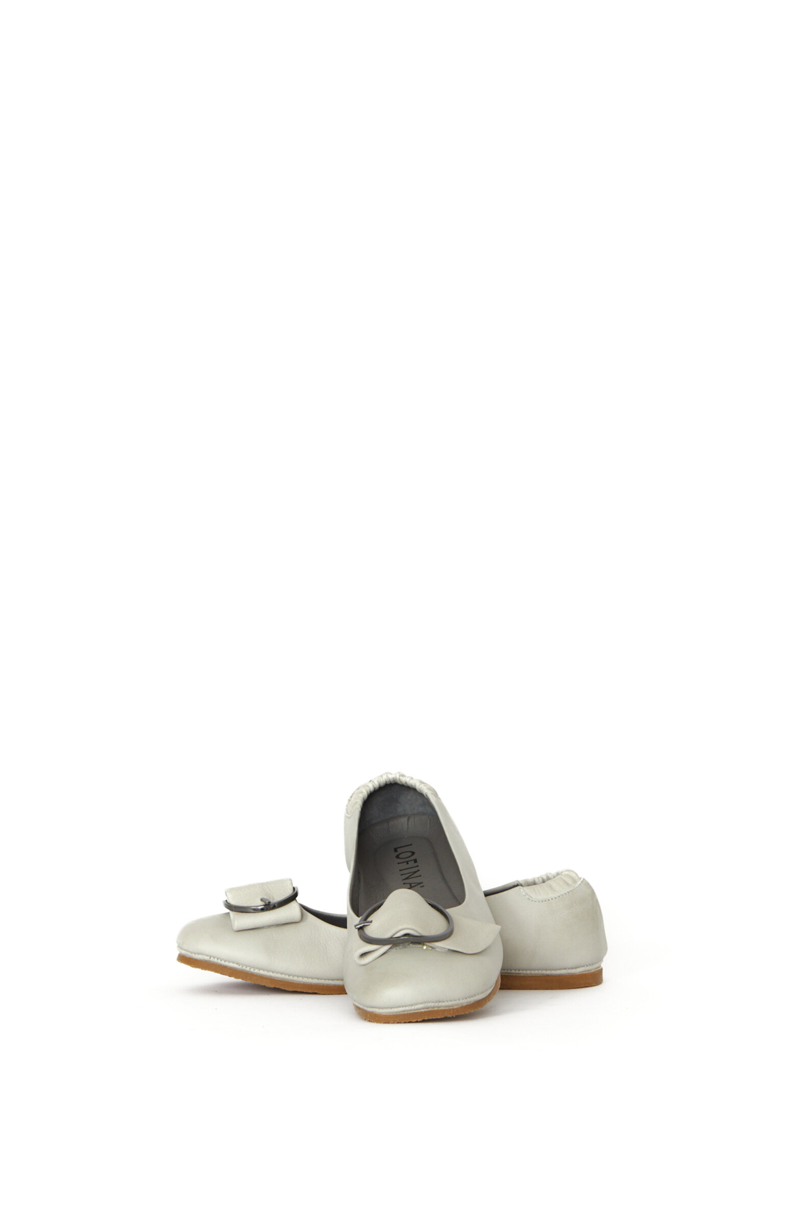 Klassisk ballerina med en blød hæl- og tåkap for ekstra god komfort. Modellen er med et oxideret metal pyntespænde på snuden og elastik omkring hælen. Alle Lofina sko er produceret på en lille familieejet fabrik i det centrale Italien af nøje udvalgte og eksklusive lokale materialer. Ballerinaen er lavet i glat kalveskind og foret med svineskind for ekstra åndbarhed og komfort. Sålen er en let, tynd gummisål.