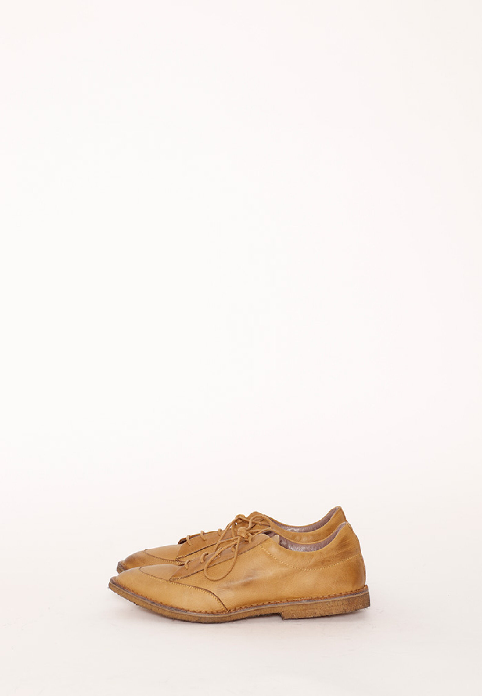 Shoe made in yellow with a soft raw rubber sole. This shoe has a classic design, which makes it usuable for most looks.