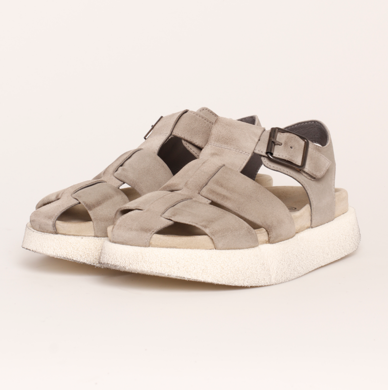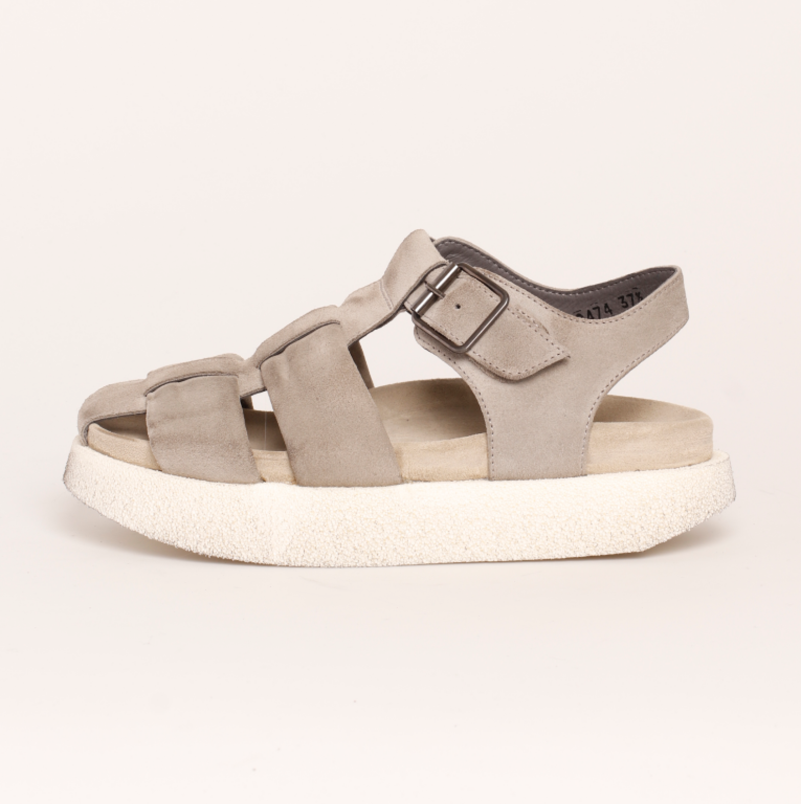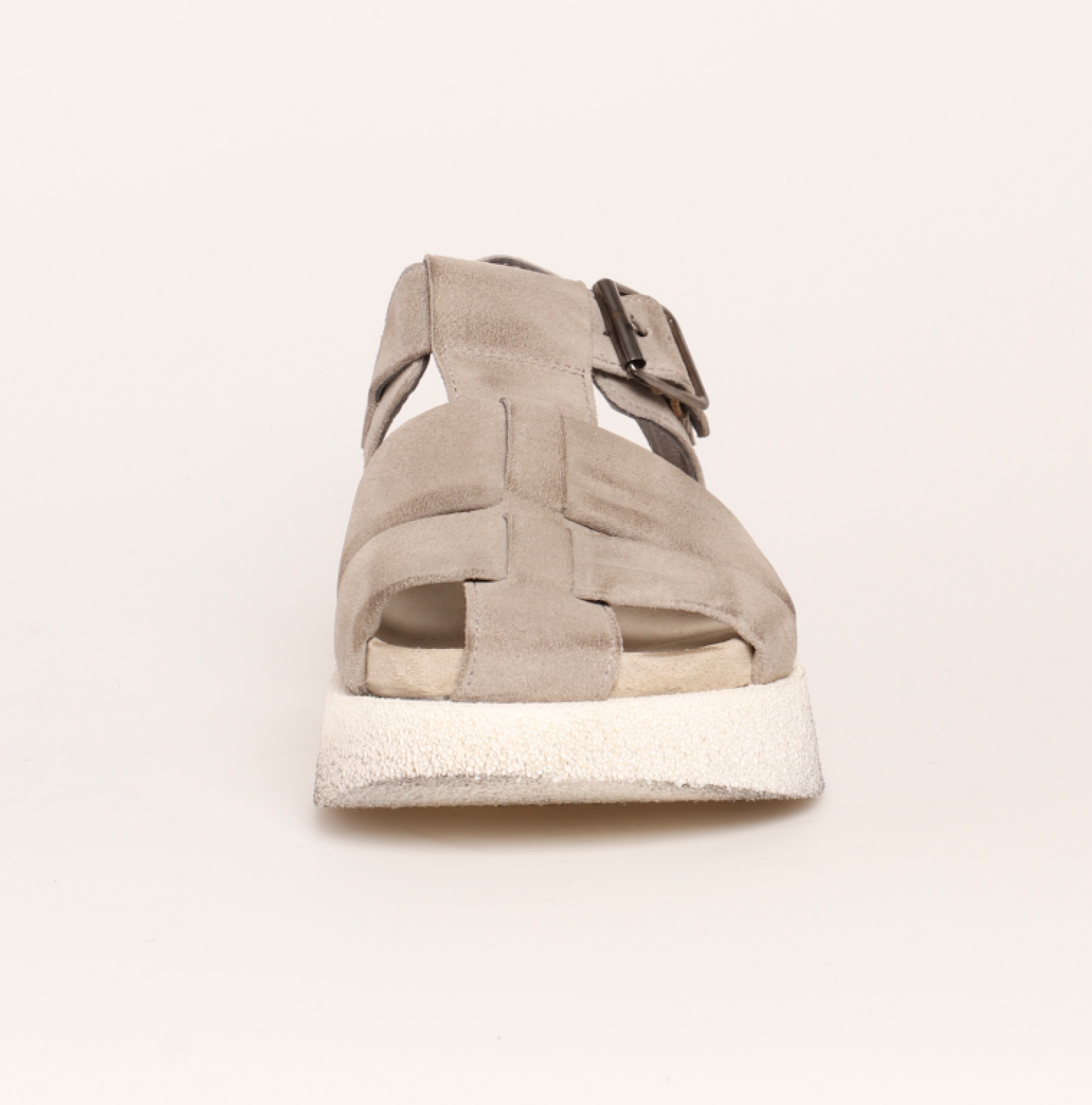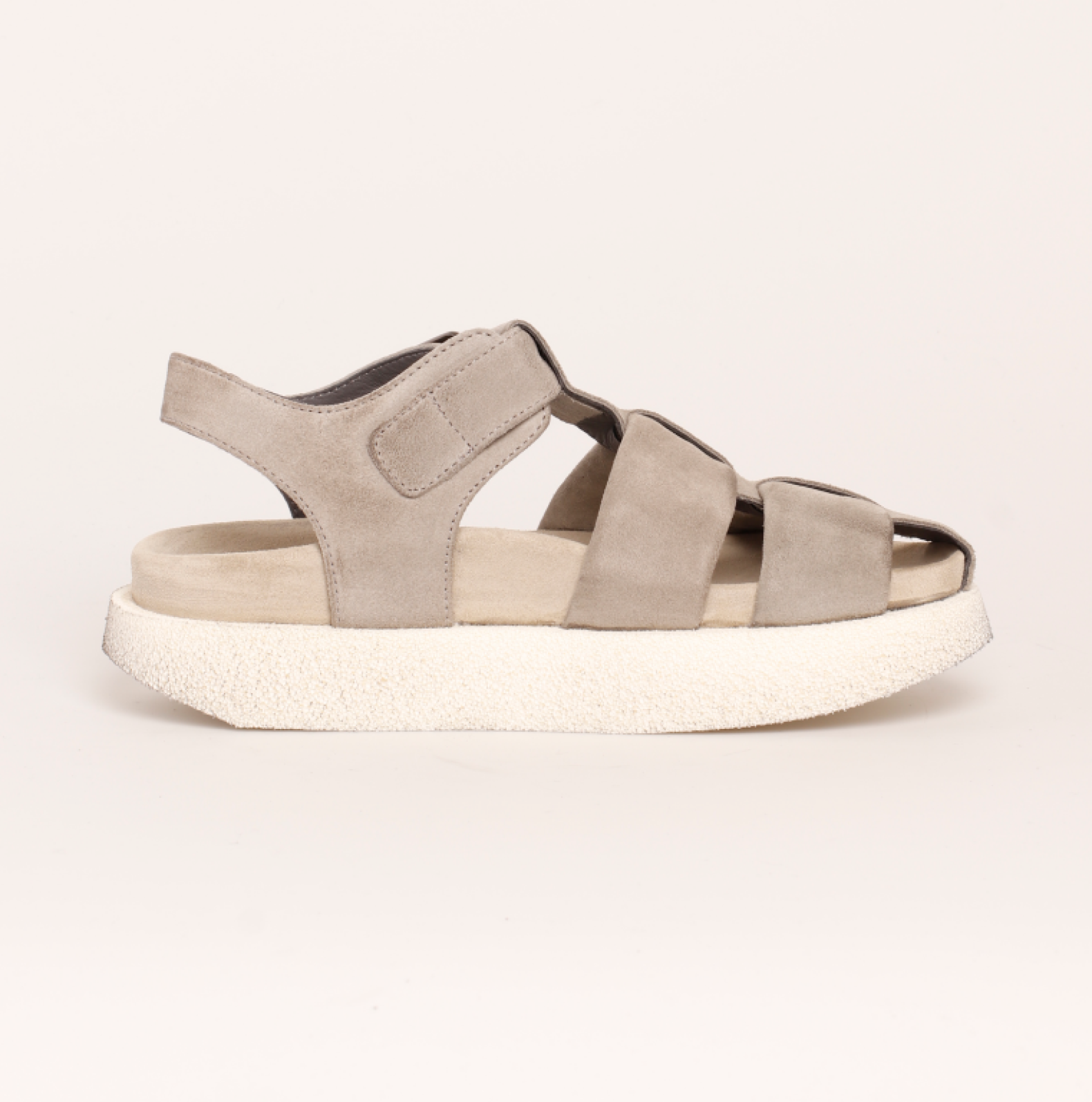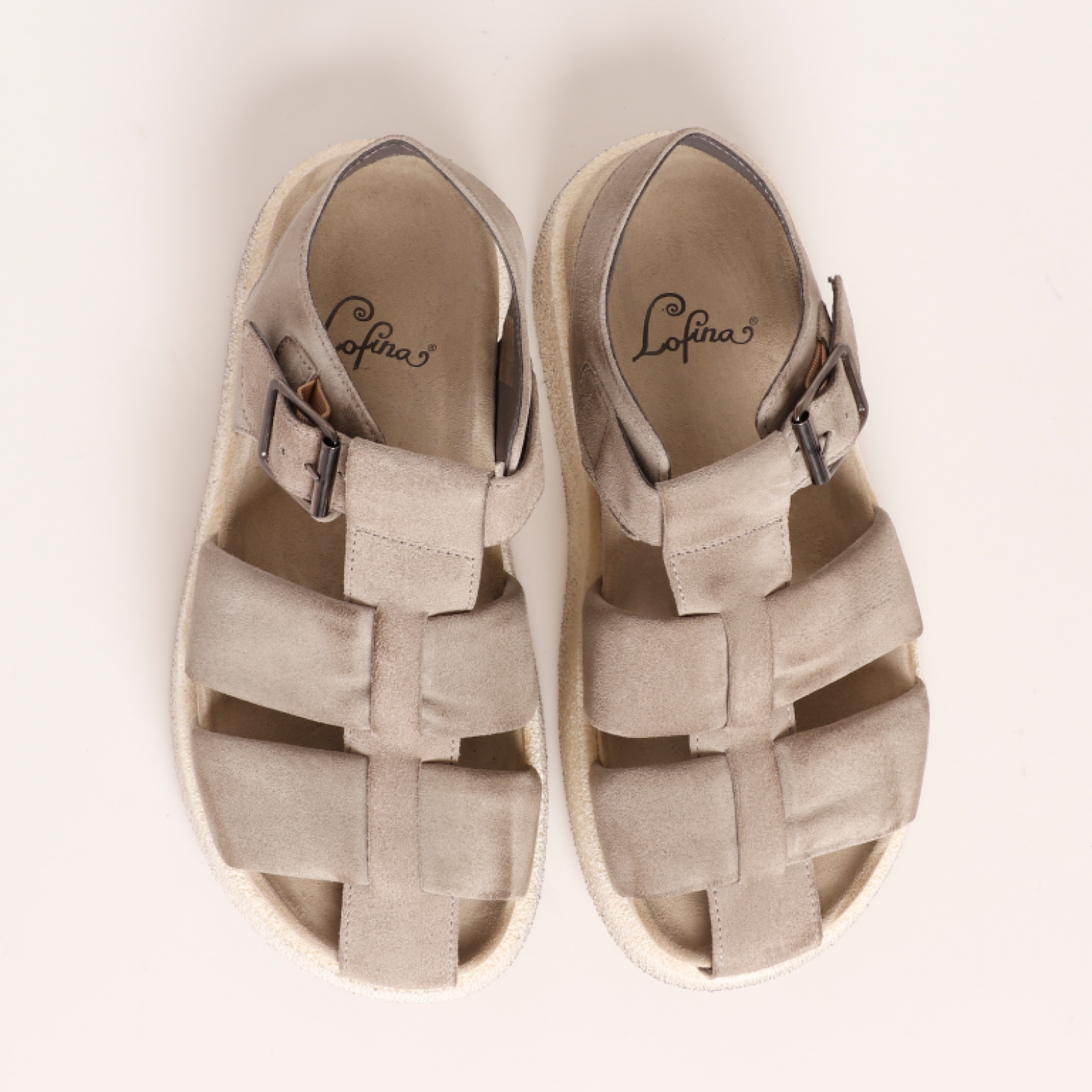 Style nr. 2474. Denne nye Lofina sandal er lavet med den lækreste sål. Sandalen findes i denne smukke lys grå ruskind. Sandalen har spænde og rem bagtil, så den sidder godt til på foden. Et musthave til enhver sommergarderobe