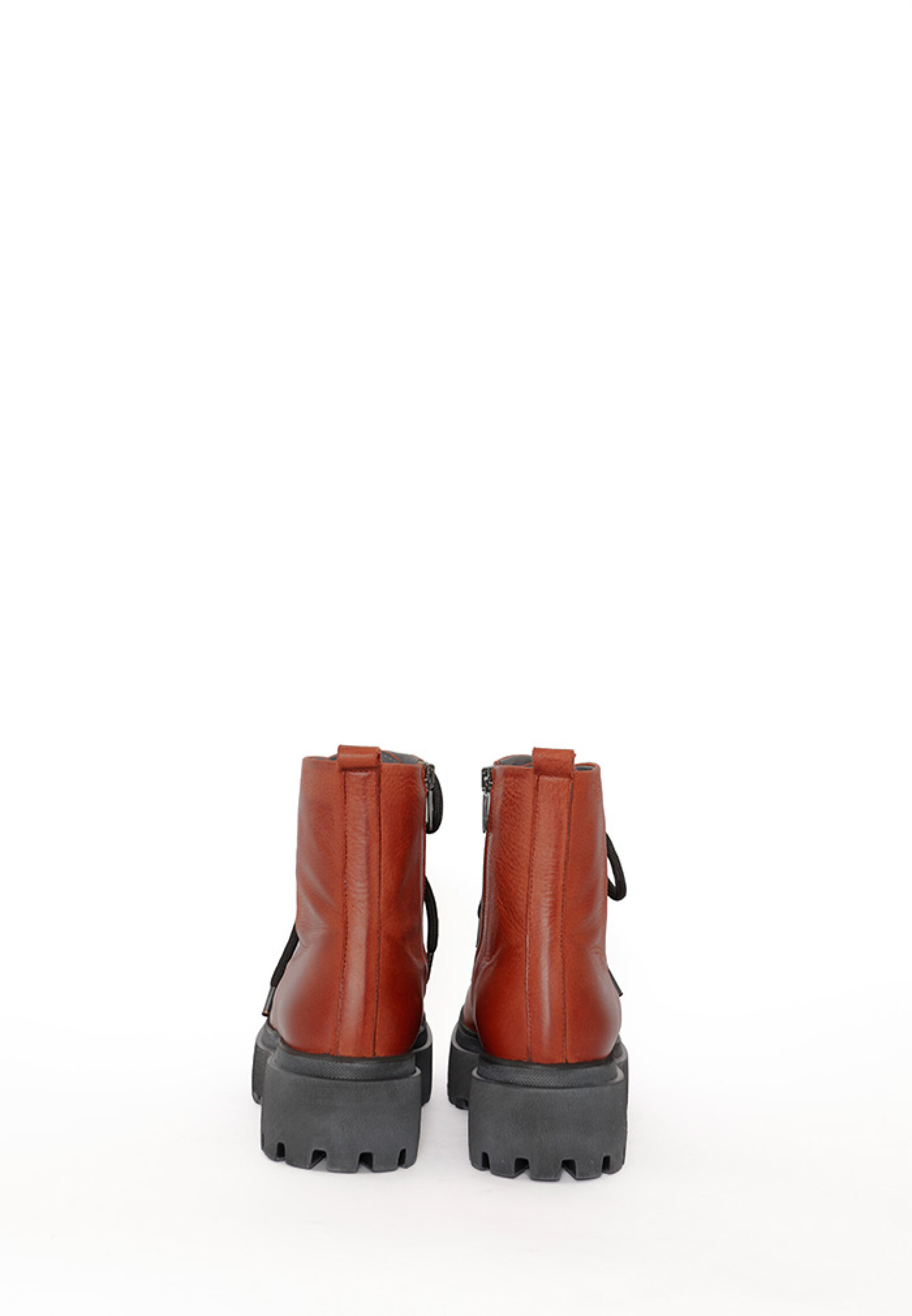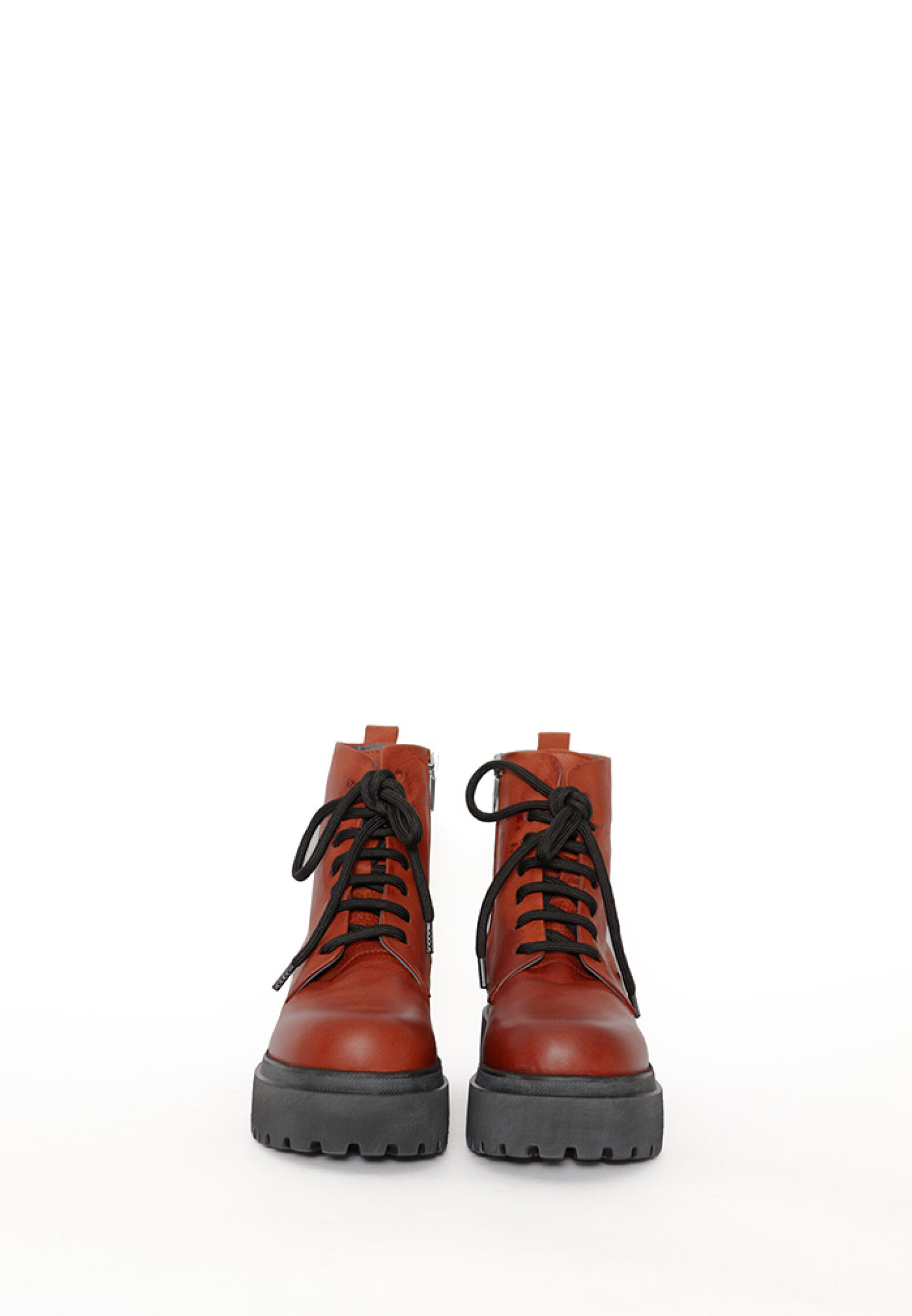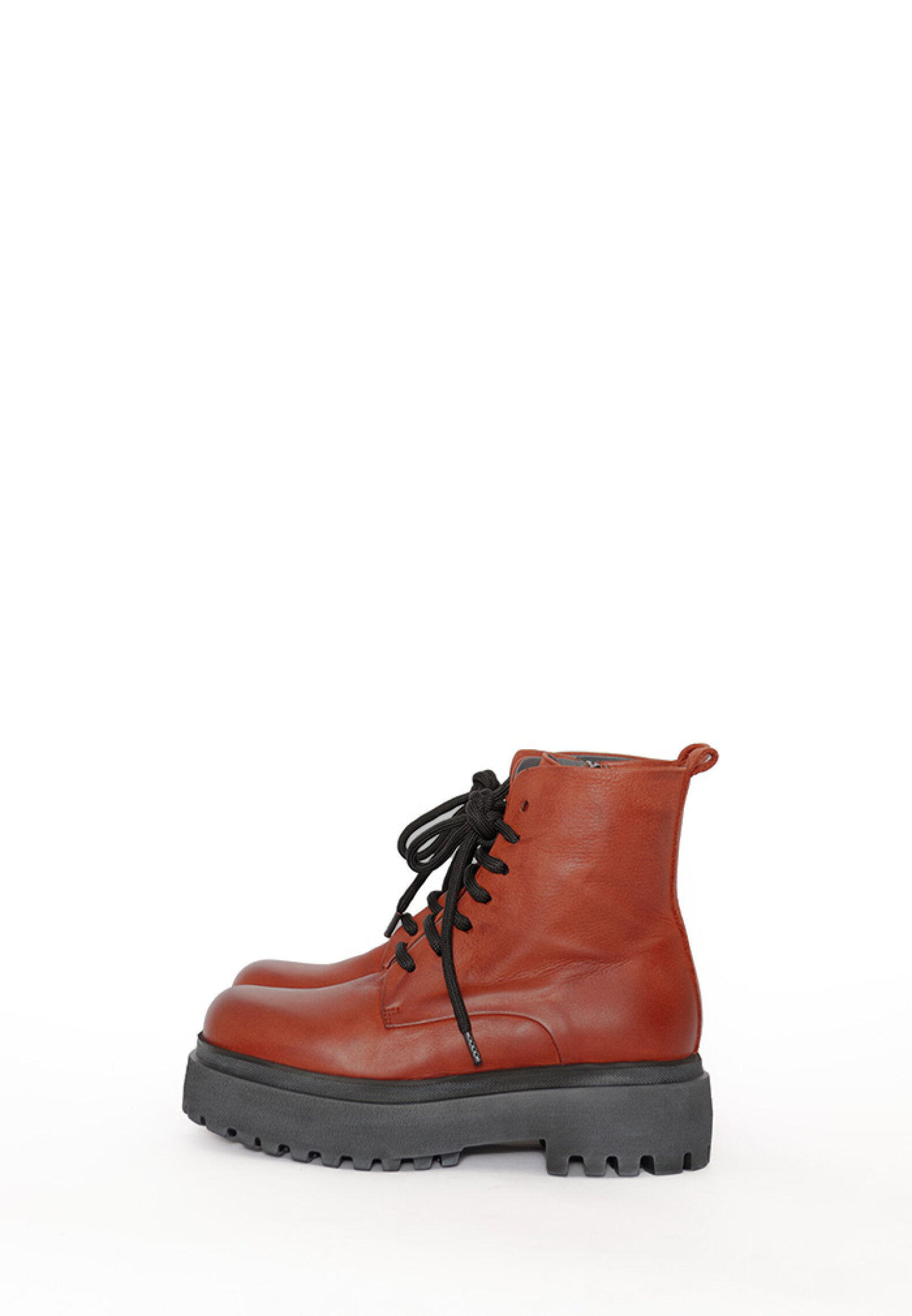 Nice and raw boot with laces and zipper. The zipper makes it easy to put on and the laces easy to adjust to your feet. The boot has a great and surprisiningly unheavy sole. So nice to wear and suitable for many outfits. Made in high quality calfskin! Here in the most beautiful color!Material