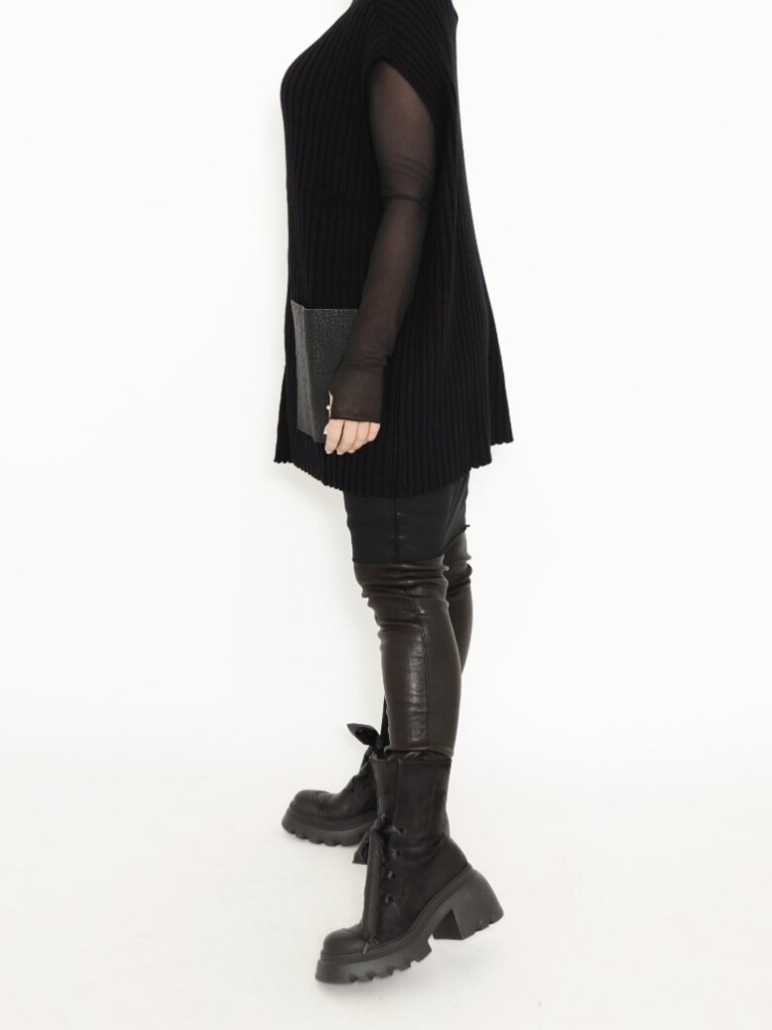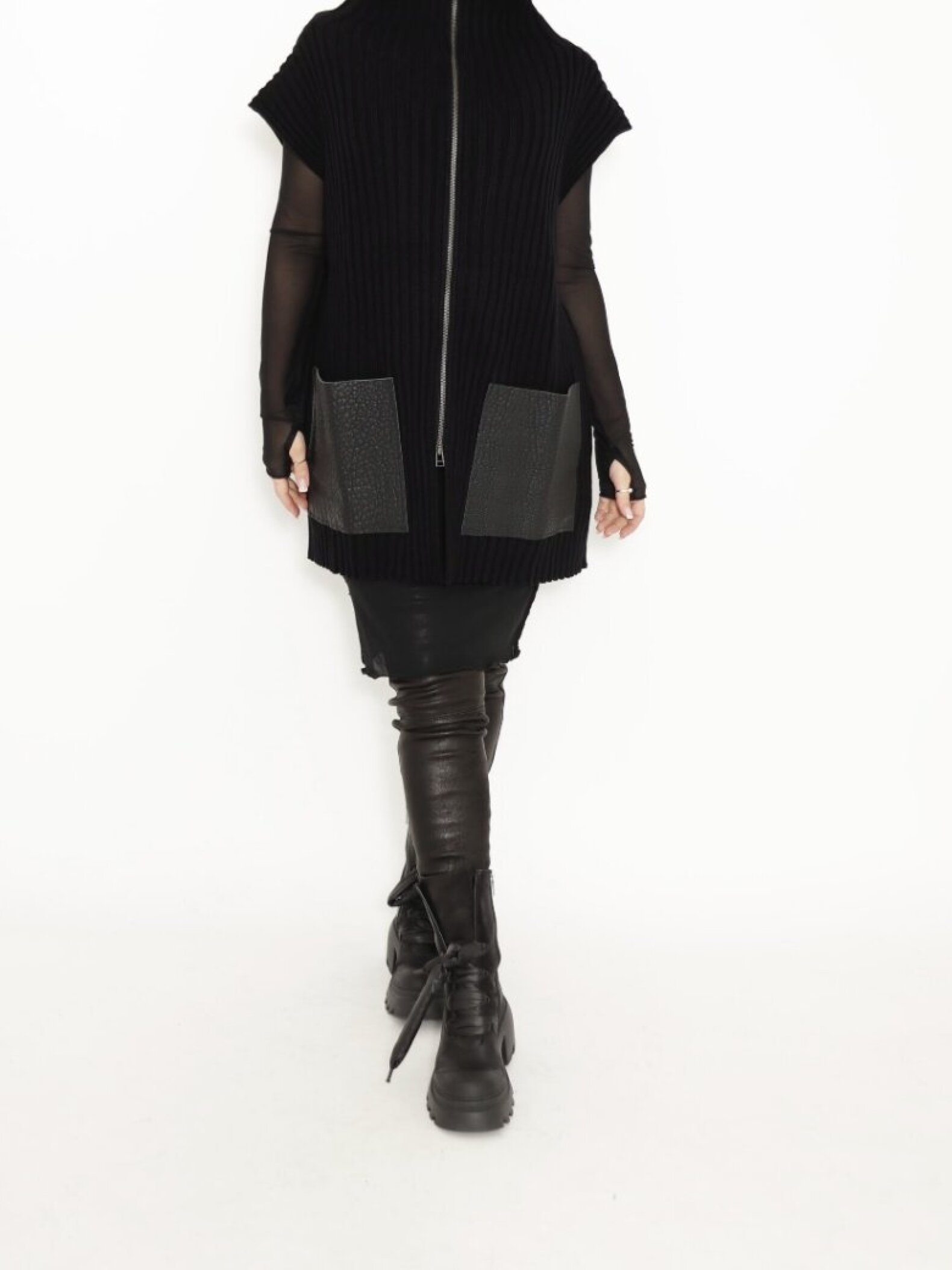 Strikvest med lammeskinds lommer foran og en lynlås foran med to-vejs-funktion.