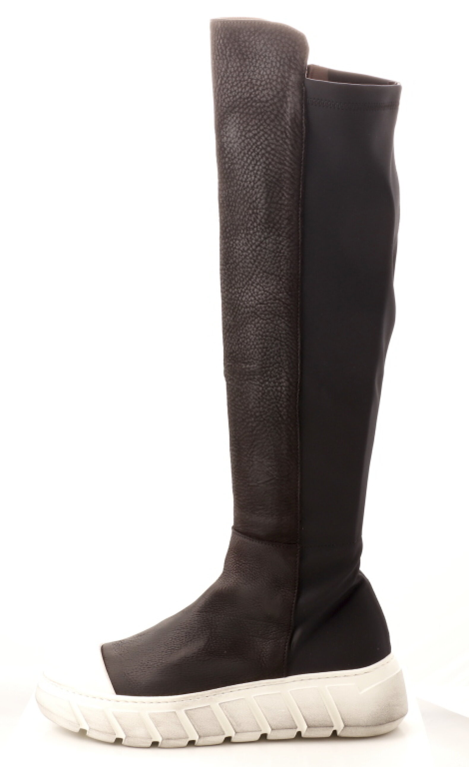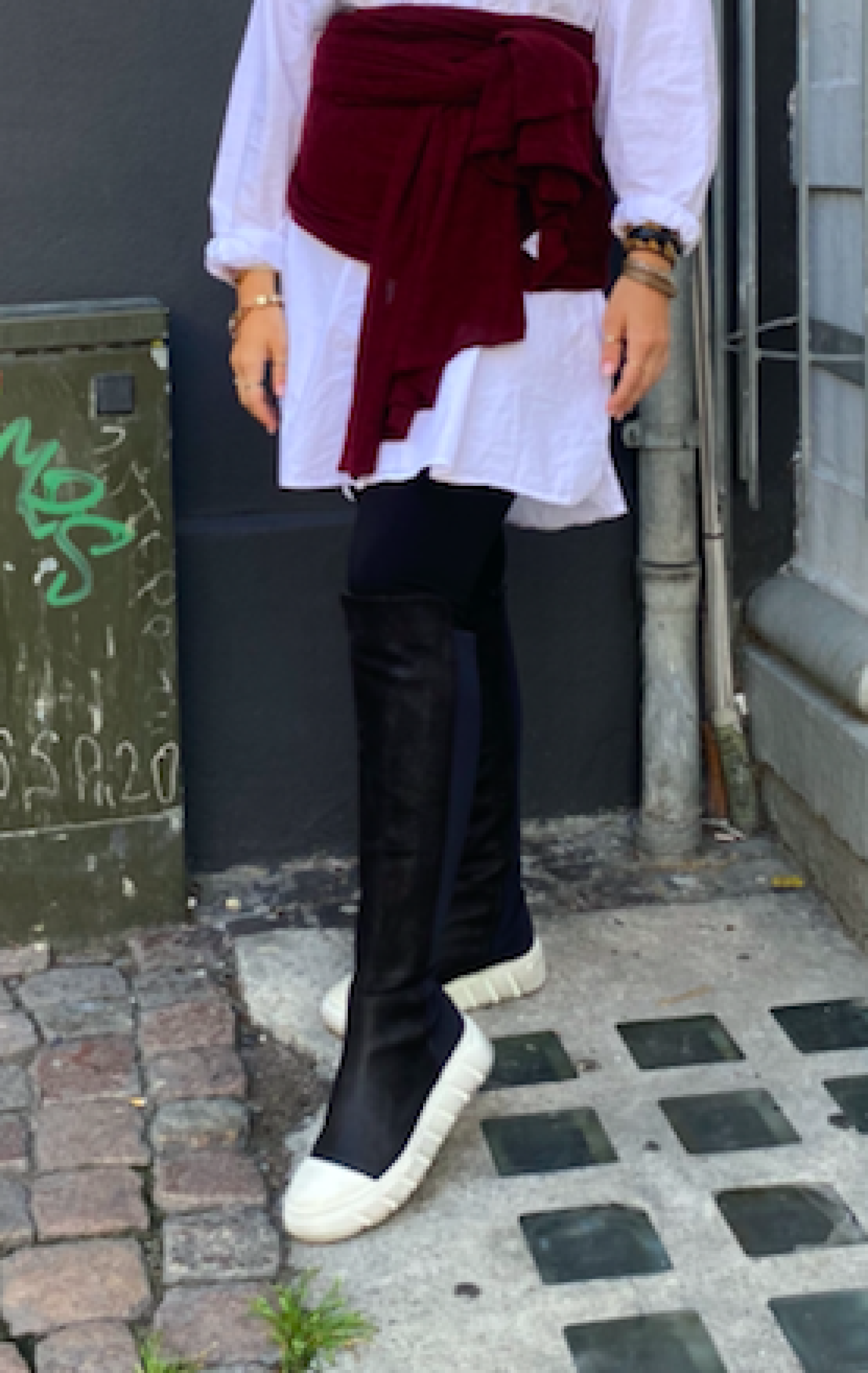 Lofina støvle i sort, med en hvid sål lavet i gummi. Denne støvlet har et råt udtryk, som vil gå godt både til en nederdel og bukser. Støvlen er lavet med elastik.