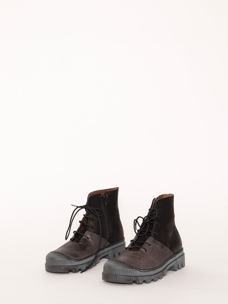 Lofina støvlet med kraftig gummisål, hvilket gør skoen ekstra slidstærk. Støvletten er i to farver skind - en mørkegrå og en sort. Støvletten har en snørelukning, men den har også en indvendig lynlås, så den er nem at komme i.