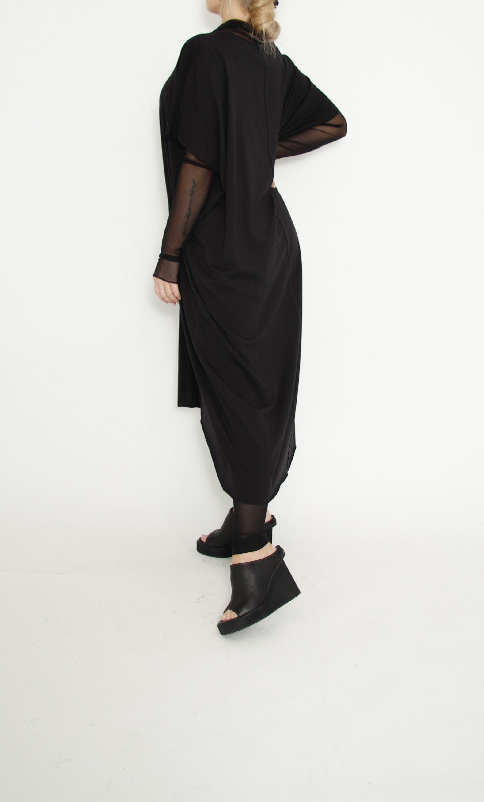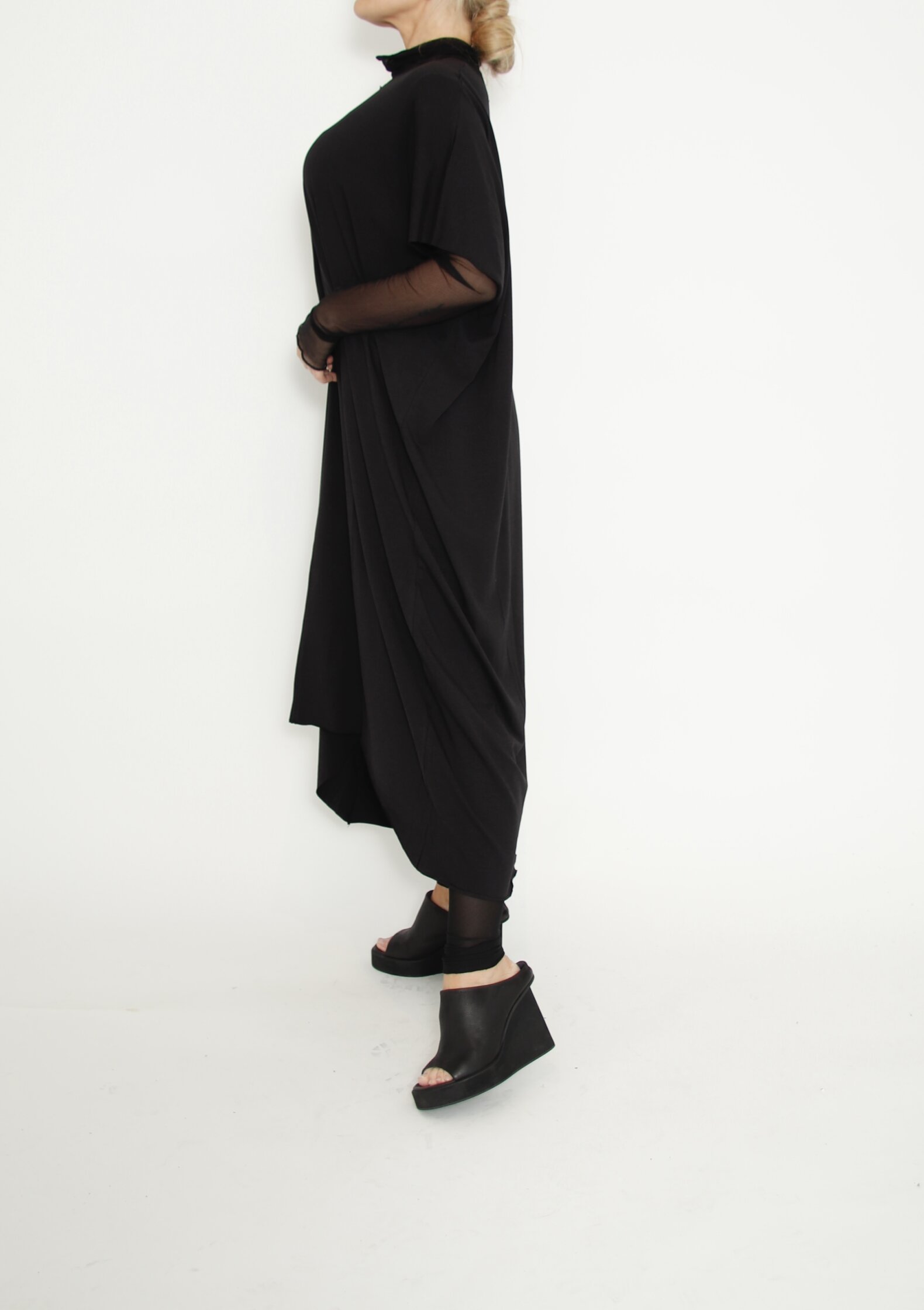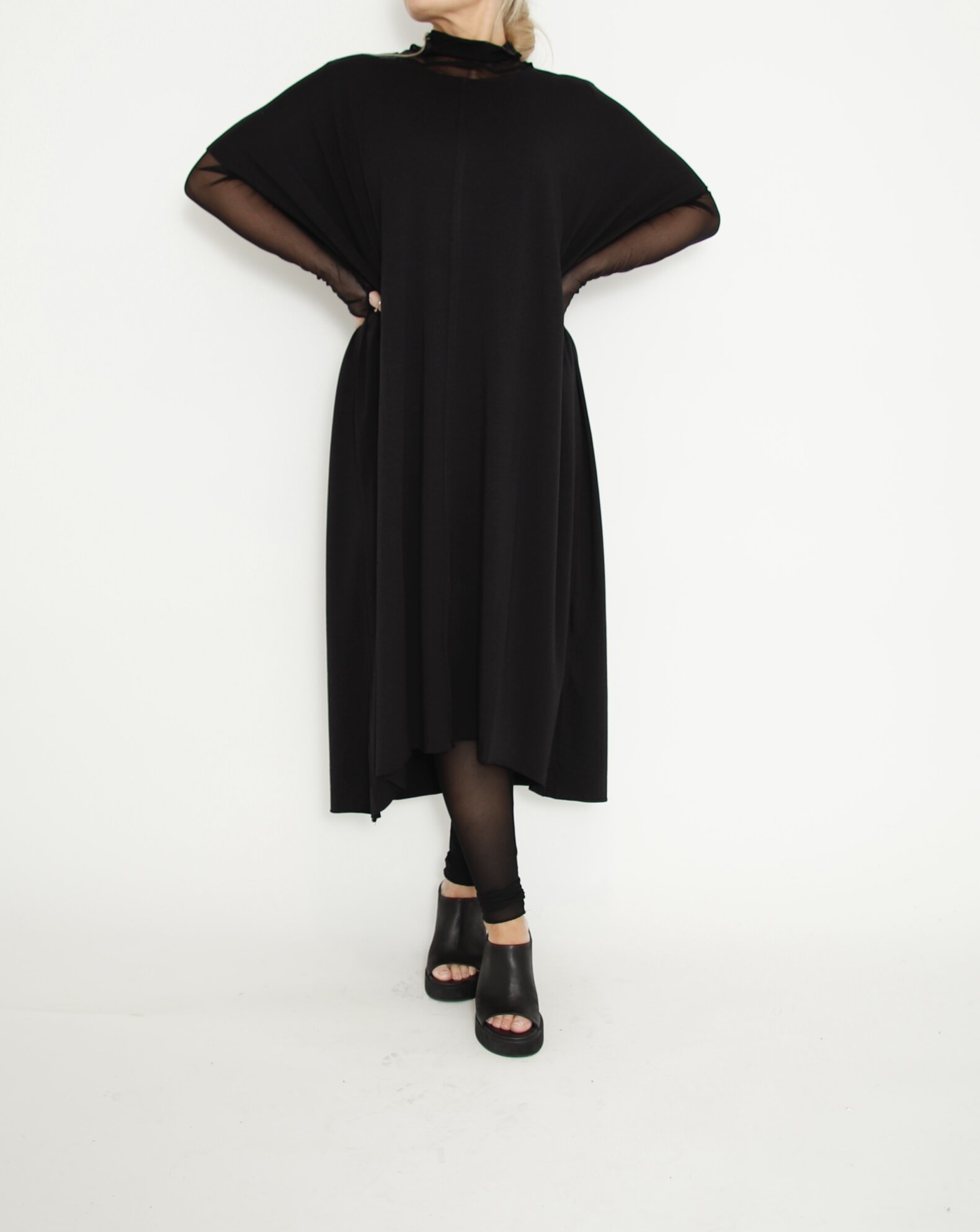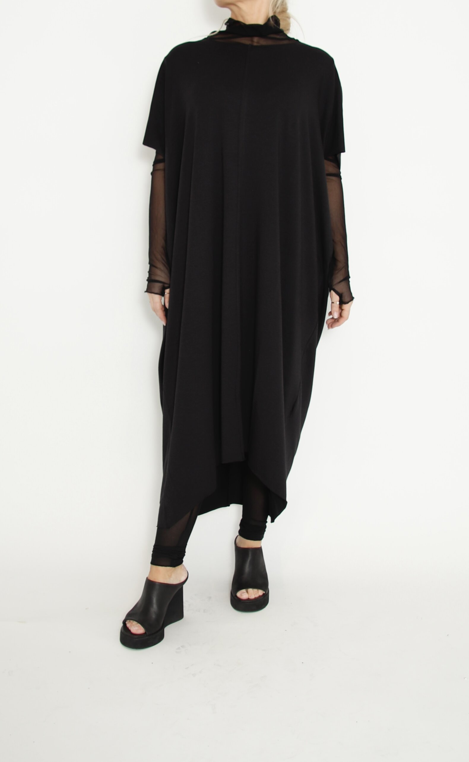 Beautiful wide fitted and light weight dress in organic cotton. Made in a very soft jersey, perfect for the warm Summer days. Style with bare arms and feet and a nice pair of Lofina sandals, or lift up the look for a night out with a mesh blouse, leggings and high heels from Sort Aarhus. Also cool to style with cropped jeans for a more raw and cool look. The opportunitites are plenty!