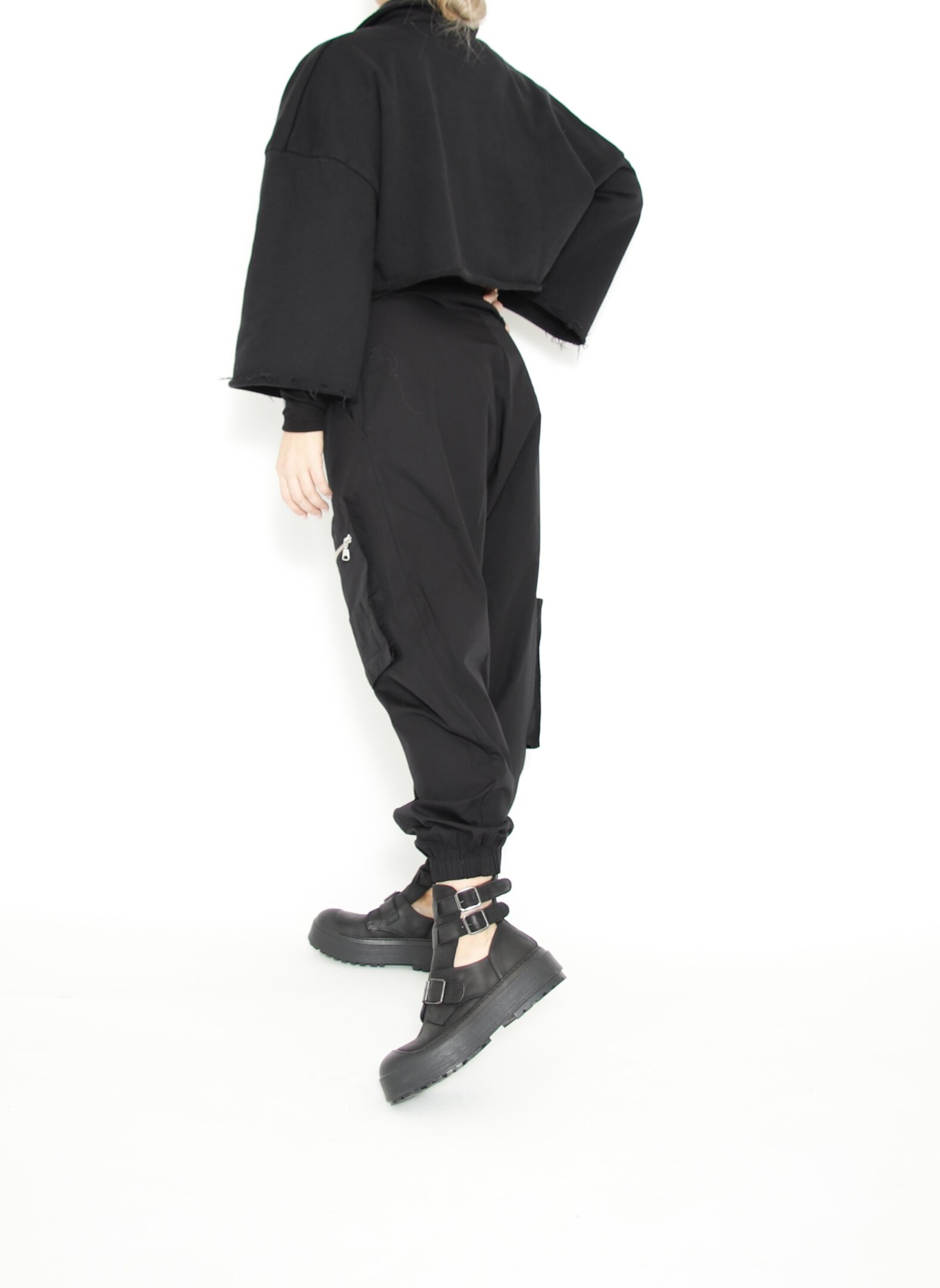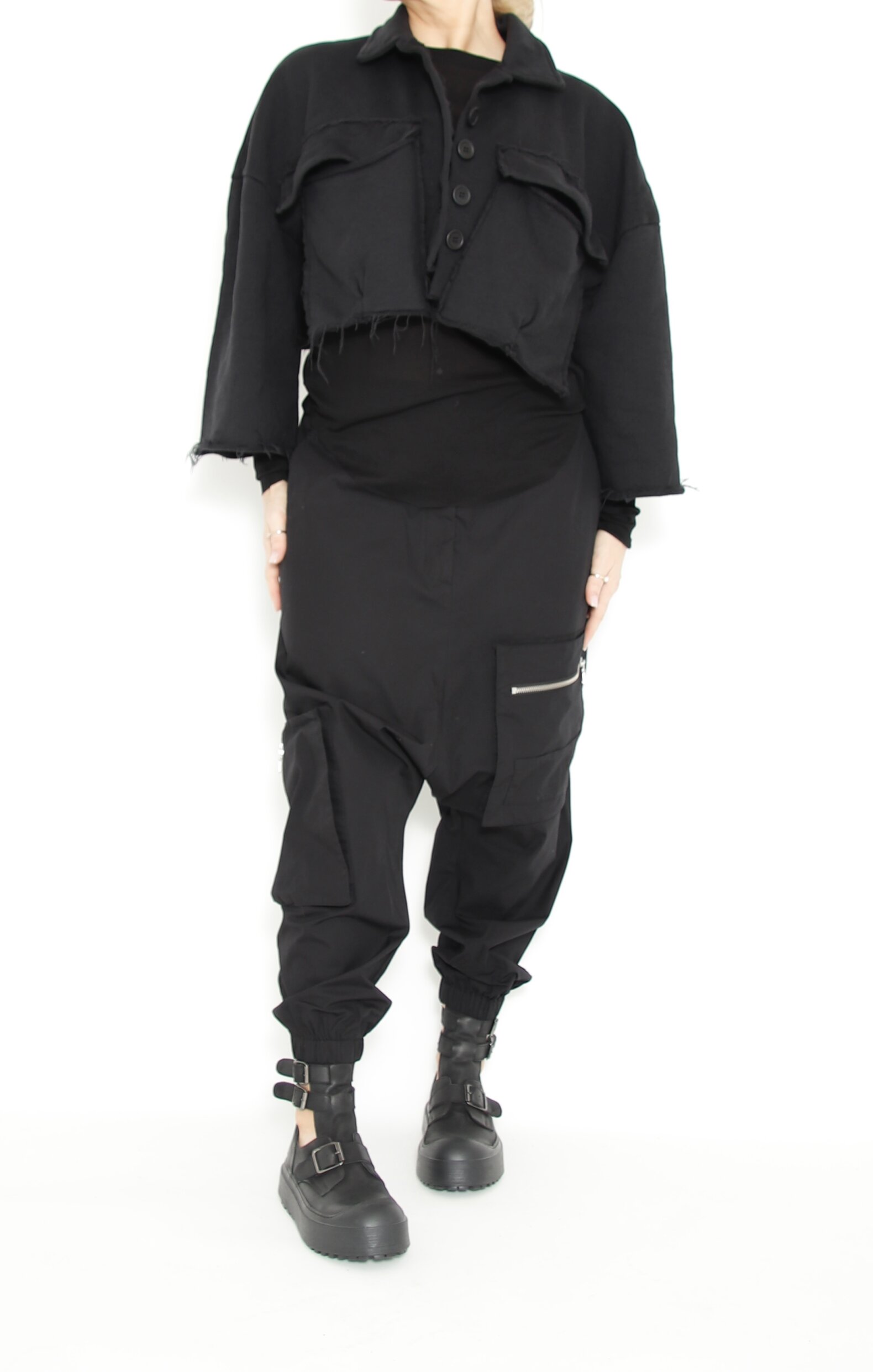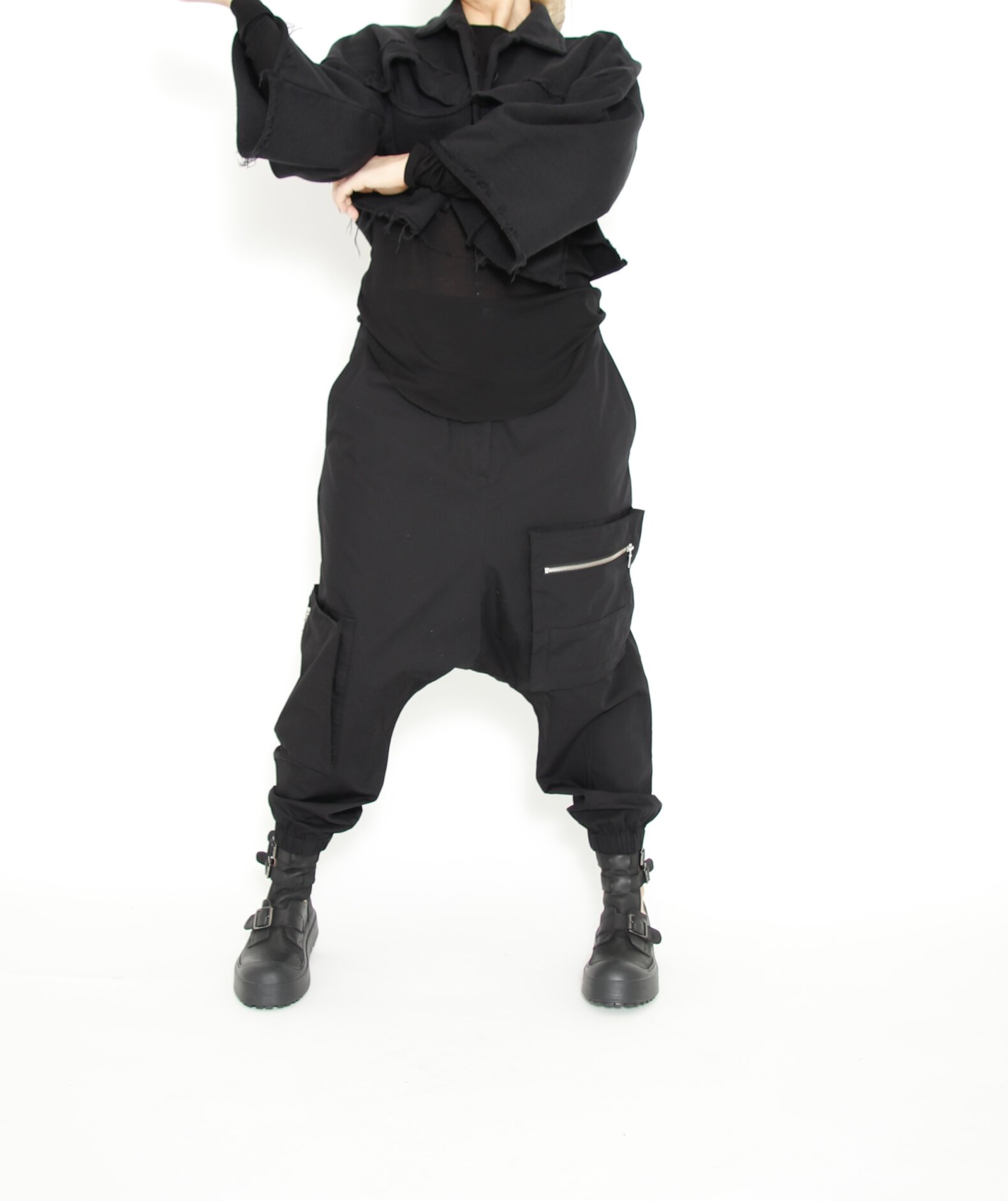 Pants with pockets and zips. This style has a baggy fit.