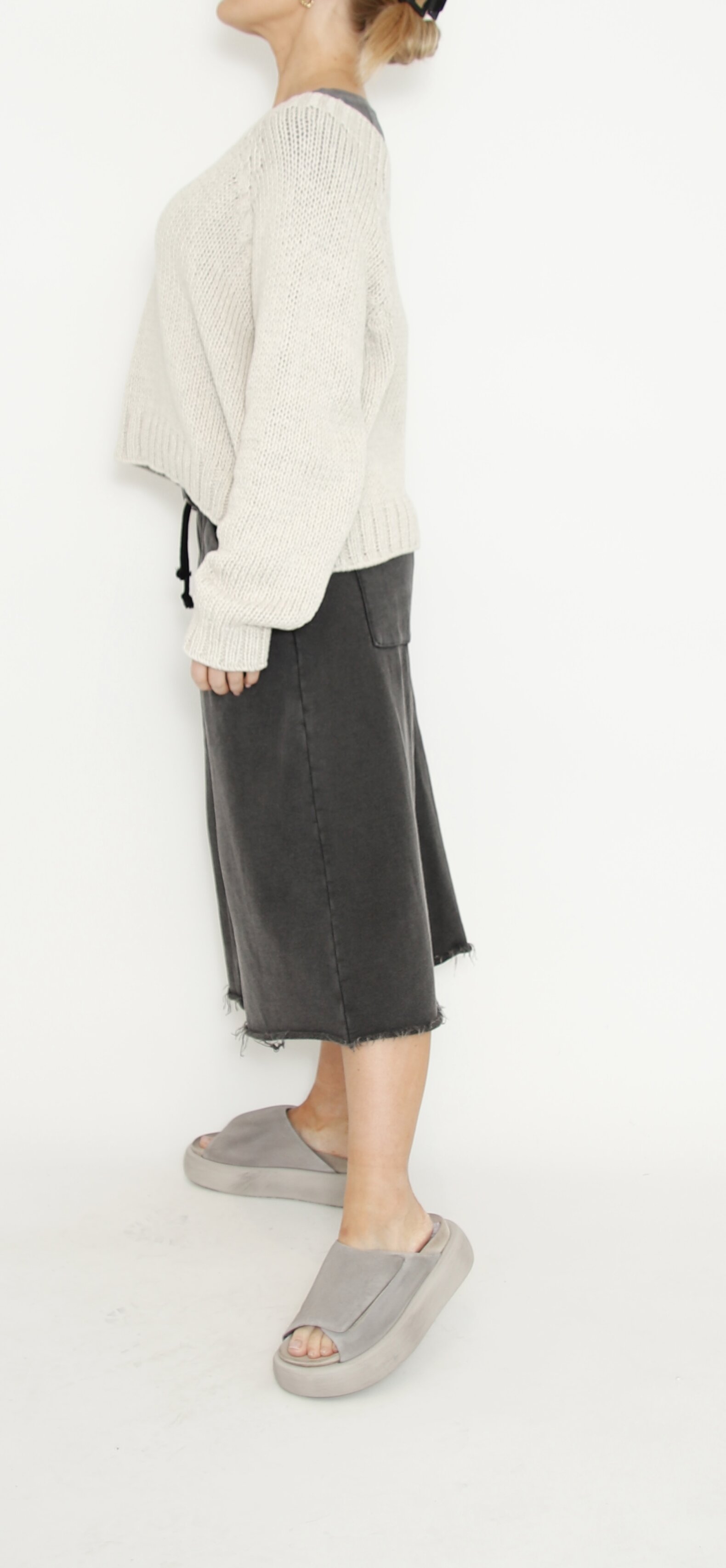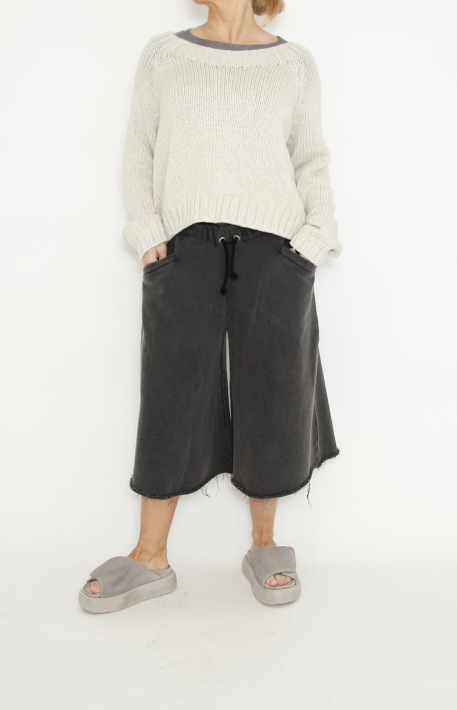 3/4 pants with very wide legs. This style has pockets and an adjustable waist strap