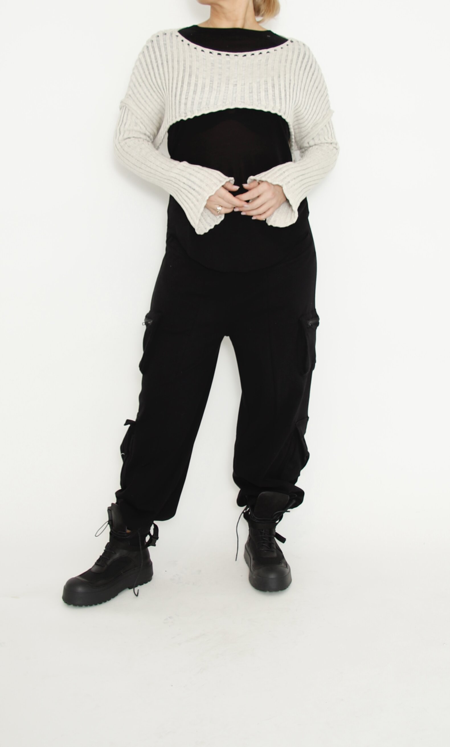 Knitted sleeves in 100% cotton. This style can be used as a short cargidan over a top, shirt or maybe a dress.
