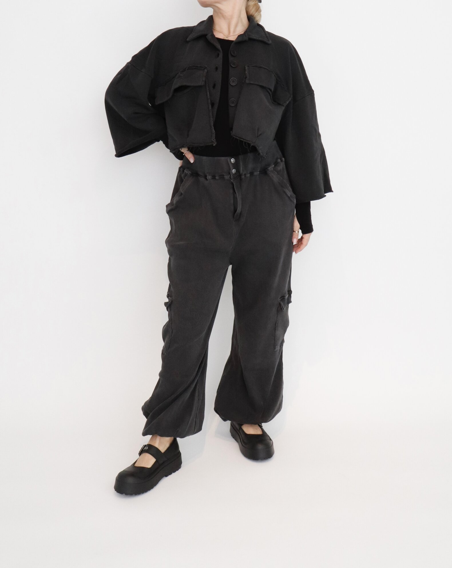 Super cool pants with 7/8 length, button closure and pockets on front, back and by the knees. The adjustable laces give a cool look.