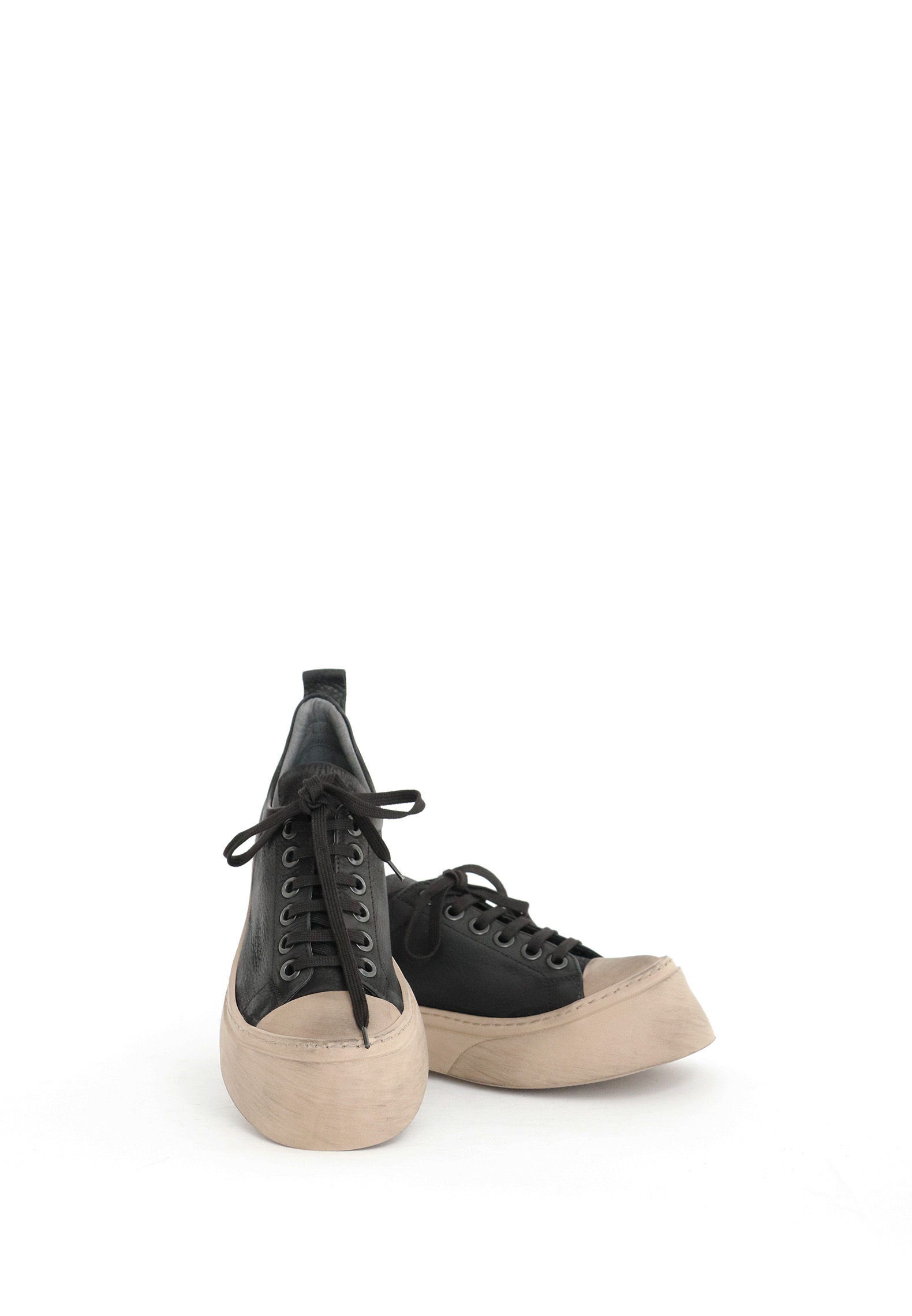 Super sej sko med lys sål fra Lofina. Skoen har snøre og en chunky sål i kontrastfarve til det sort overlæder. Skil dig ud med denne seje sko, som er lavet i kalveskind af høj kvalitet.