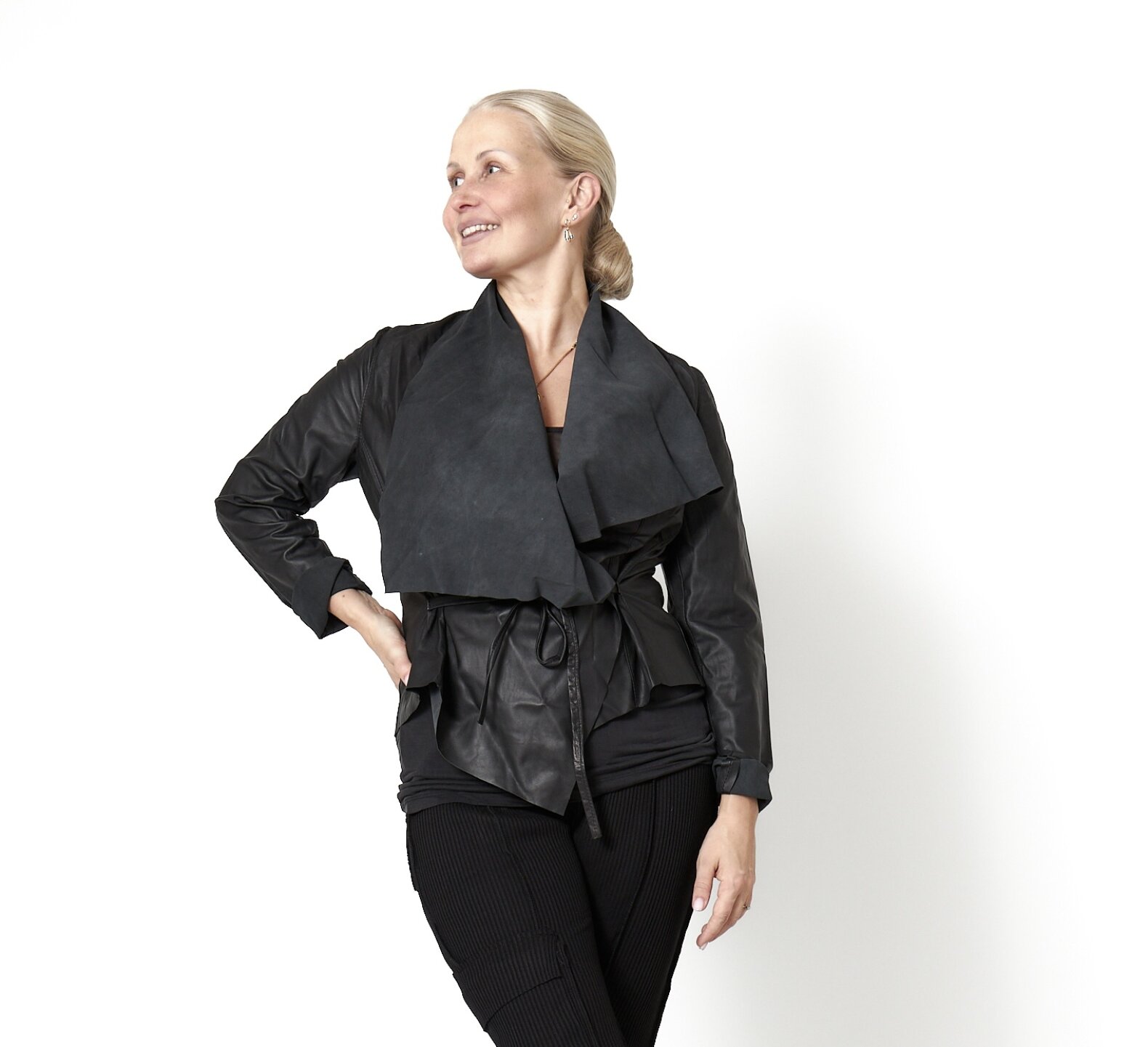 Wrap leather shirt in thin leather. The shirt is made in 100% lamb leather. Use open and closed.Material