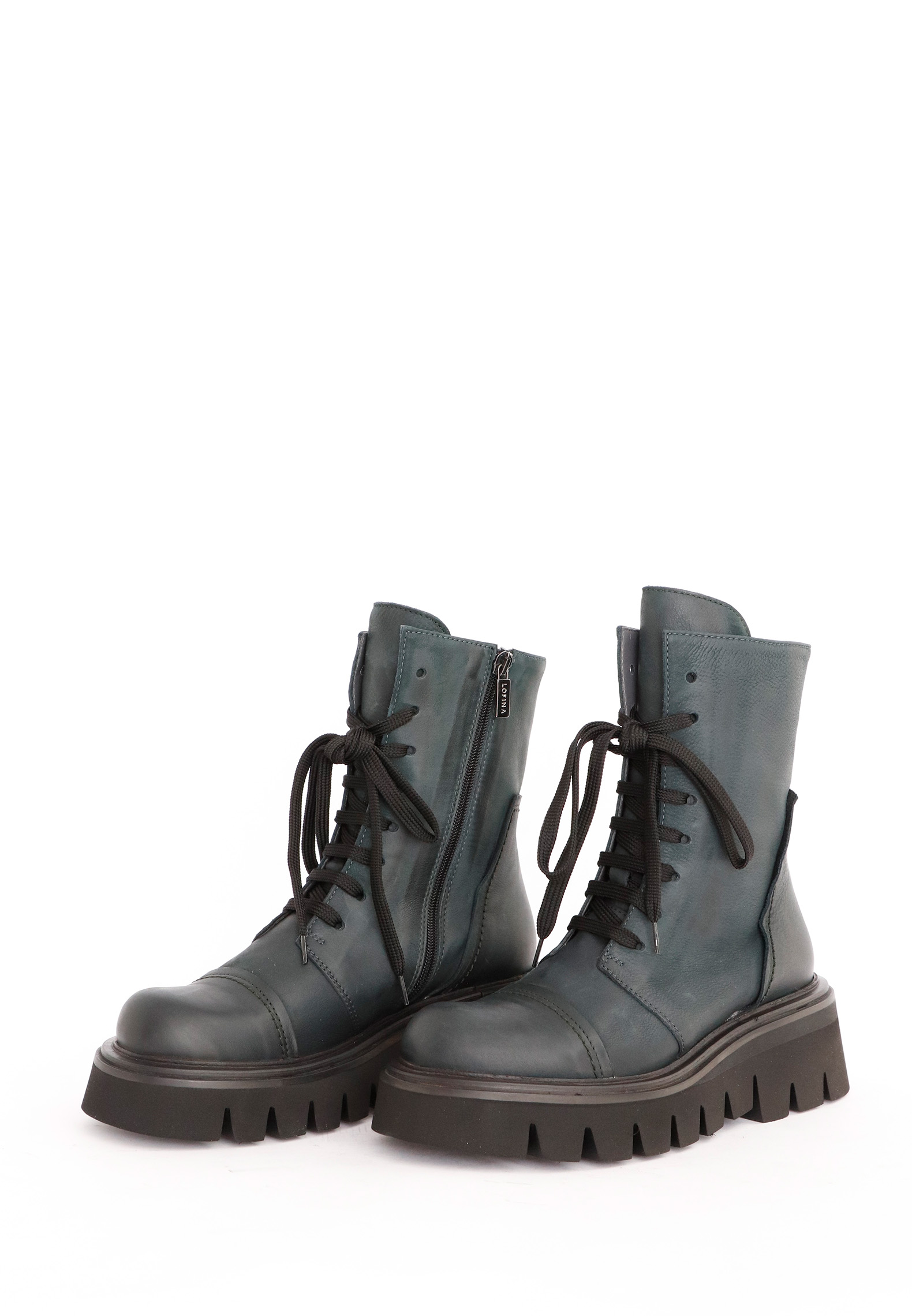 Boot with laces and visible stitching on the front and heel. All Lofina shoes are carefully crafted by hand at a small family-owned factory in central Italy Every style is uniquely manufactured from exclusive core leather materials sourced nearby.