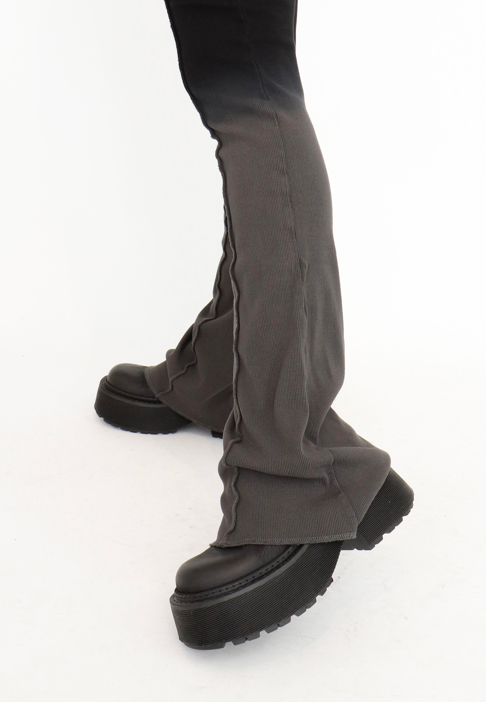 Boot cut bukser i rib af viscose med rå syninger. Bukserne er lavet i det smukkeste dip dye look. Alt Sort Aarhus tøj er produceret i Portugal af nøje udvalgte lokale materialer og kvaliteter med fokus på design og pasform.