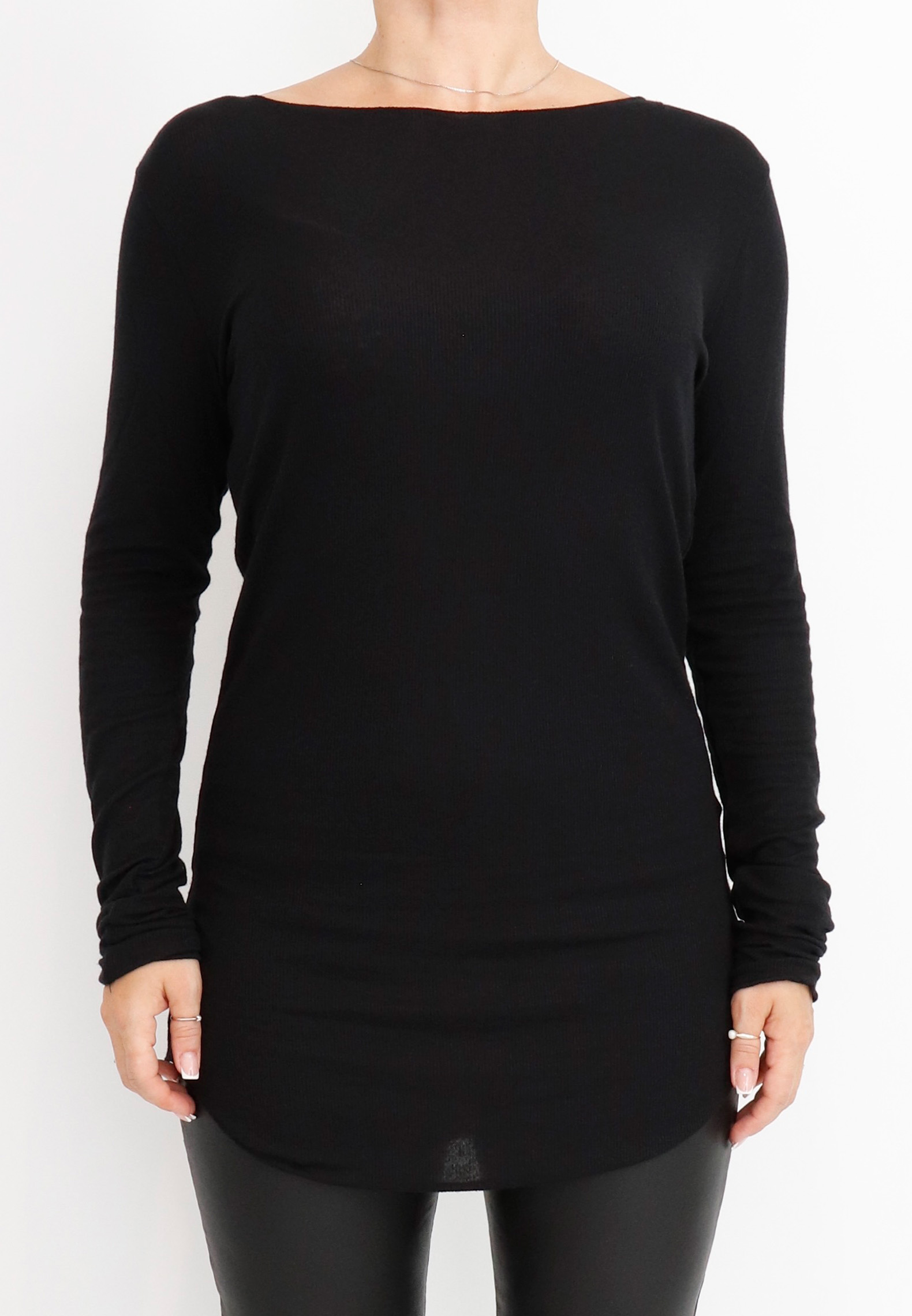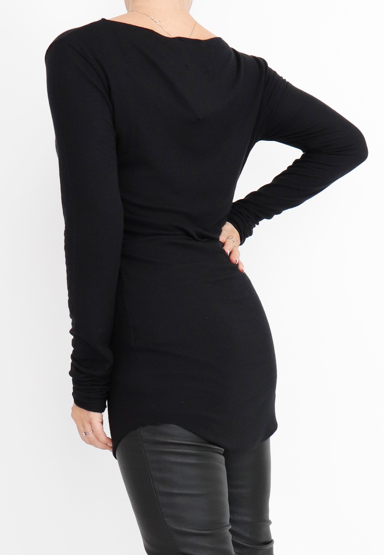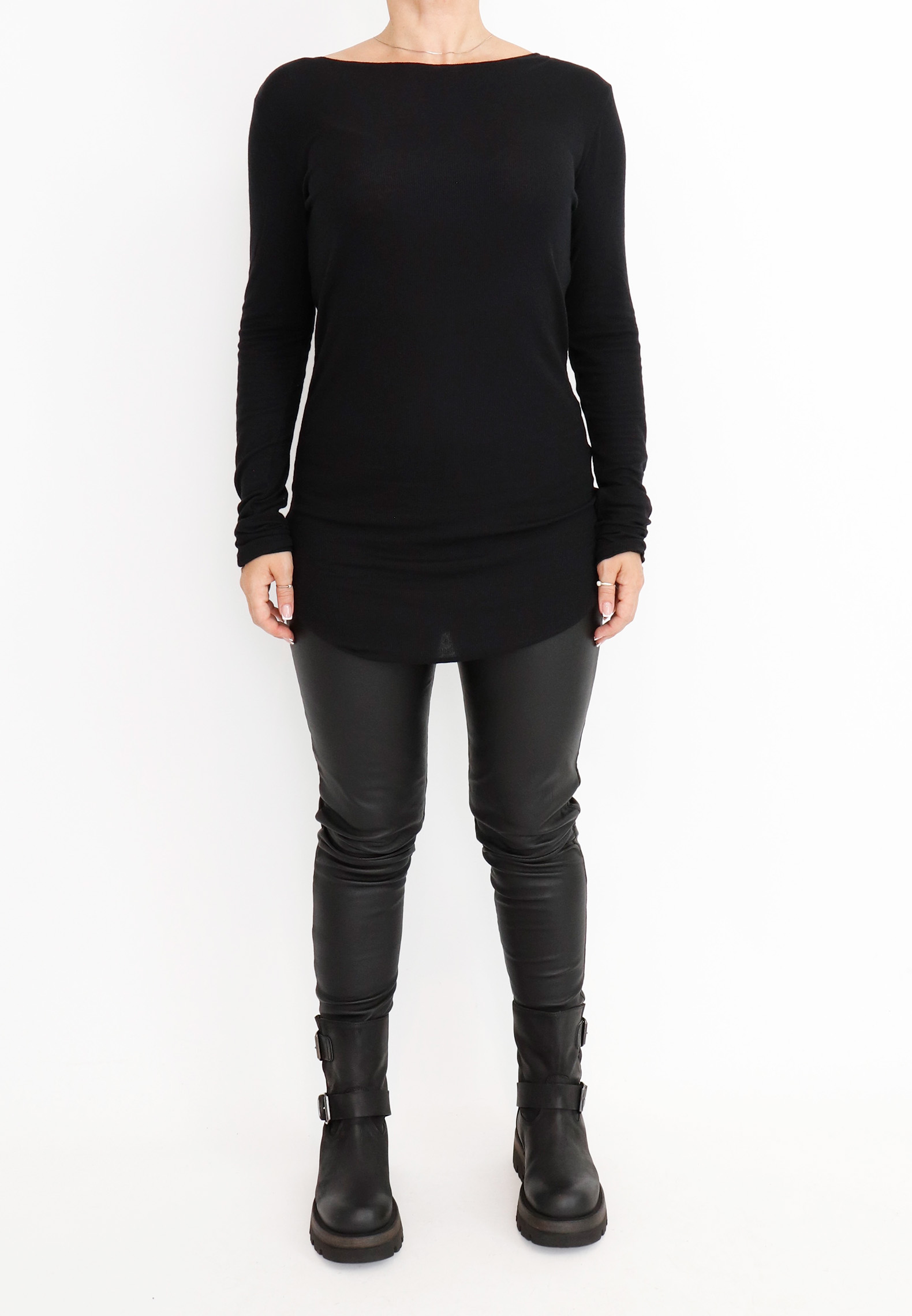 Bluse i modal/uld blanding med rund hals og lange ærmer. Rigtig god til lag-på-lag. Alt Sort Aarhus tøj er produceret i Portugal af nøje udvalgte lokale materialer og kvaliteter med fokus på design og pasform.