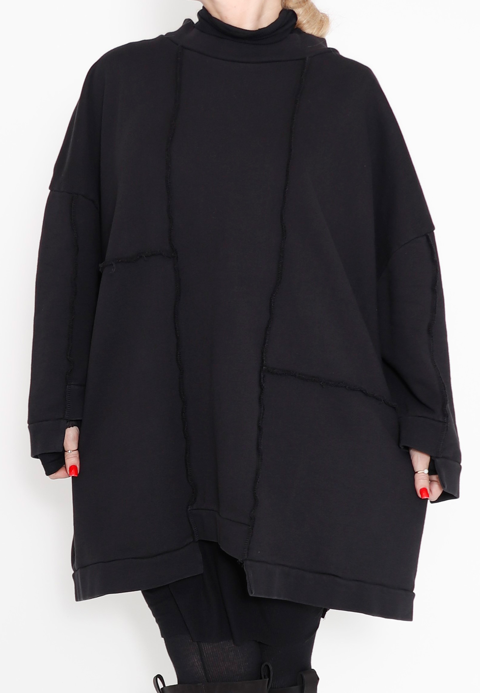 Sweatshirt in 100% cotton with visiible stitchings and an asymmetric cut. All Sort Aarhus clothing is made in Portugal of handpicked local materials and qualities with focus on design and a comfortable fit.