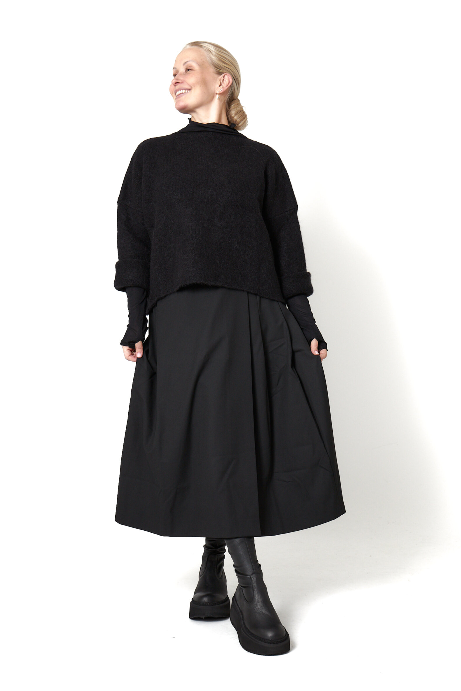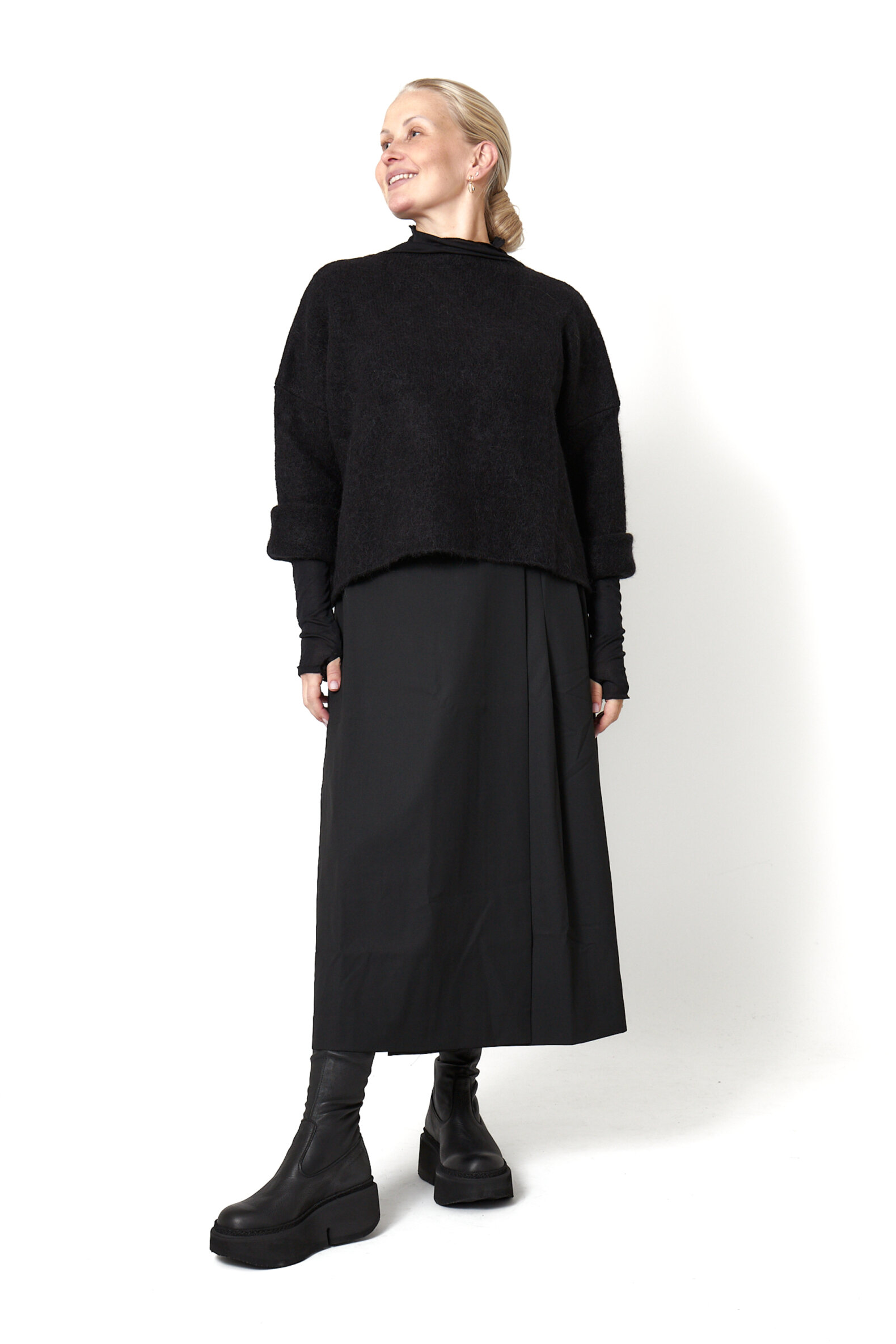 Lang nederdel i polyester/viscose blanding. Nederdelen lukkes med en knap foran, og har lommer bagpå. Alt Sort Aarhus tøj er produceret i Portugal af nøje udvalgte lokale materialer og kvaliteter med fokus på design og pasform.