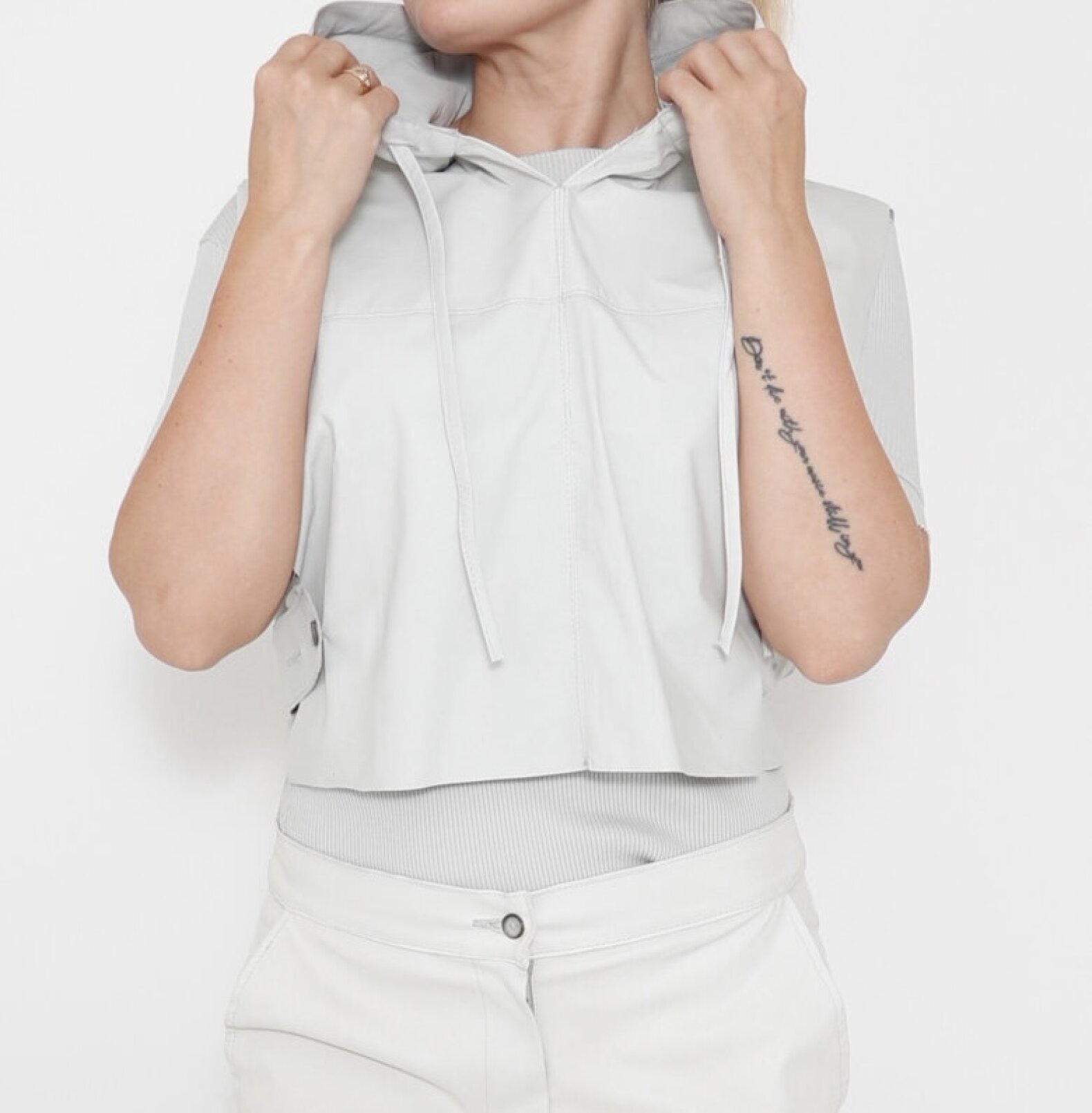 Tynd skindvest med hætte. Vesten er lavet i 100% lammeskind. Sort Aarhus er designet i Danmark og produceret i Portugal.