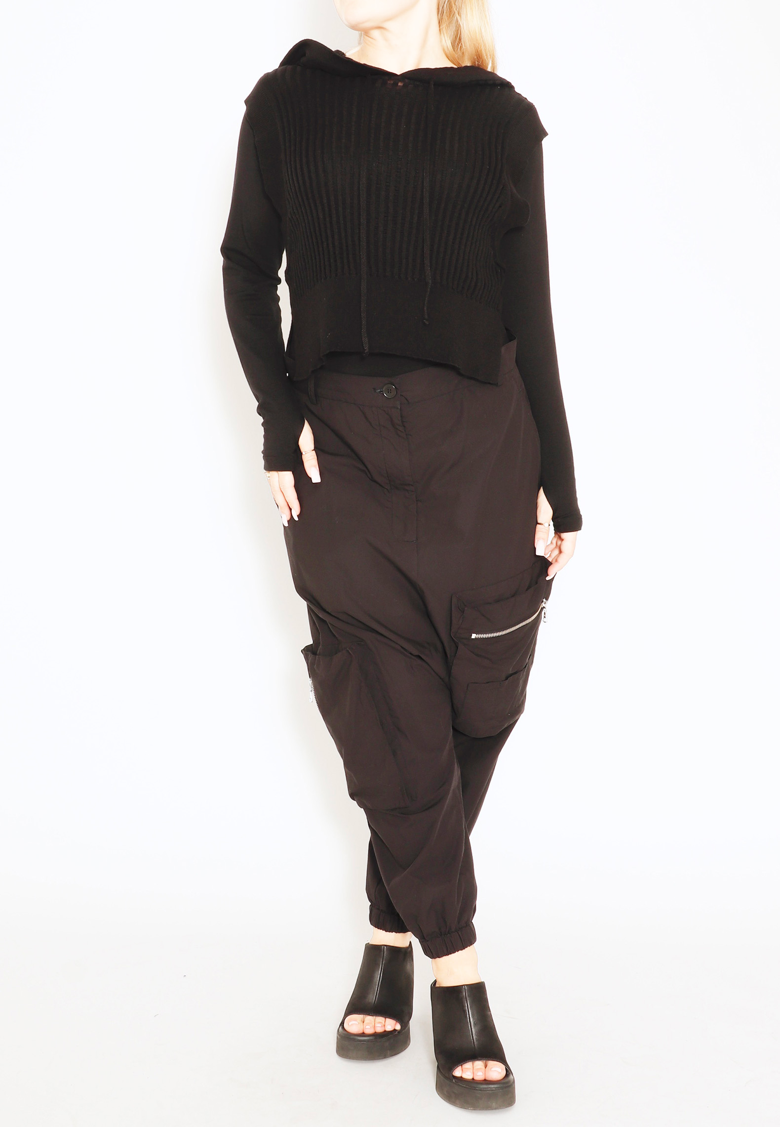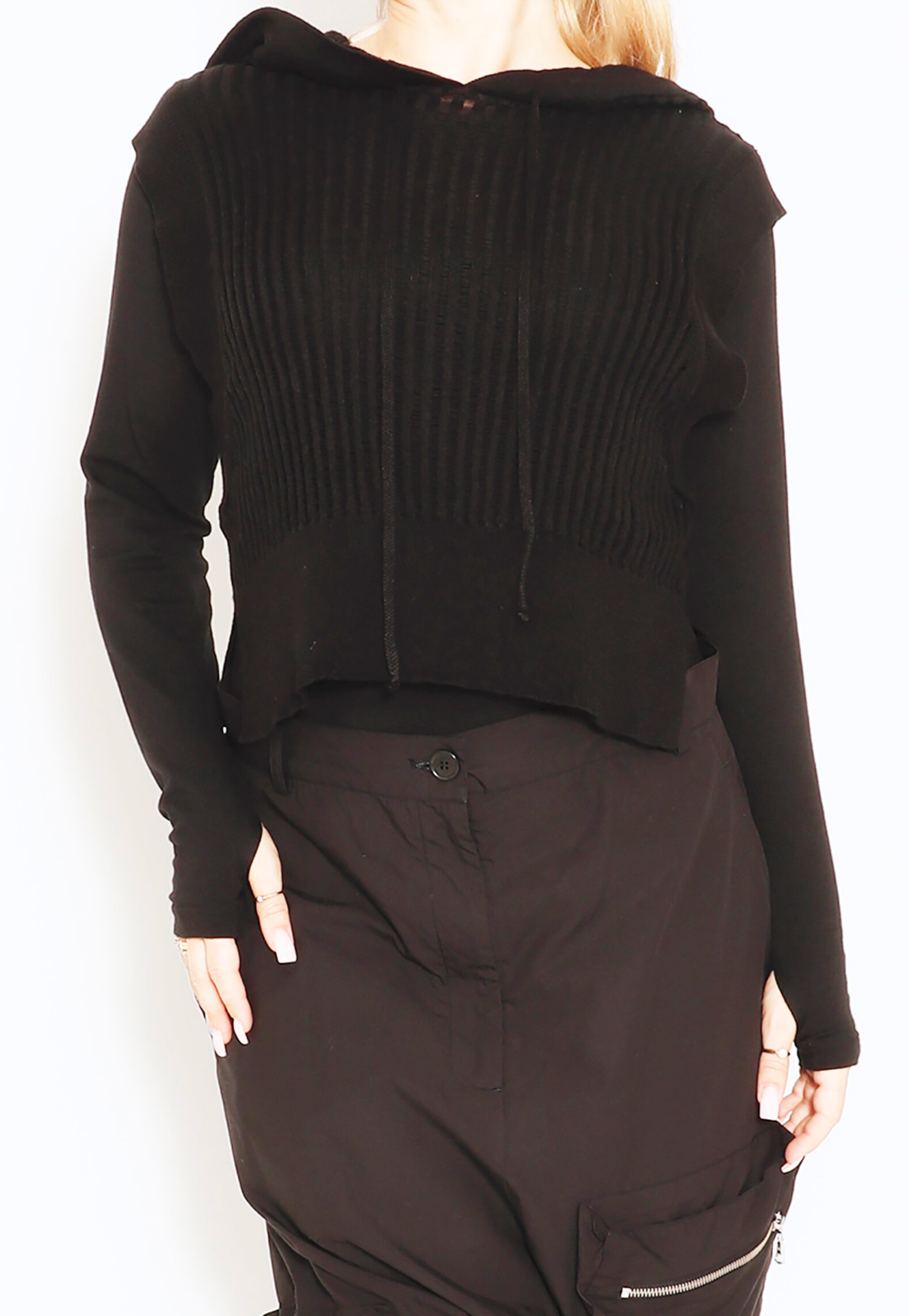 Knit vest in cotton with hoodie and slits in the sides. Nice to style over a basic blouse or dress. All Sort Aarhus clothing is made in Portugal of handpicked local materials and qualities with focus on design and a comfortable fit.Material
