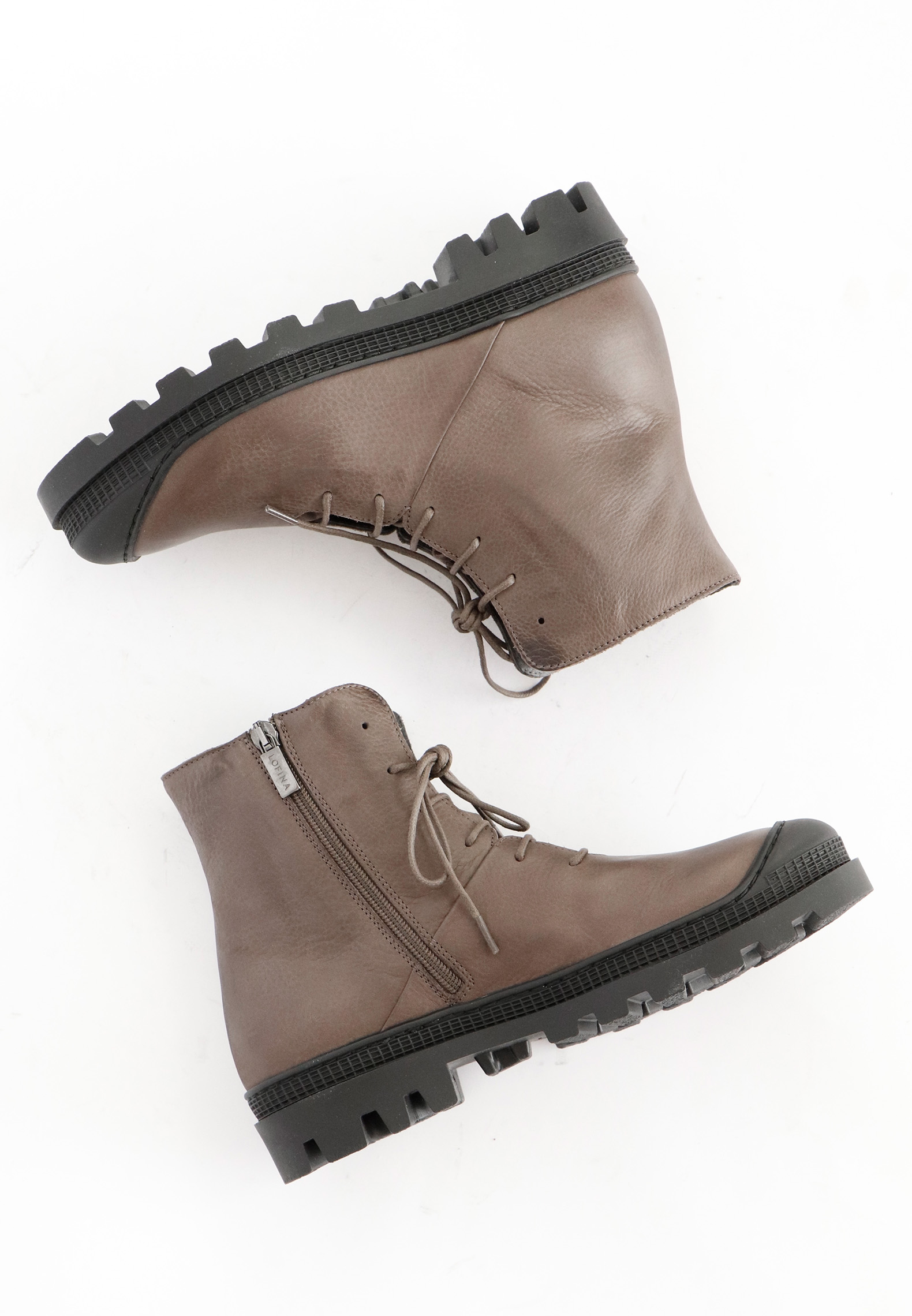 Beautiful boots with laces and a zipper, that makes it easy to put on and adjust. Are you looking for a boot to wear all day long, every day, this one is the way to go! The same model as bestseller I6-965, only with a black sole. All Lofina shoes are carefully crafted by hand at a small family-owned factory in central Italy. Every style is uniquely manufactured from exclusive core leather materials sourced nearby.Material