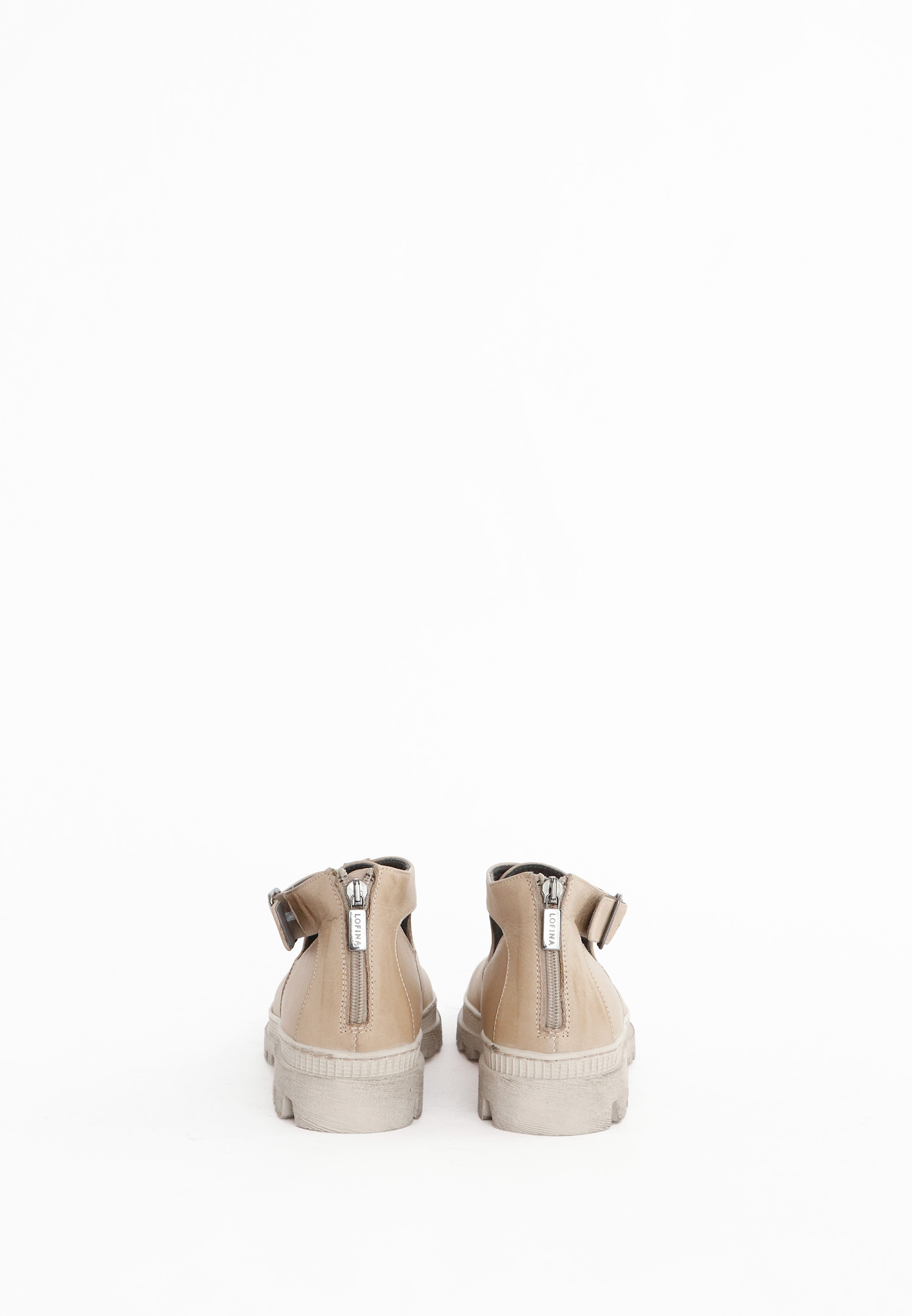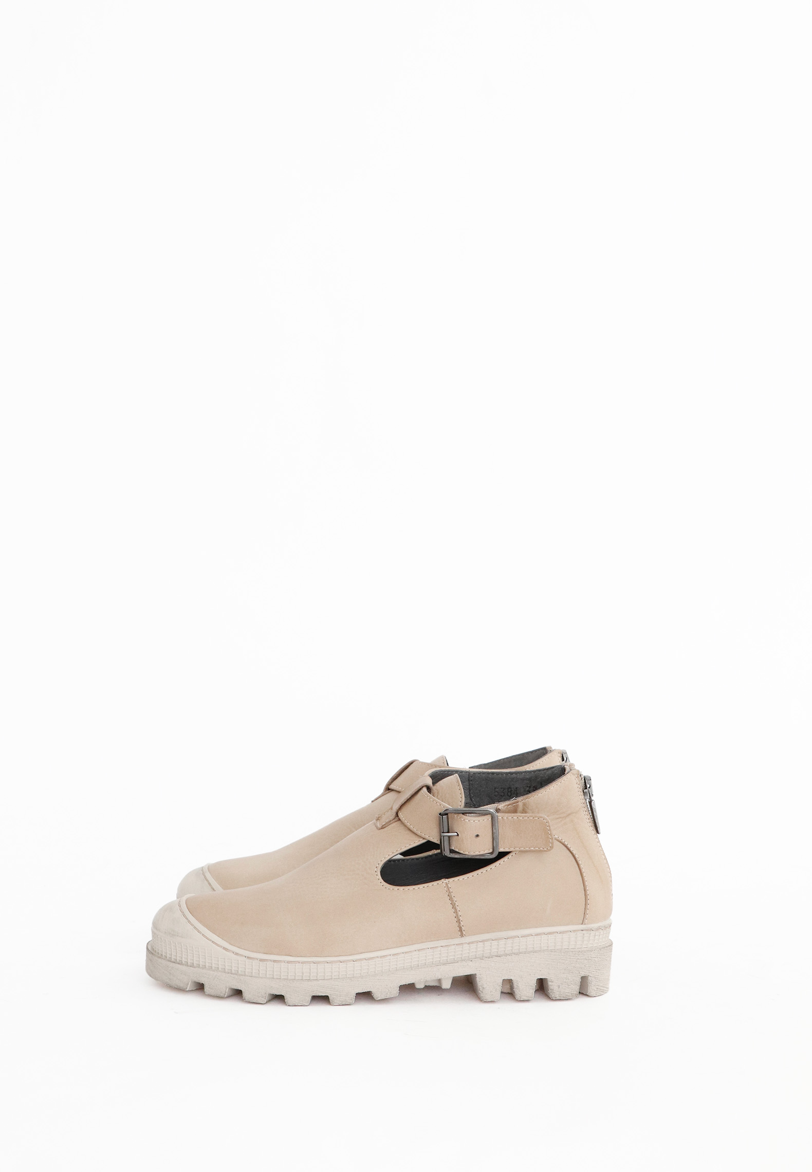 Åben sko med spænde og lynlås
