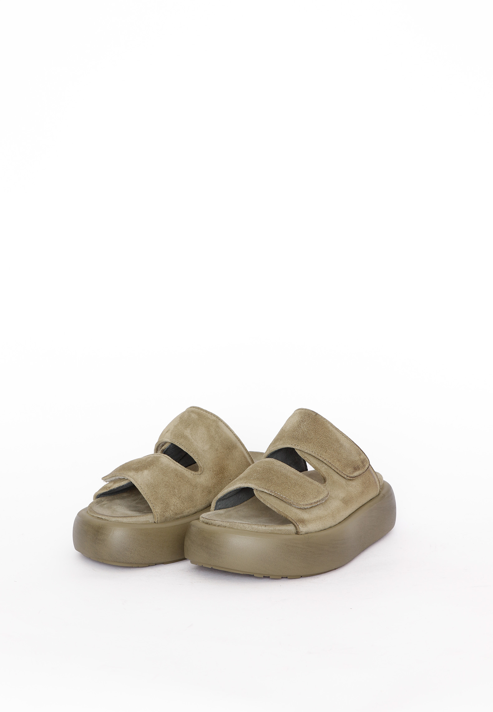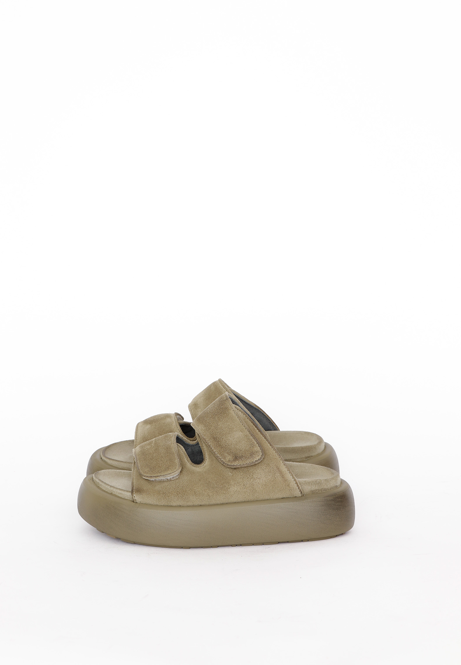 Chunky sandal med to velcrolukninger. Modellen er i ruskind og sålen måler ca. 4,5 cm i højden. Alle Lofina sko er produceret på en lille familieejet fabrik i det centrale Italien af nøje udvalgte og eksklusive lokale materialer.