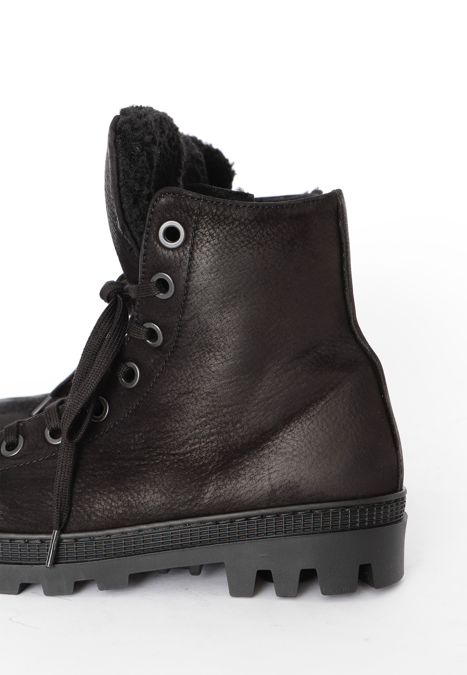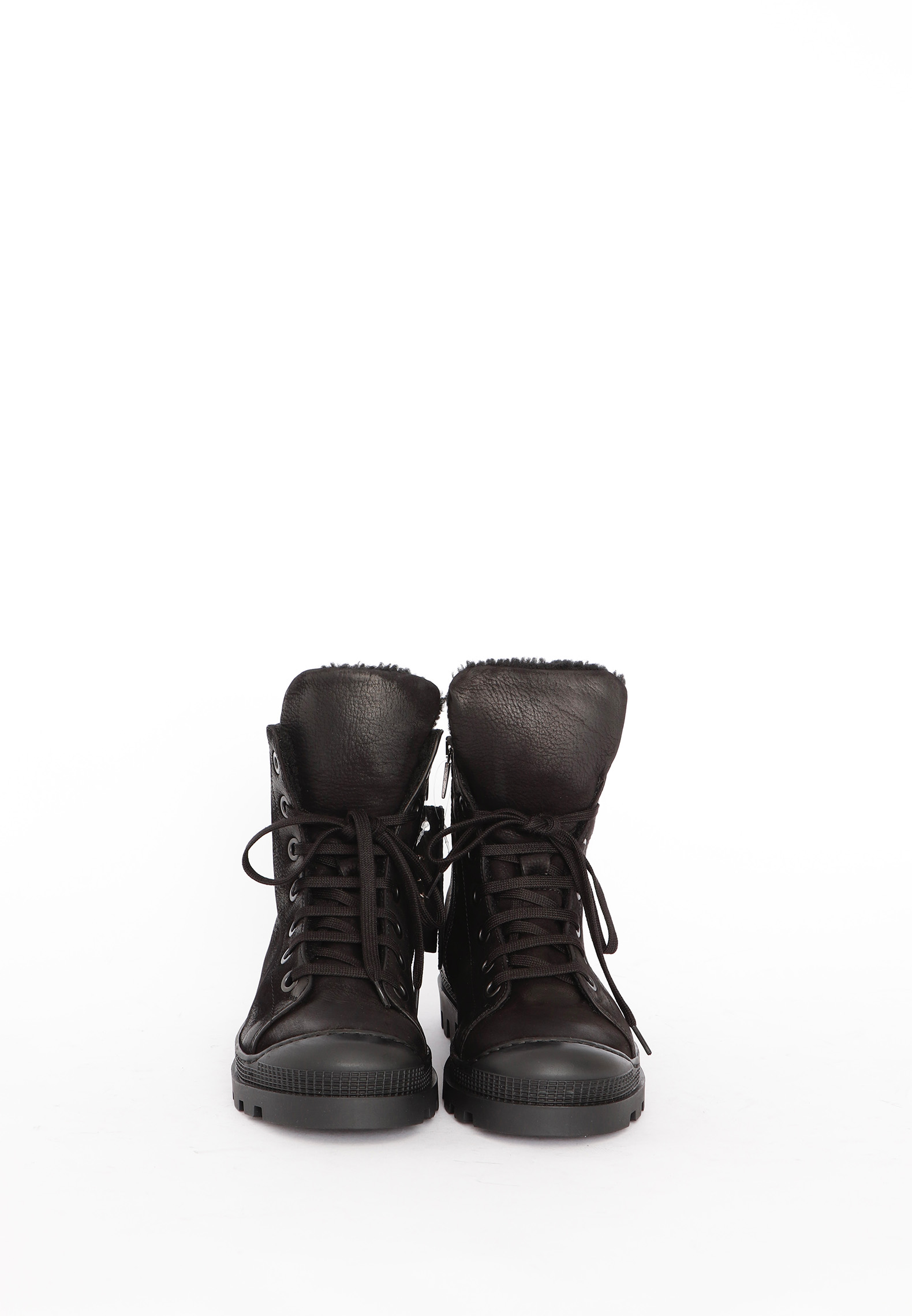 Stilfuld og varm kort støvle med blødt for og snøre foran for justerbar pasform. Sålen er af gummi og er derfor både super behagelig men også slidstærk. Man kan med fordel tage et halvt nummer større end man plejer.