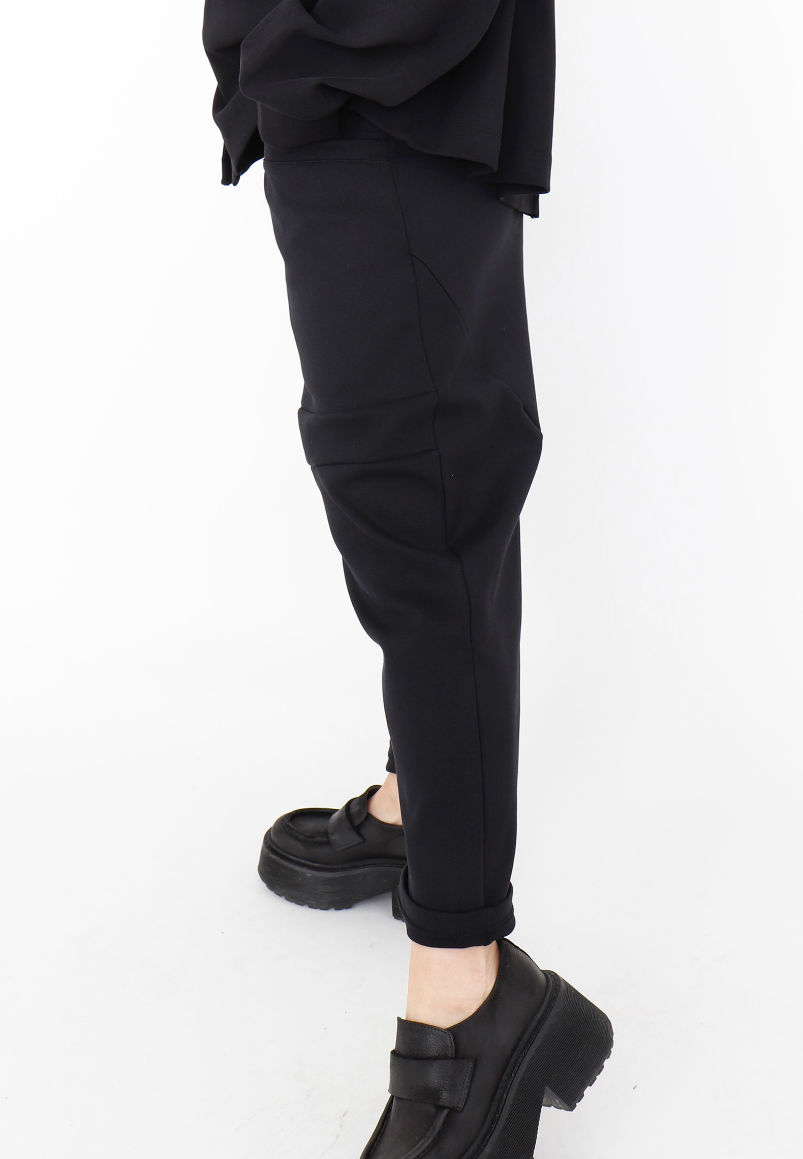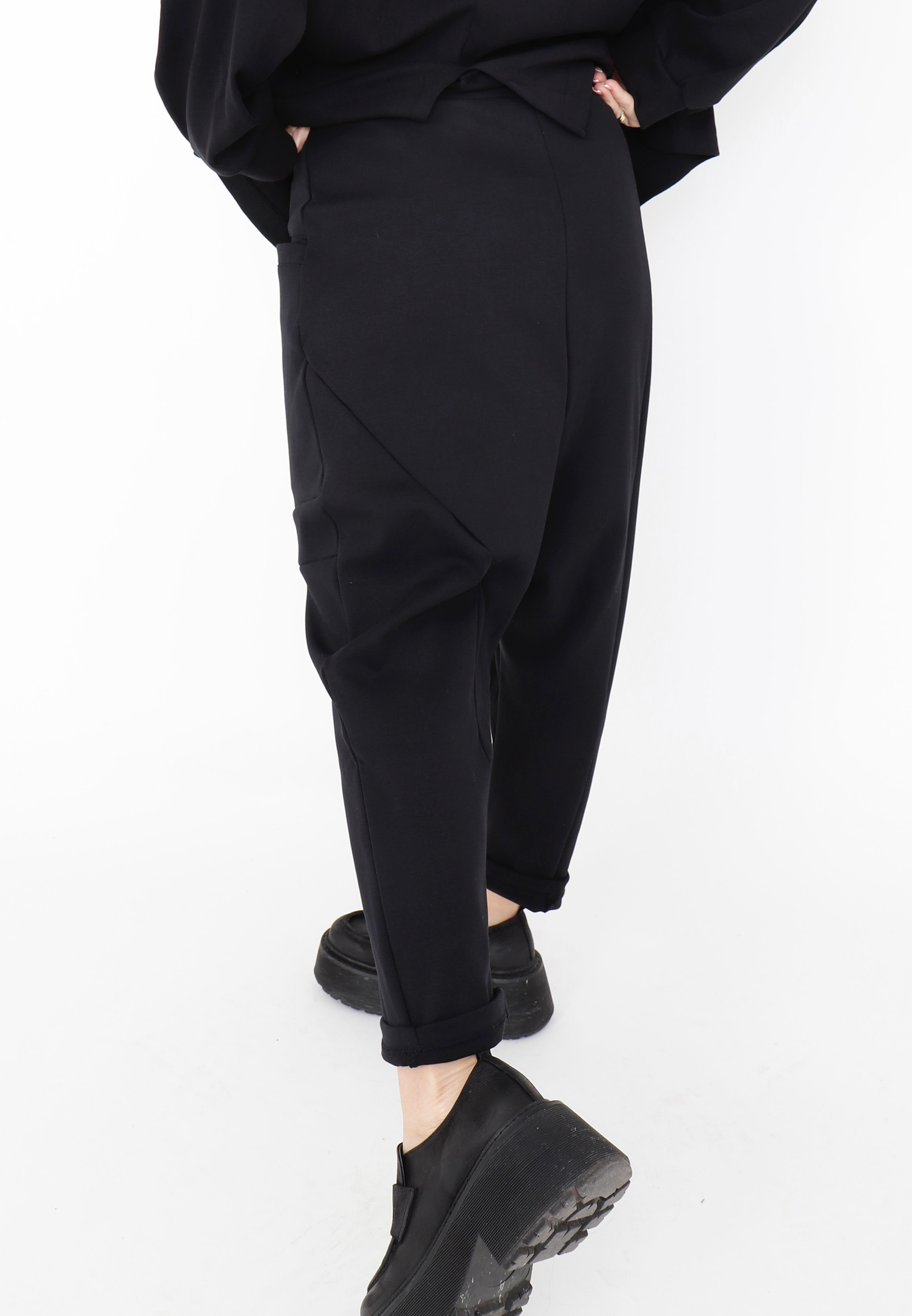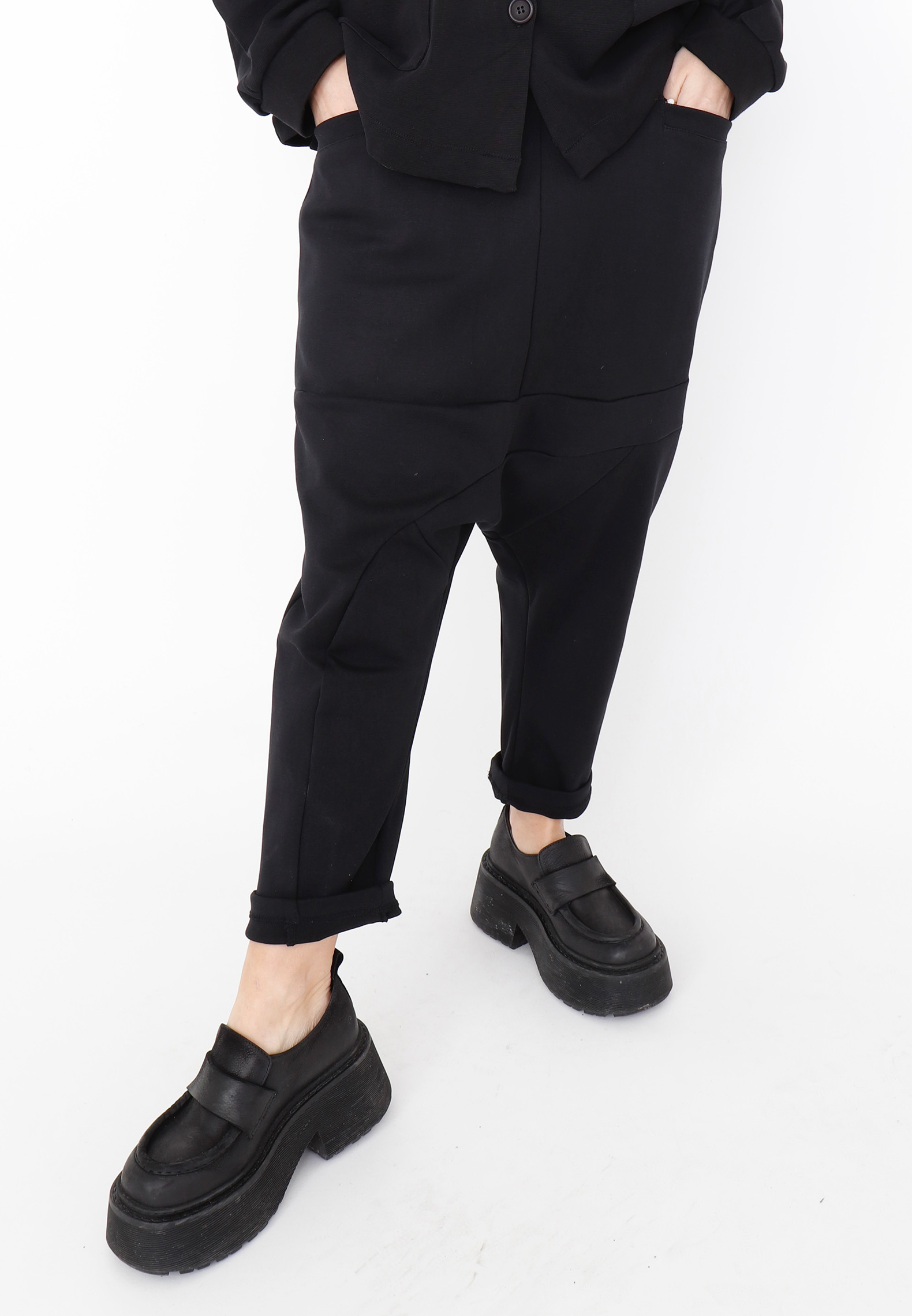 3/4-lange baggy bukser med frontlommer og og bred elastik i taljen. De er fremstillet i en kraftig og fast bomuldskvalitet som falder rigtig flot og er meget behagelige at have på. Bukserne kan styles afslappet med en t-shirt og sneakers eller dresses op med en elegant top eller skjorte for et mere sofistikeret look. Alt Sort Aarhus tøj er produceret i Portugal af nøje udvalgte lokale materialer og kvaliteter med fokus på design og pasform.