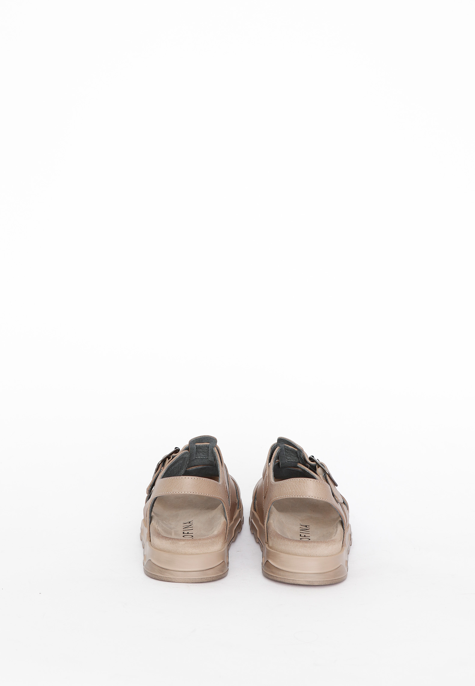 Sandal i kalveskind foret med svineskind, og med justérbart spænde i siden. Sandalen har en meget behagelig fodsengssål som giver en ekstra god komfort. Alle Lofina sko er produceret på en lille familieejet fabrik i det centrale Italien af nøje udvalgte og eksklusive lokale materialer.