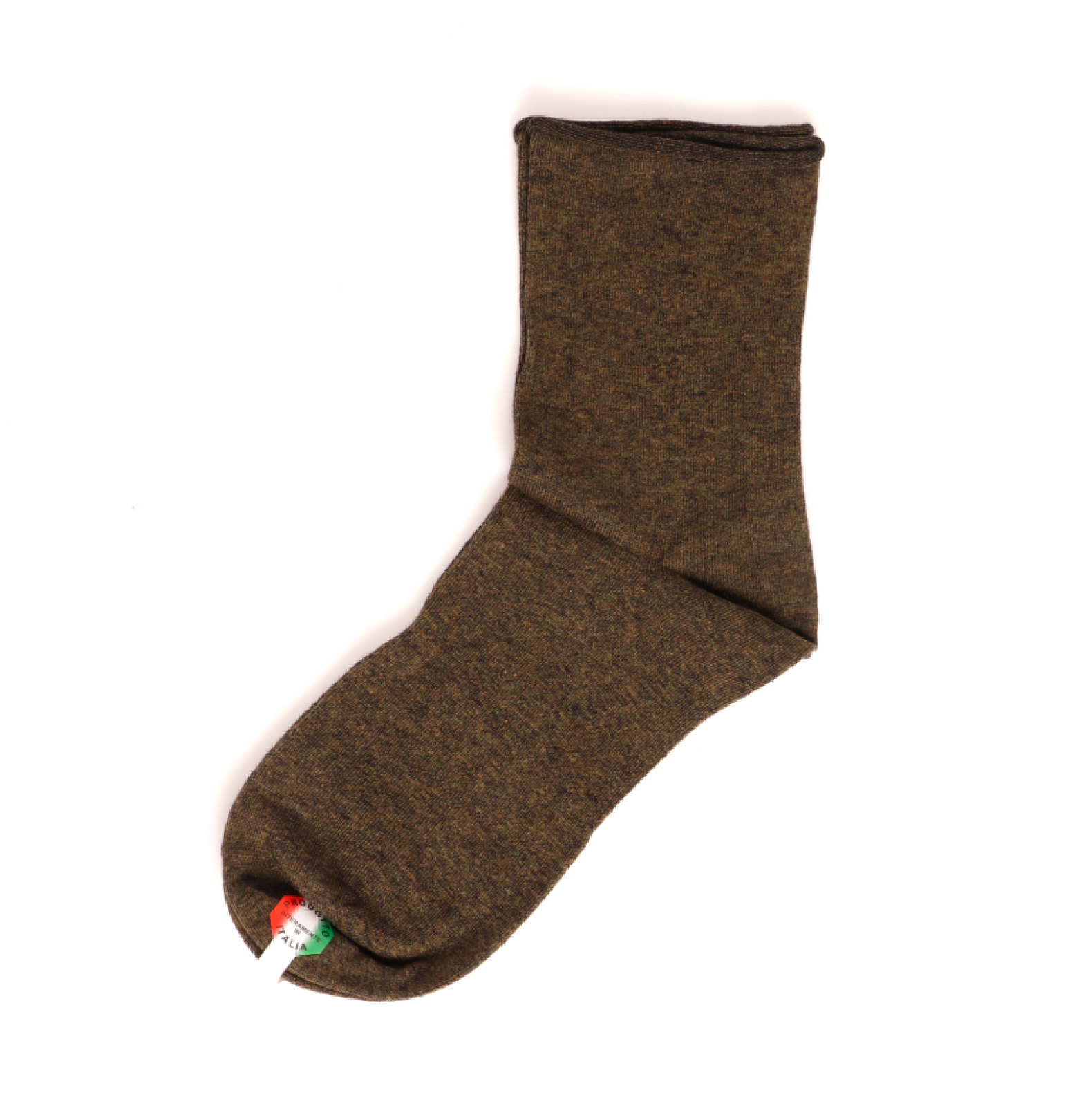 Kort grønmeleret strømpe i bomuld. Strømpen er i en virkelig lækker kvalitet