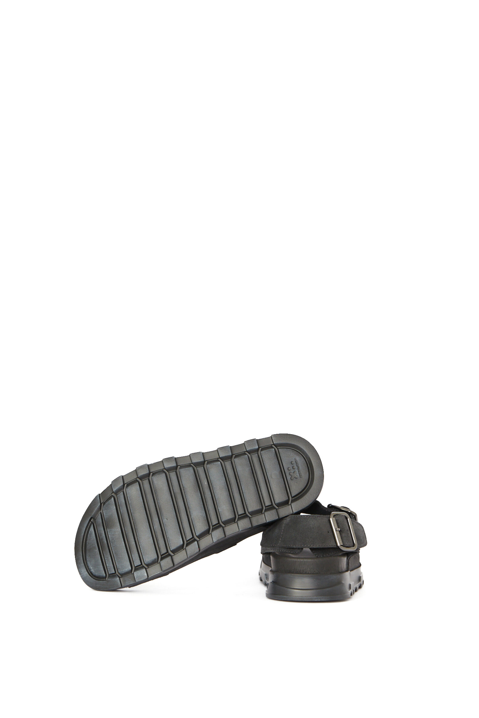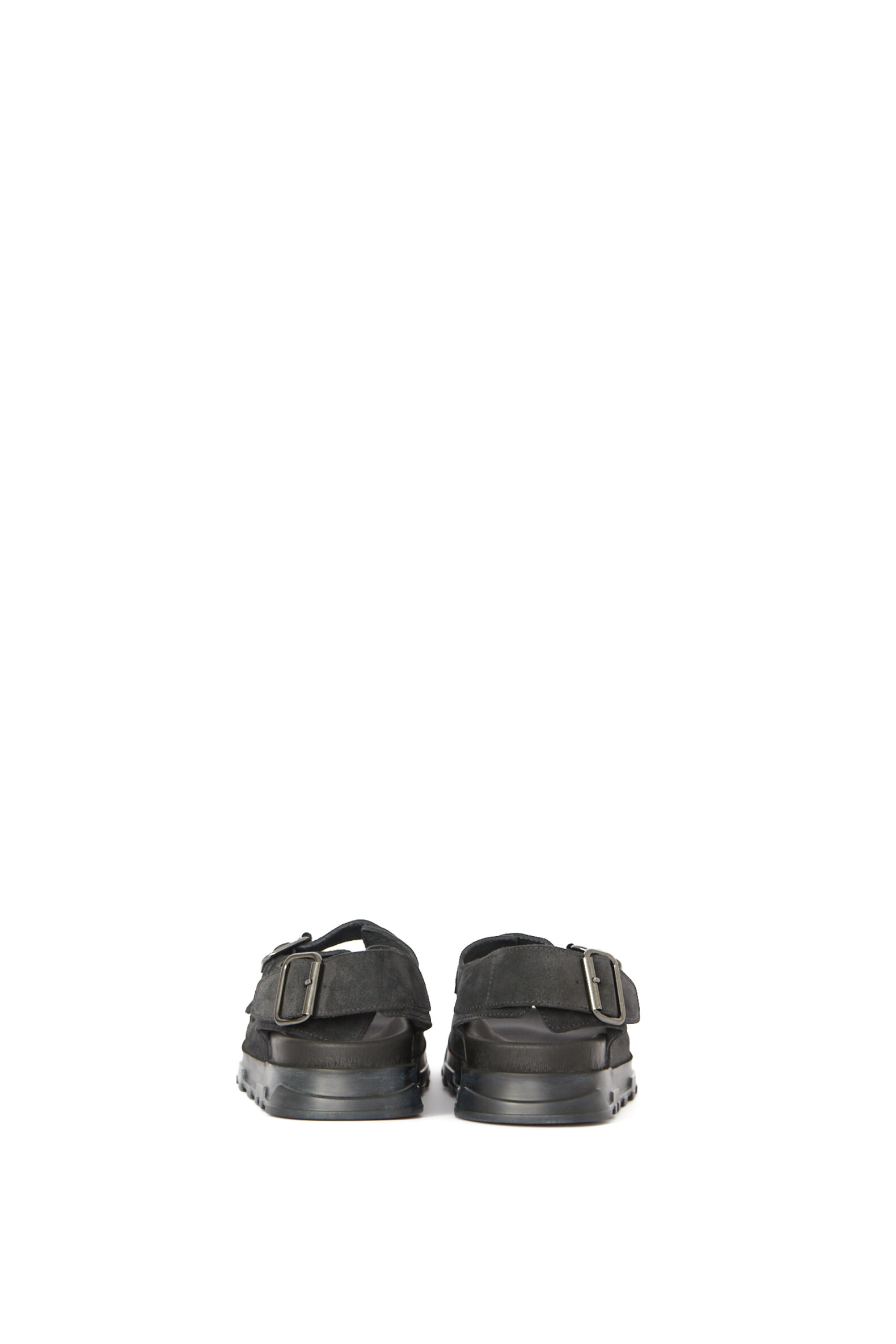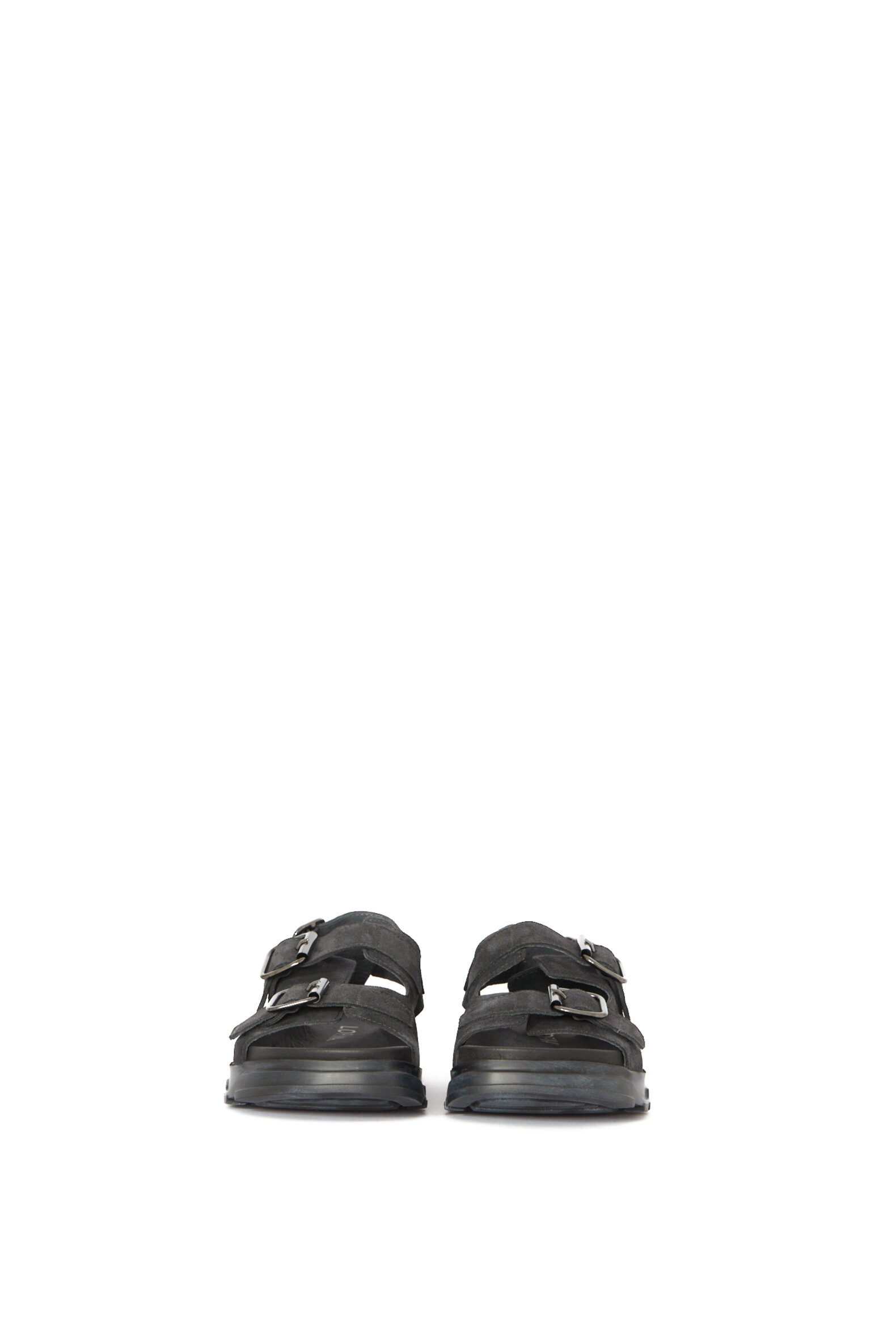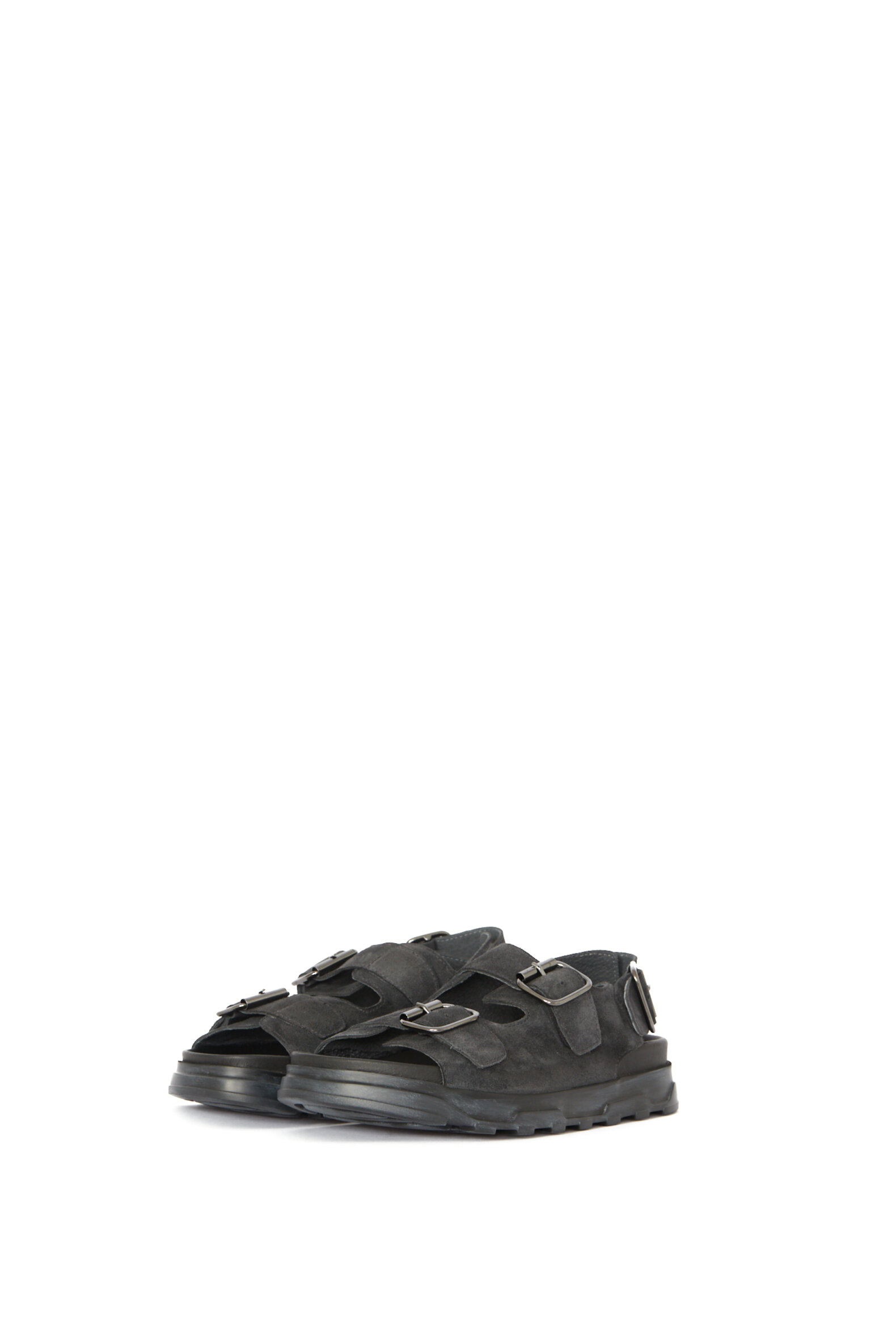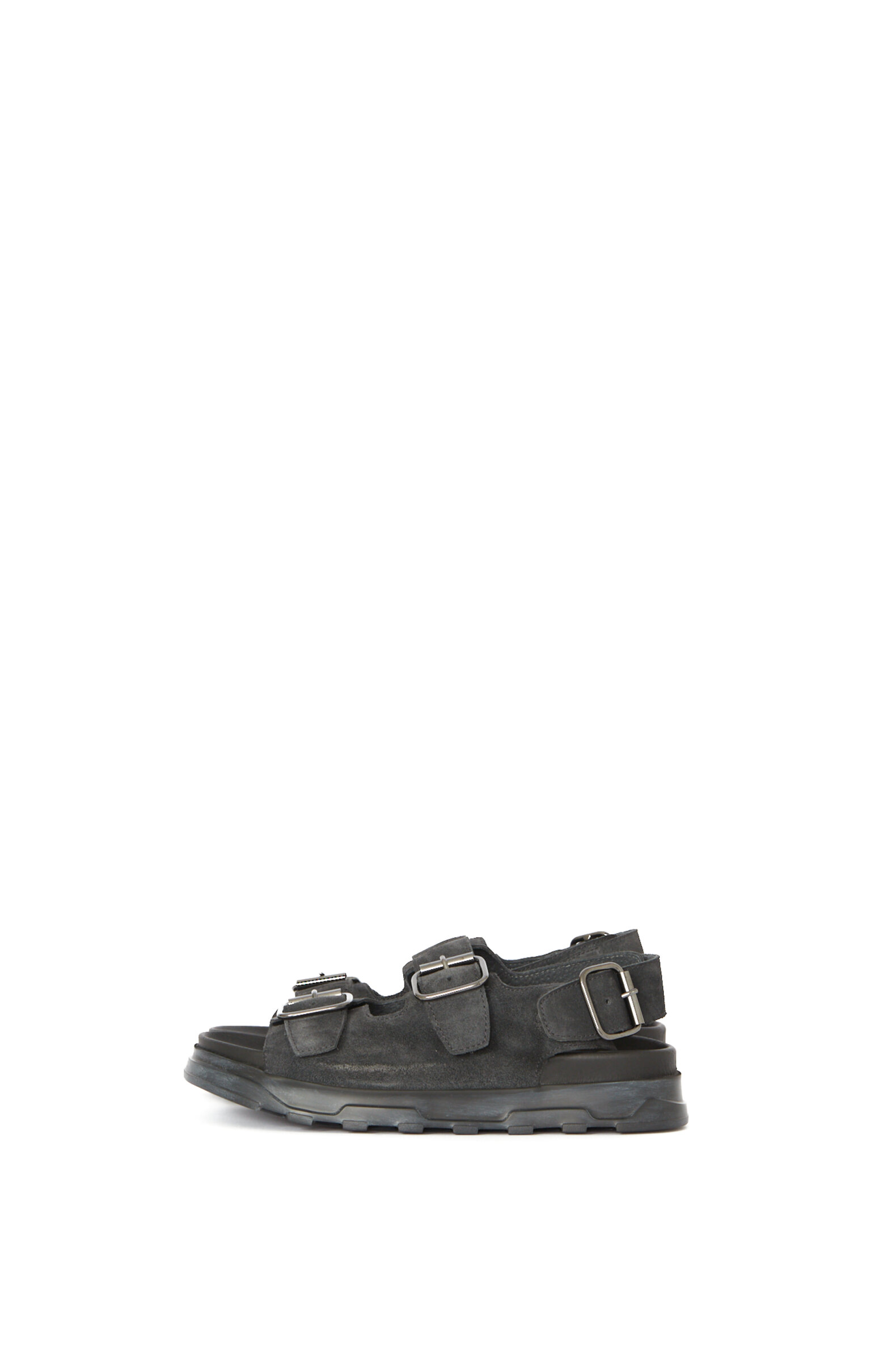 Sandalen er lavet i ruskind af kalveskind foret med svineskind. Sålen er lavet i blandingsmaterialer af syntetisk gummi.