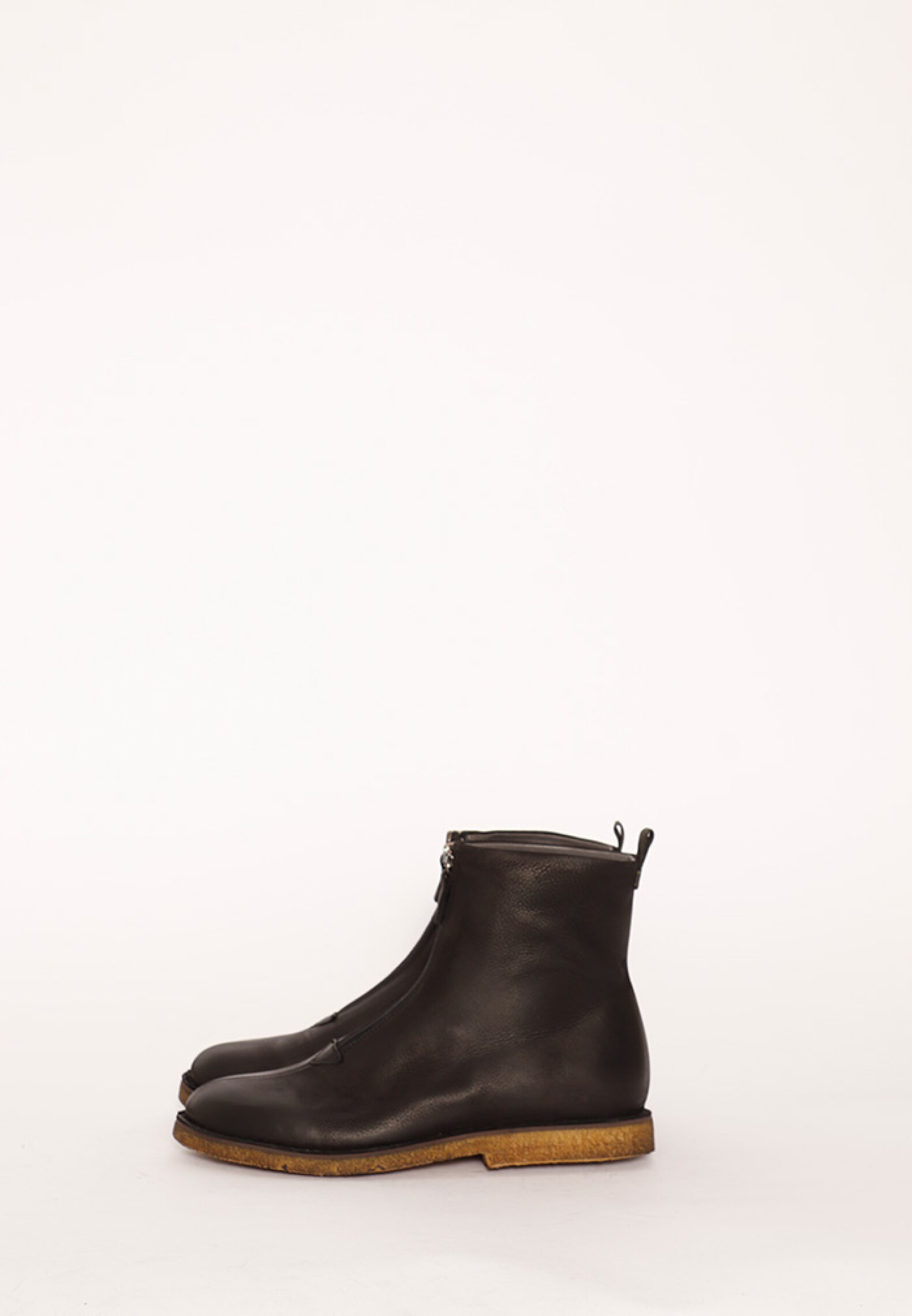 This Lofina shoe has a elegant expression and can be used for both jeans and a dress. This model is made with a raw rubber sole and zipper. This model is very usable and comfortable. This model is made in a very usable black color.