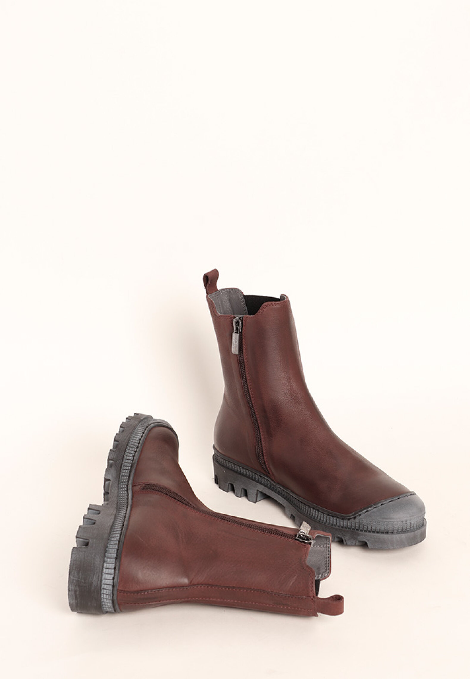 Lofina boot with strong a rubber sole and elastics. The sole makes the boot strong and therefore it is perfect for fall and winter. The boot is made in a nice dark bordeaux.