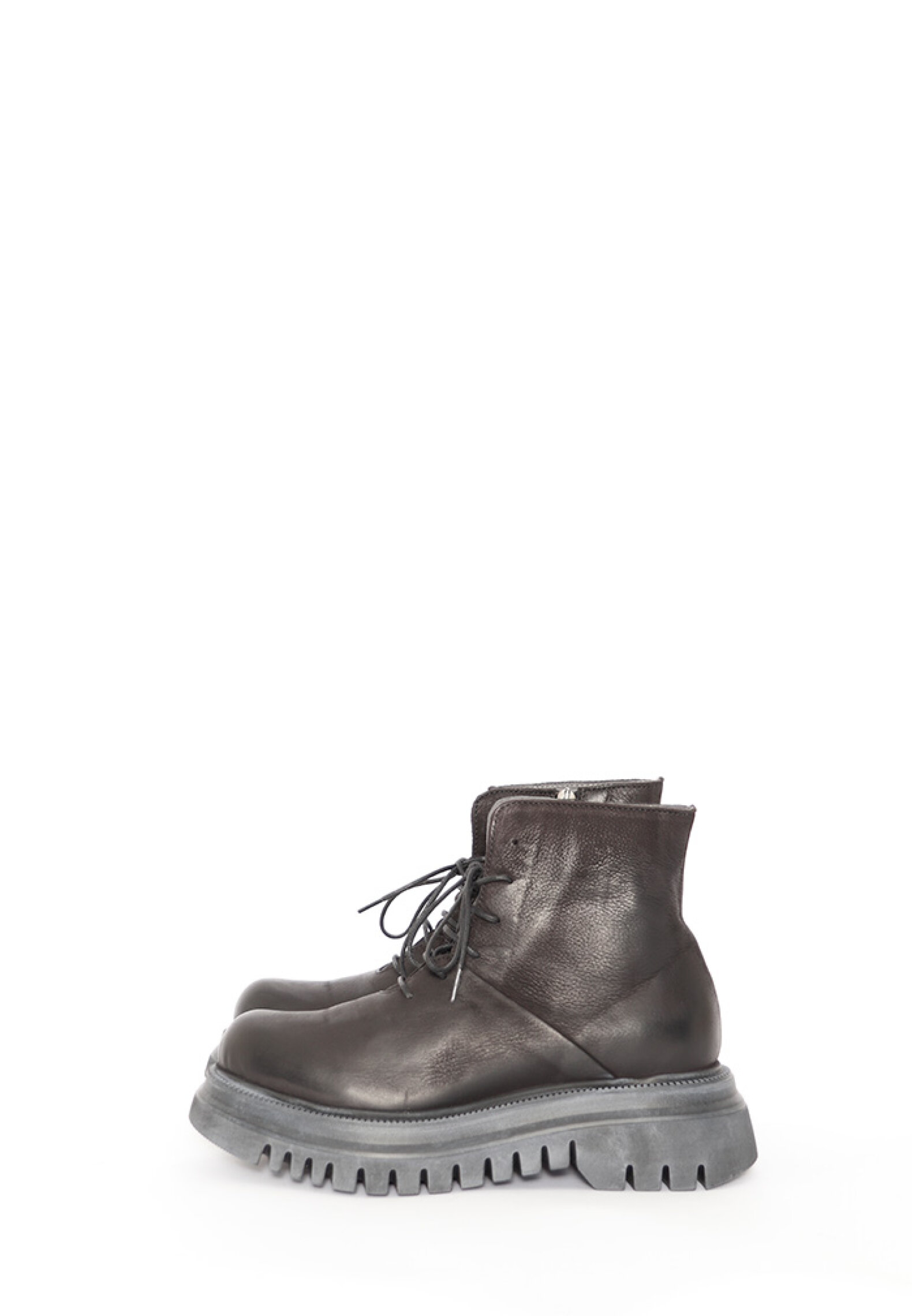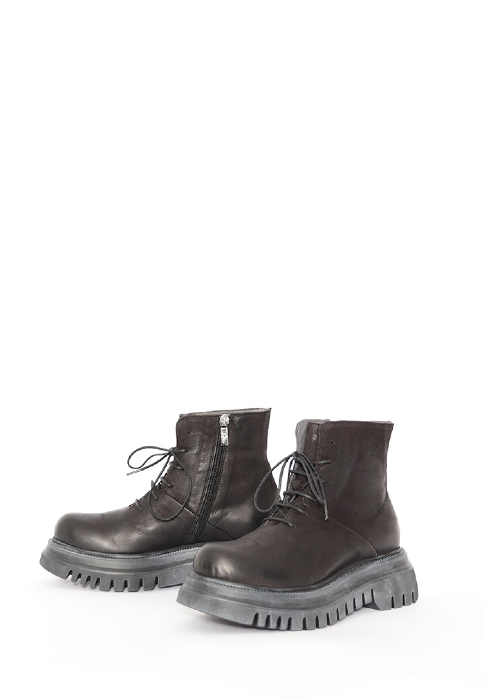 Lofina boot with a chunky micro sole. The boot has laces and a zipper closure, which makes it easy to wear. The boot is made in black.