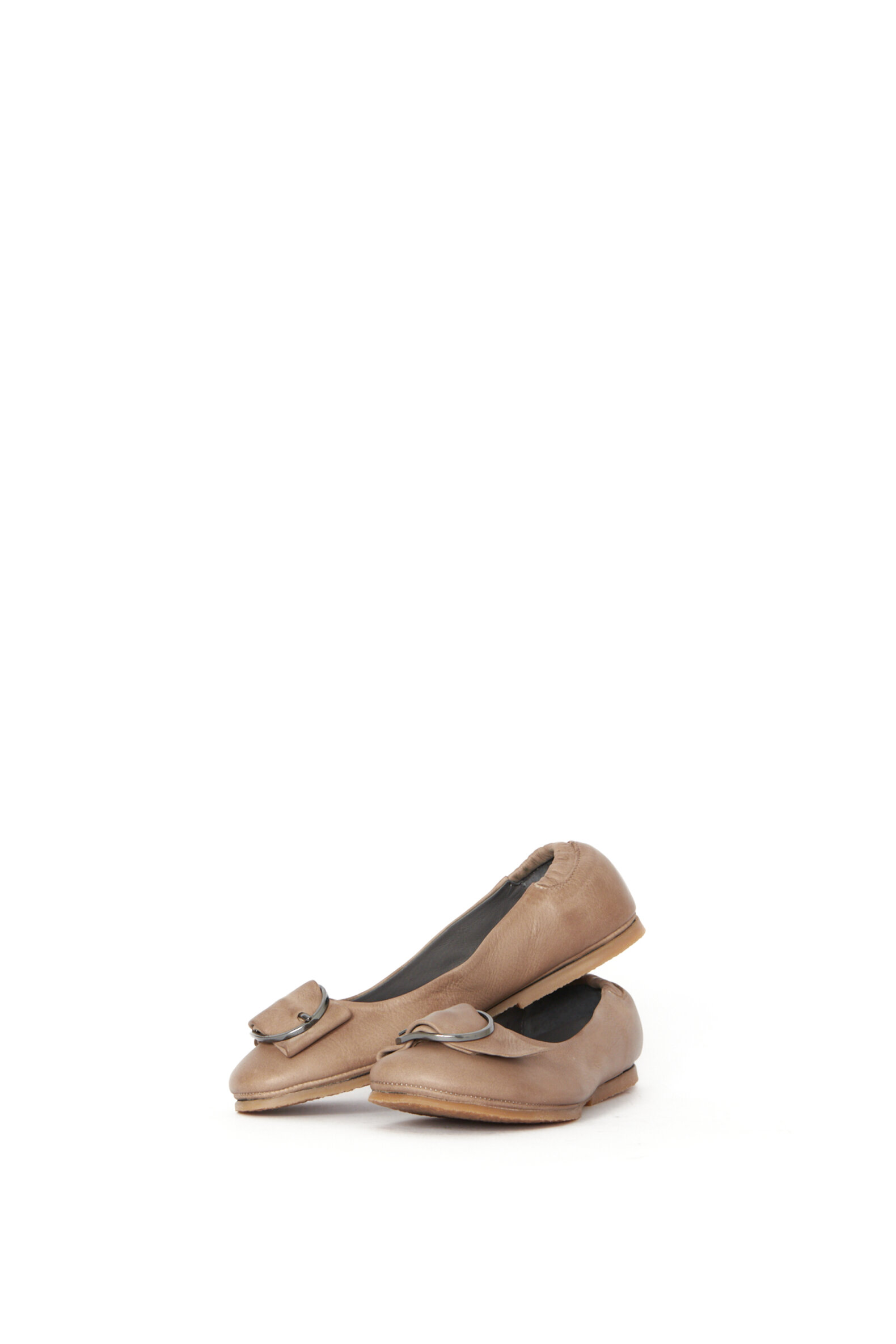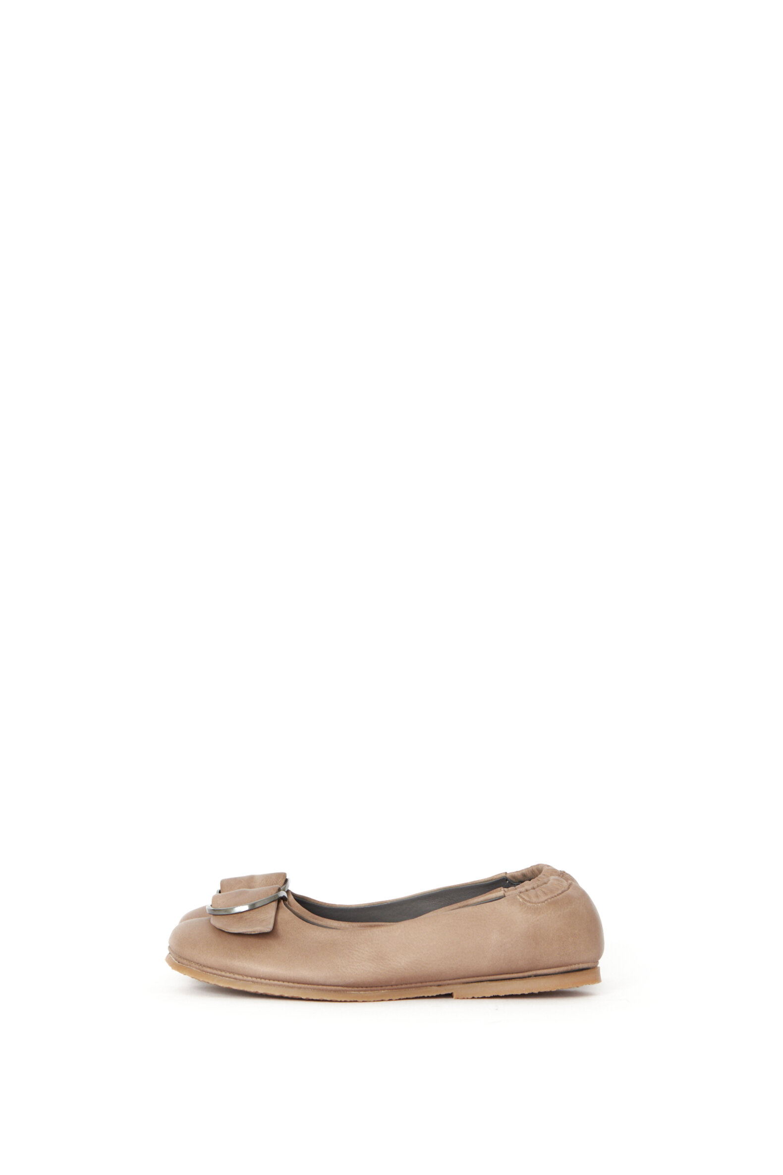Klassisk ballerina med en blød hæl- og tåkap for ekstra god komfort. Modellen er med et oxideret metal pyntespænde på snuden og elastik omkring hælen. Alle Lofina sko er produceret på en lille familieejet fabrik i det centrale Italien af nøje udvalgte og eksklusive lokale materialer. Ballerinaen er lavet i glat kalveskind og foret med svineskind for ekstra åndbarhed og komfort.Materiale